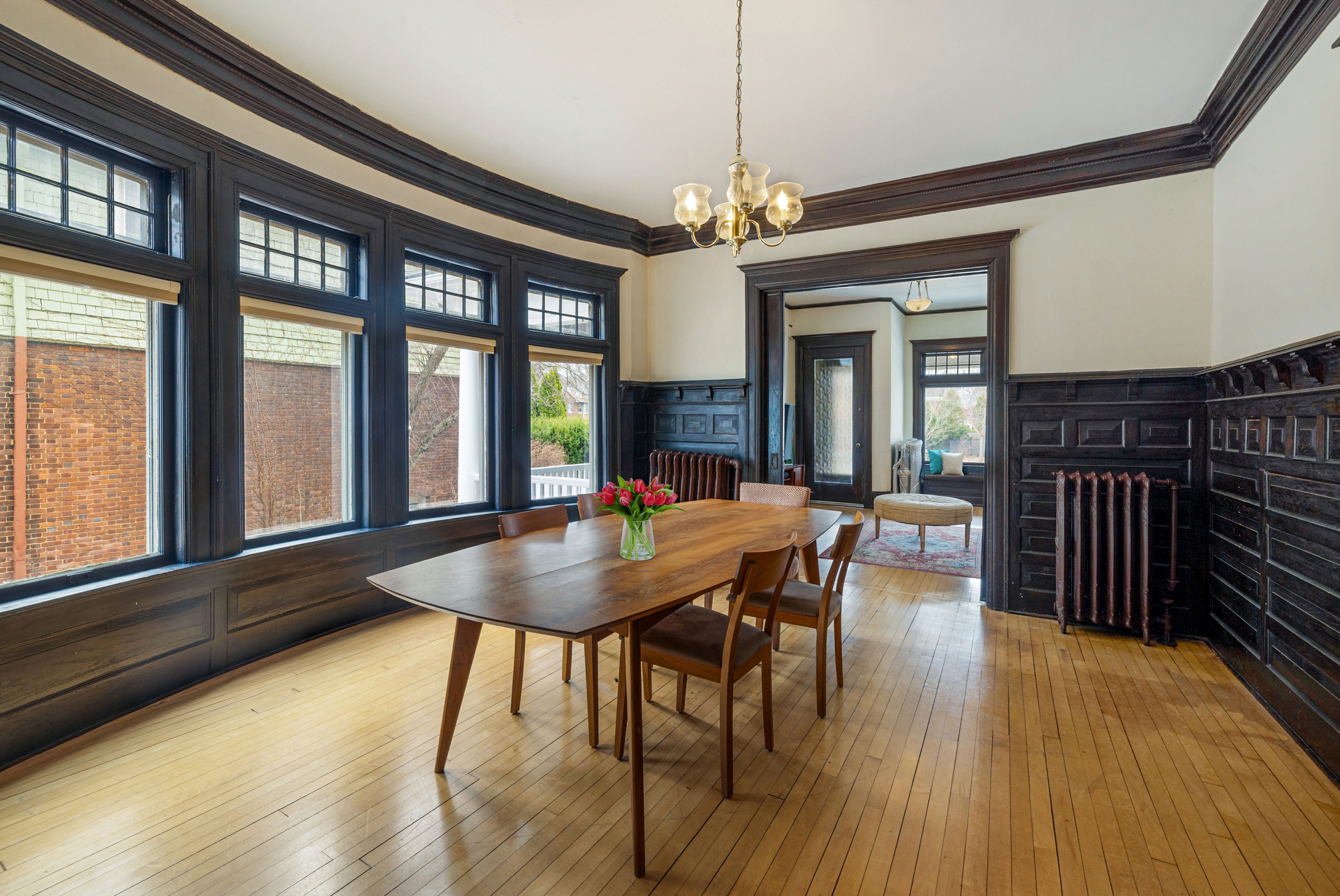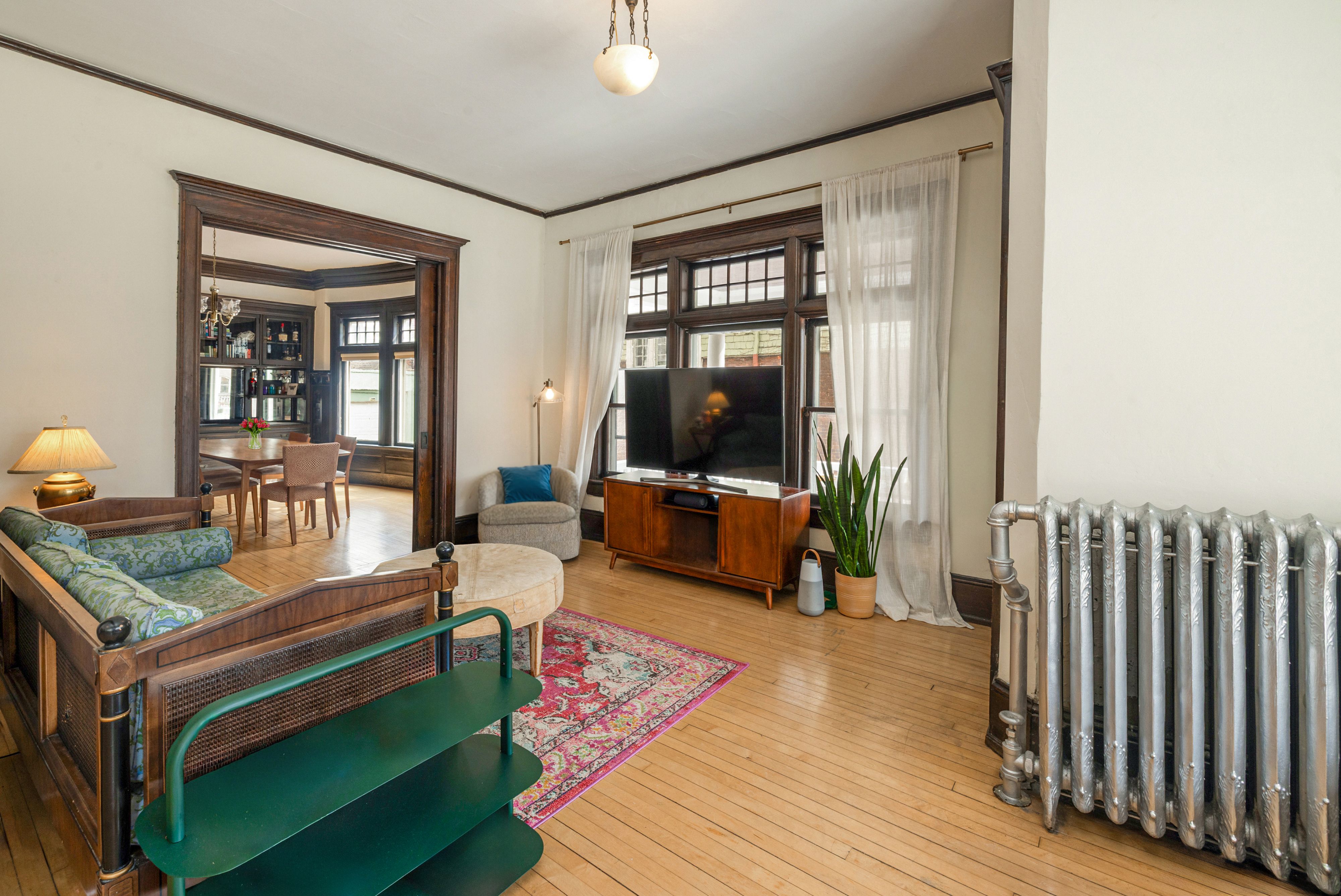 Stunning three-bedroom lower condo offering historic character and urban convenience. Located on the Upper East Side, you're minutes from UWM, the lakefront, and downtown. The inviting front porch, perfect for coffee or cocktails, welcomes you into a spacious interior defined by original dark woodwork and timeless style. The layout features two distinct living areas and dining room, all boasting high ceilings, hardwood floors, and classic built-ins that add effortless charm throughout. The kitchen's walk-in pantry offers ample storage, while the three generously sized bedrooms provide space for everyone. Complete with a rare one-car garage plus driveway for additional parking, this home is a premier find for anyone seeking style and space in a desirable location.