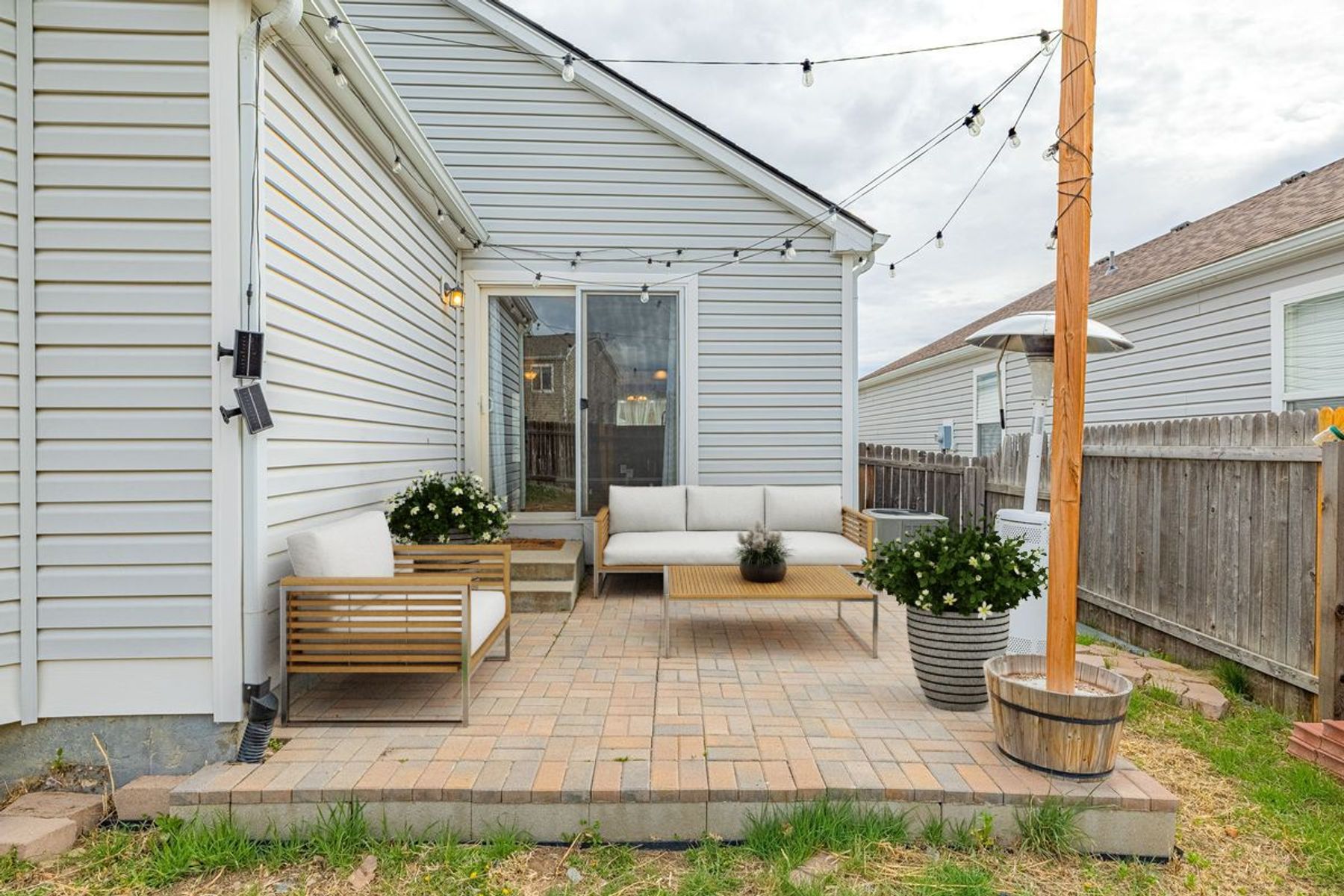 Amazing main level living opportunity in super desirable Ridgeview at Stetson Hills. Complete one level living with all square footage on the main level with no basement. Three bedrooms, two full bathrooms and an attached 2 car garage. Expansive great room with amazing natural light from the many large windows, vaulted ceilings, wood floors, formal dining space and a walk-out to the back paver patio. Eat-in kitchen with stainless appliances, abundance of cabinetry w/ additional upper cabinets for extra storage and a large eat-in space. Spacious primary suite with a bay window, large walk-in closet, full bath with double vanity featuring a new natural wood counter and faucets. Low maintenance exterior with stone and vinyl siding and a xeriscape front yard. Central air conditioning. Fenced backyard with sprinkler system and storage shed. Amazing District 49 Schools. Fantastic location with quick access to great shopping, restaurants, entertainment and Penrose Hospital. Short commute to Peterson Air Force Base and Schriever Air Force Base.