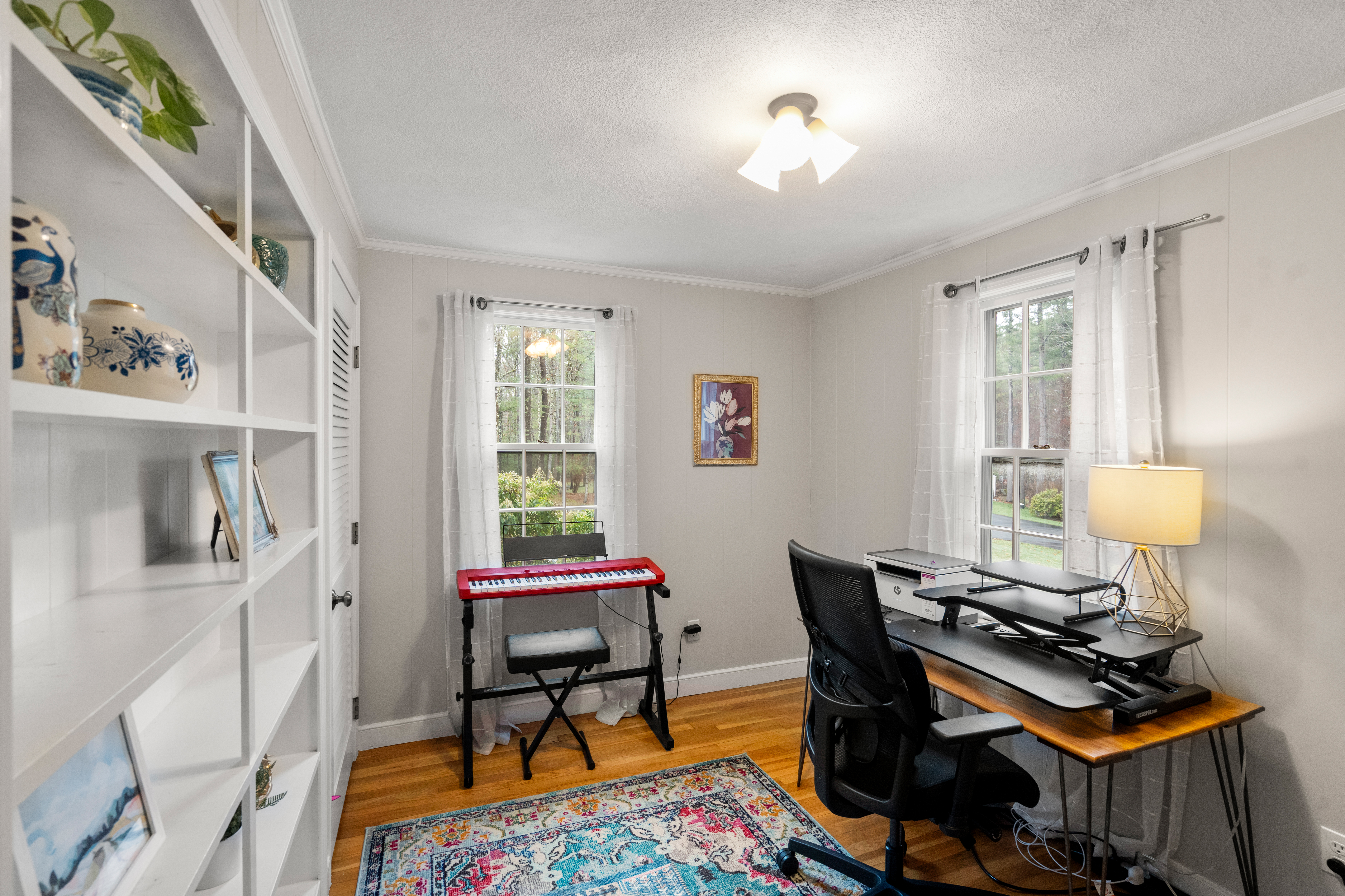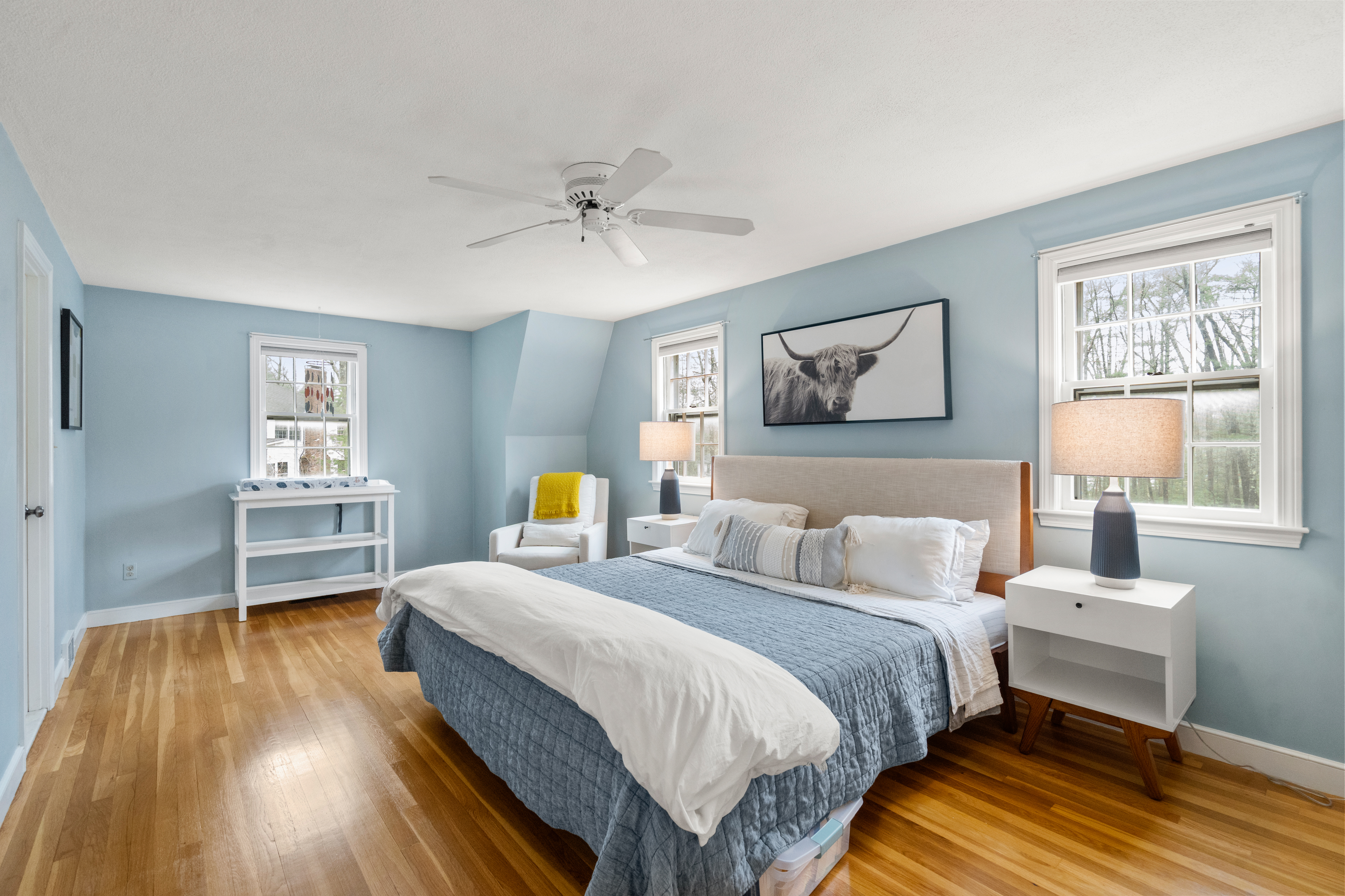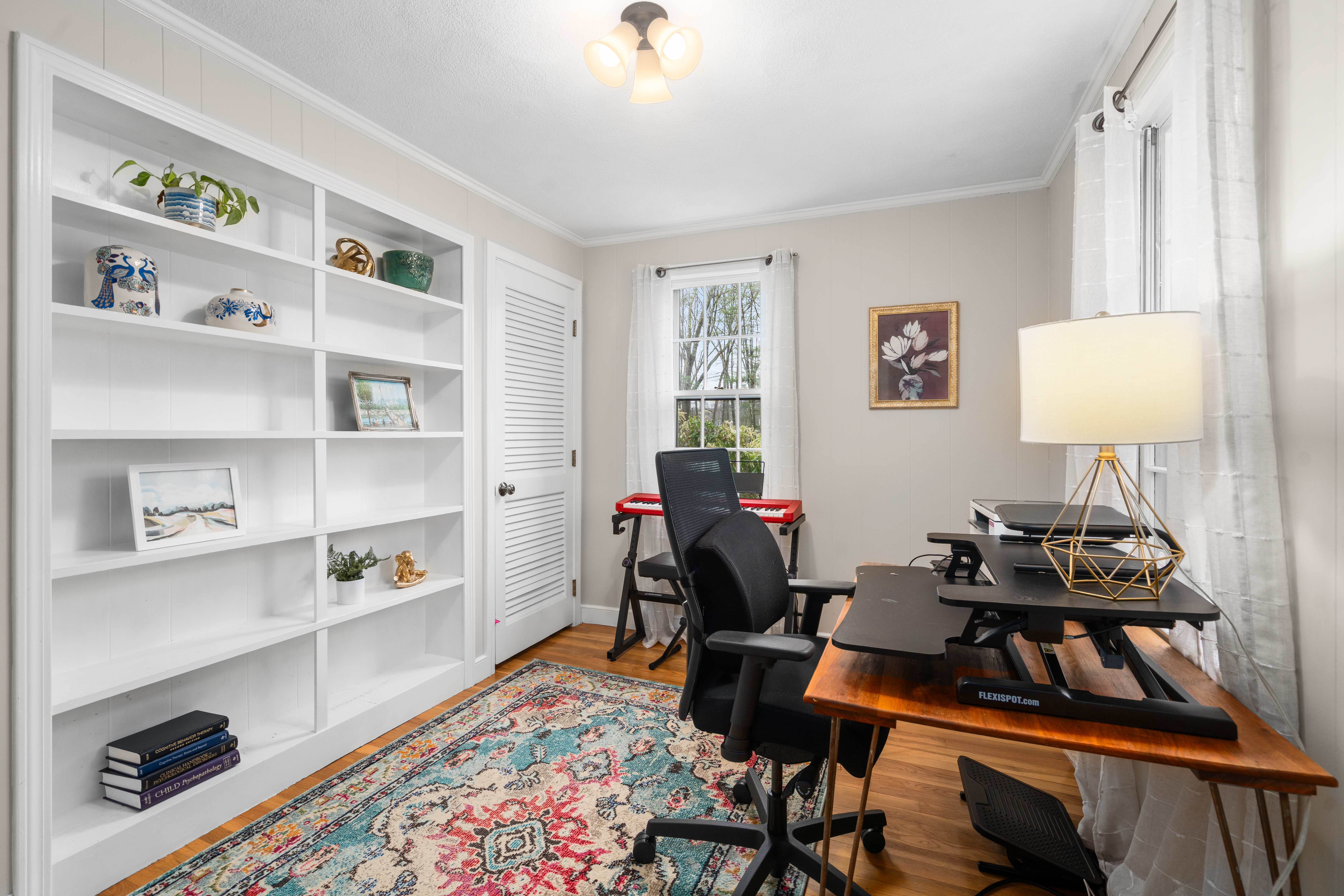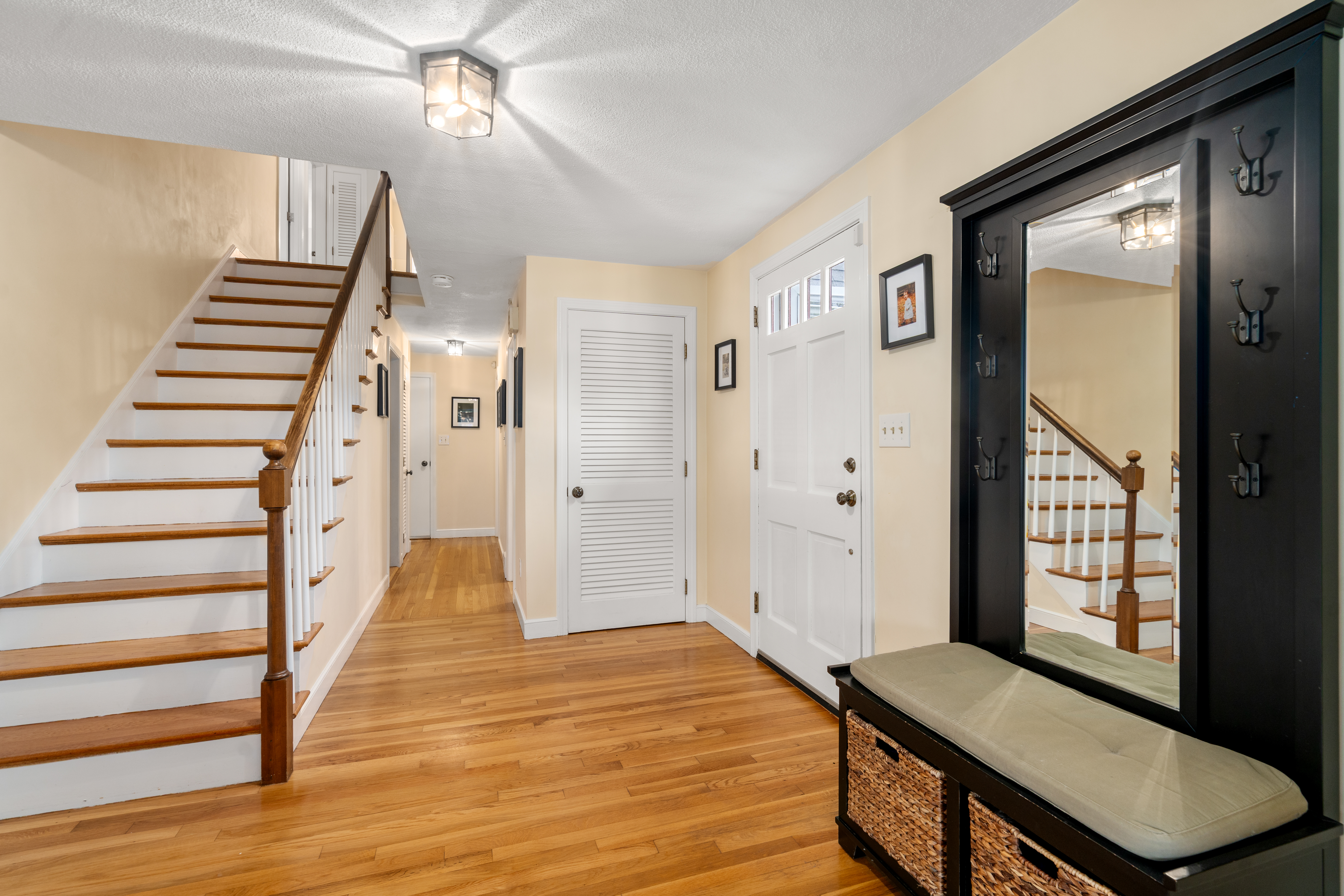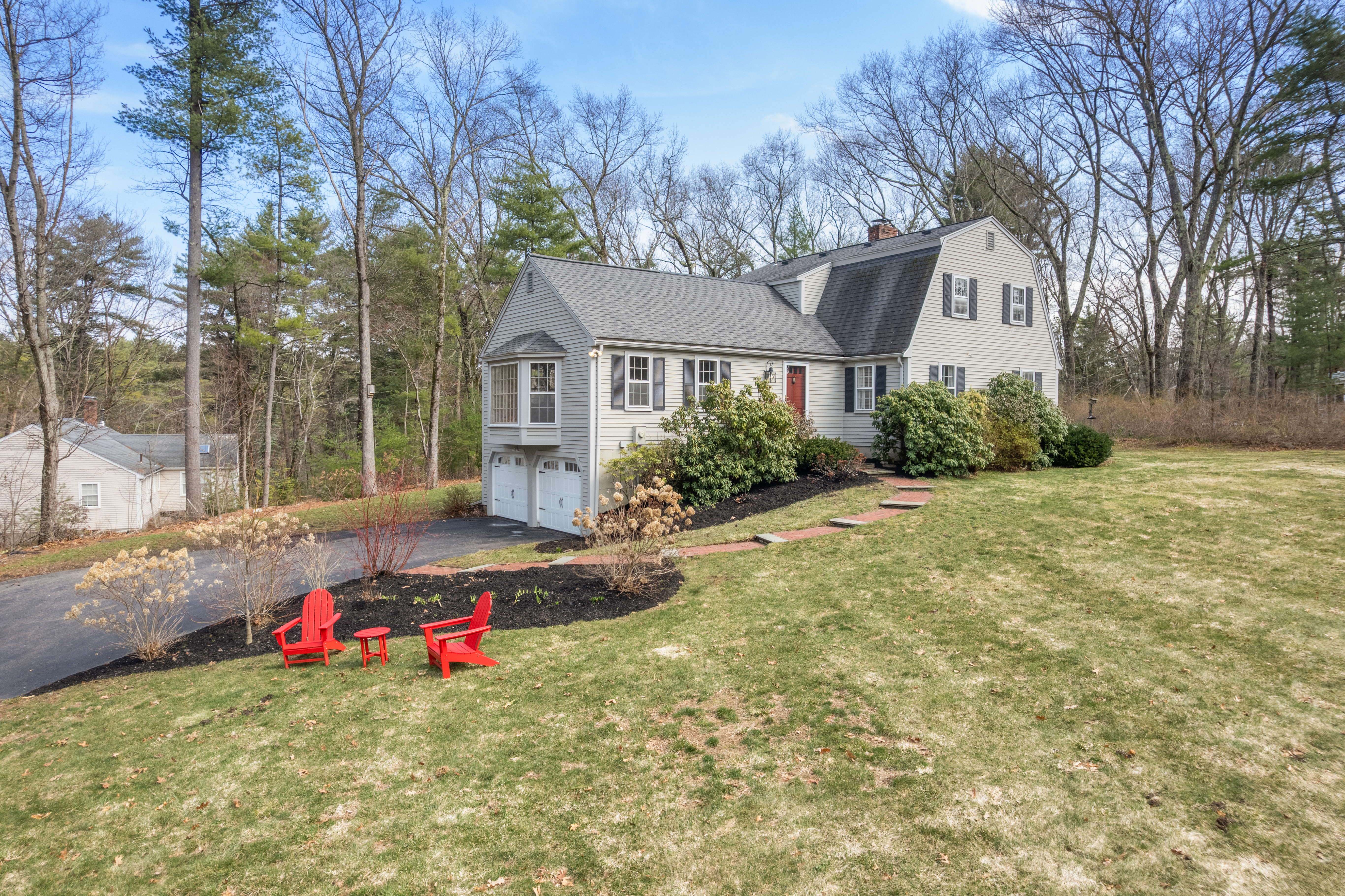 Beautifully sited on a quiet Sudbury cul-de-sac, this four bedroom and two bathroom home is surrounded by stunning, professionally landscaped grounds with vibrant perennial plantings. A sun-filled main level features a spacious living room, elegant formal dining room, and an inviting eat-in kitchen with gas fireplace—perfect for everyday living and entertaining. Also on the first floor are a dedicated home office, first-floor bedroom, and renovated full bath, offering flexible living options. Upstairs, three generously sized bedrooms await, including primary bedroom with direct access to the full bath. Summer evenings are a delight on the screened porch or fire pit area. The unfinished lower level provides excellent expansion potential and incredible workshop space. An oversized two car garage offers ample storage. Updates include 2021 Furnace and Hot Water, 2022 main floor bath, 2016 roof. This prime location is close to the Curtis Middle School, community center and fields, rail trail, and area amenities.