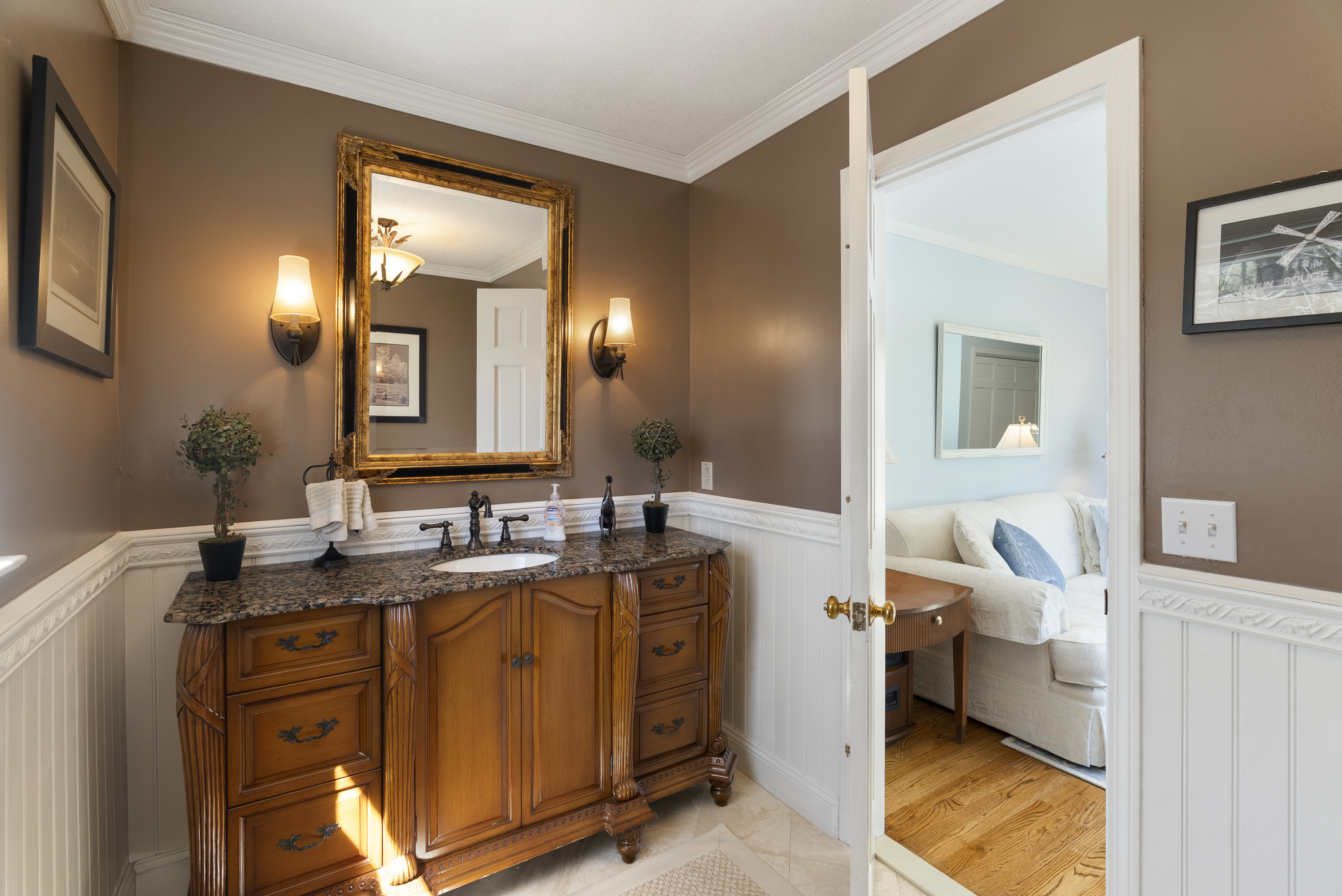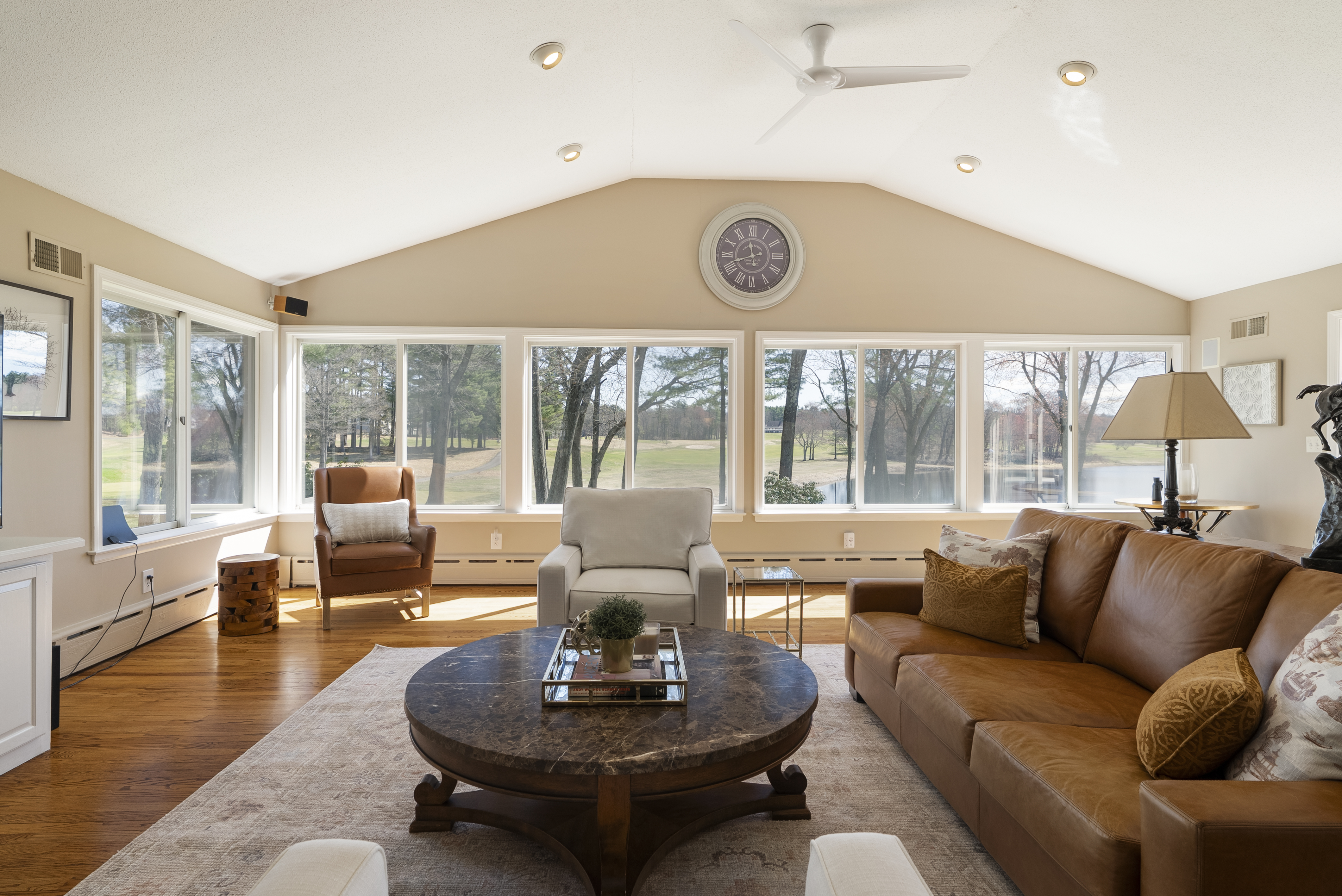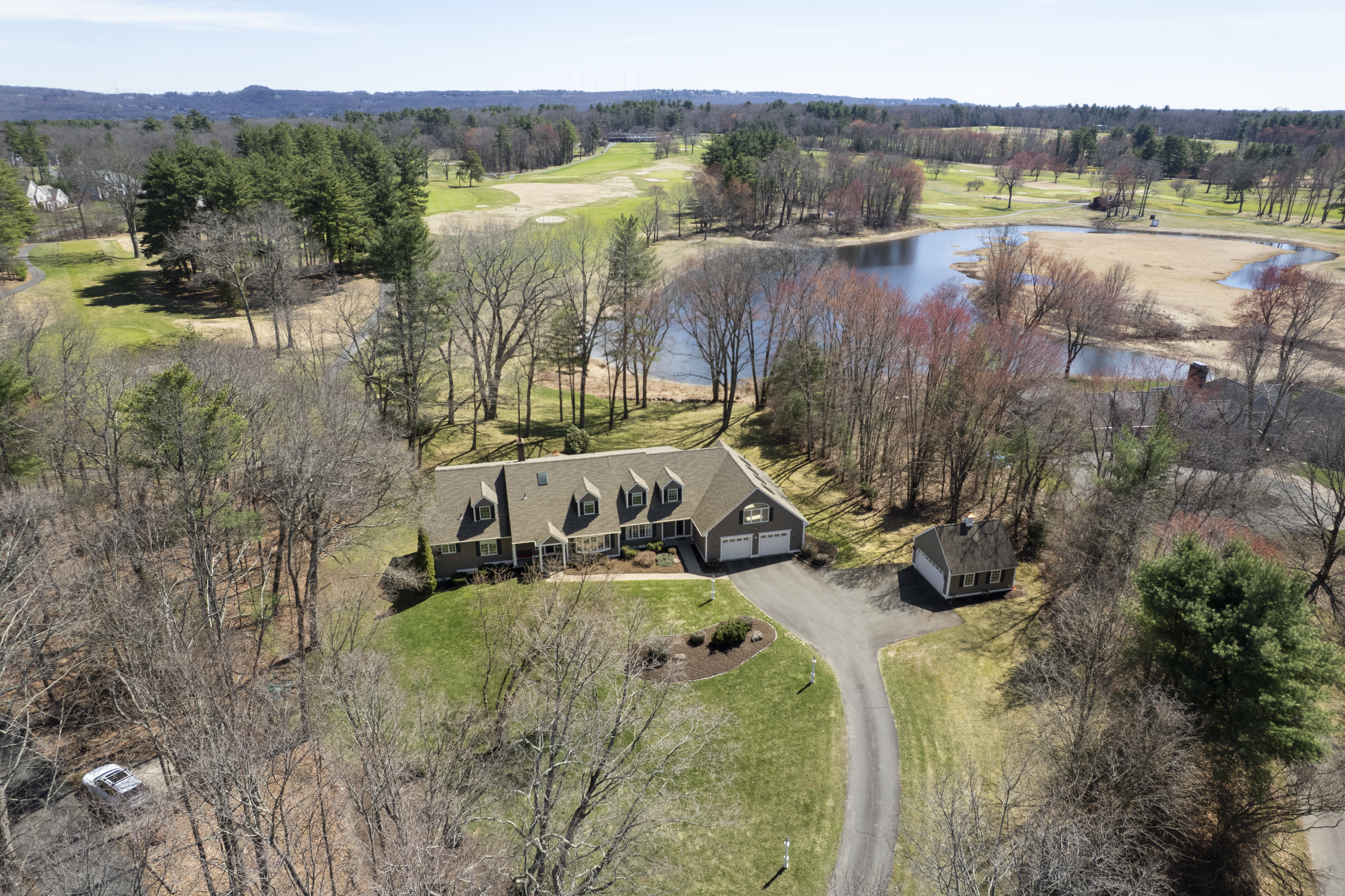 Exceptional golf course location with direct frontage and views of the clubhouse at the Golf Club of Avon. This expansive 5-bedroom, 5 full and 2 half bath Cape offers over 6,000 sq ft of finished living space and a flexible floor plan ideal for today's lifestyle. The updated kitchen opens to a spacious family room with gas fireplace and access to a large deck-perfect for entertaining while enjoying sweeping golf course views. A standout feature is the first-floor primary suite with a beautifully updated, spa-like bath. The main level also includes a formal living room, dining room, and home office with golf course views. Upstairs offers four generously sized bedrooms, three full baths, an office space and an oversized bonus room providing excellent additional living space. The walk-out lower level is partially finished with a full bath and a kitchenette, offering potential for an in-law suite, guest space, playroom, or home office. Additional highlights include a 2-car attached garage and a separate outbuilding with two additional garage bays. Built in 1985 by a local builder, this home combines space, views, and convenience-just minutes to Avon's top-rated schools, shopping, dining, and more. Roof replaced in 2020