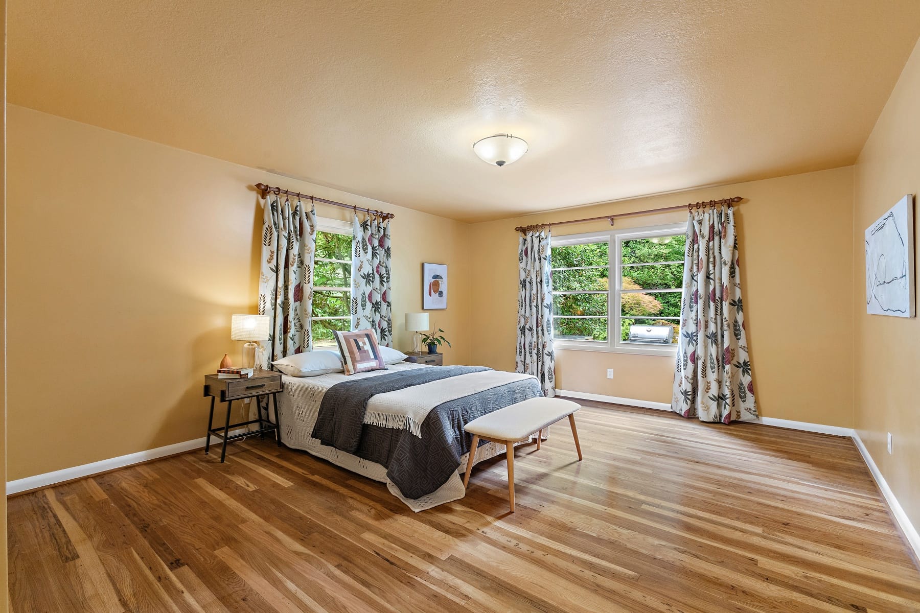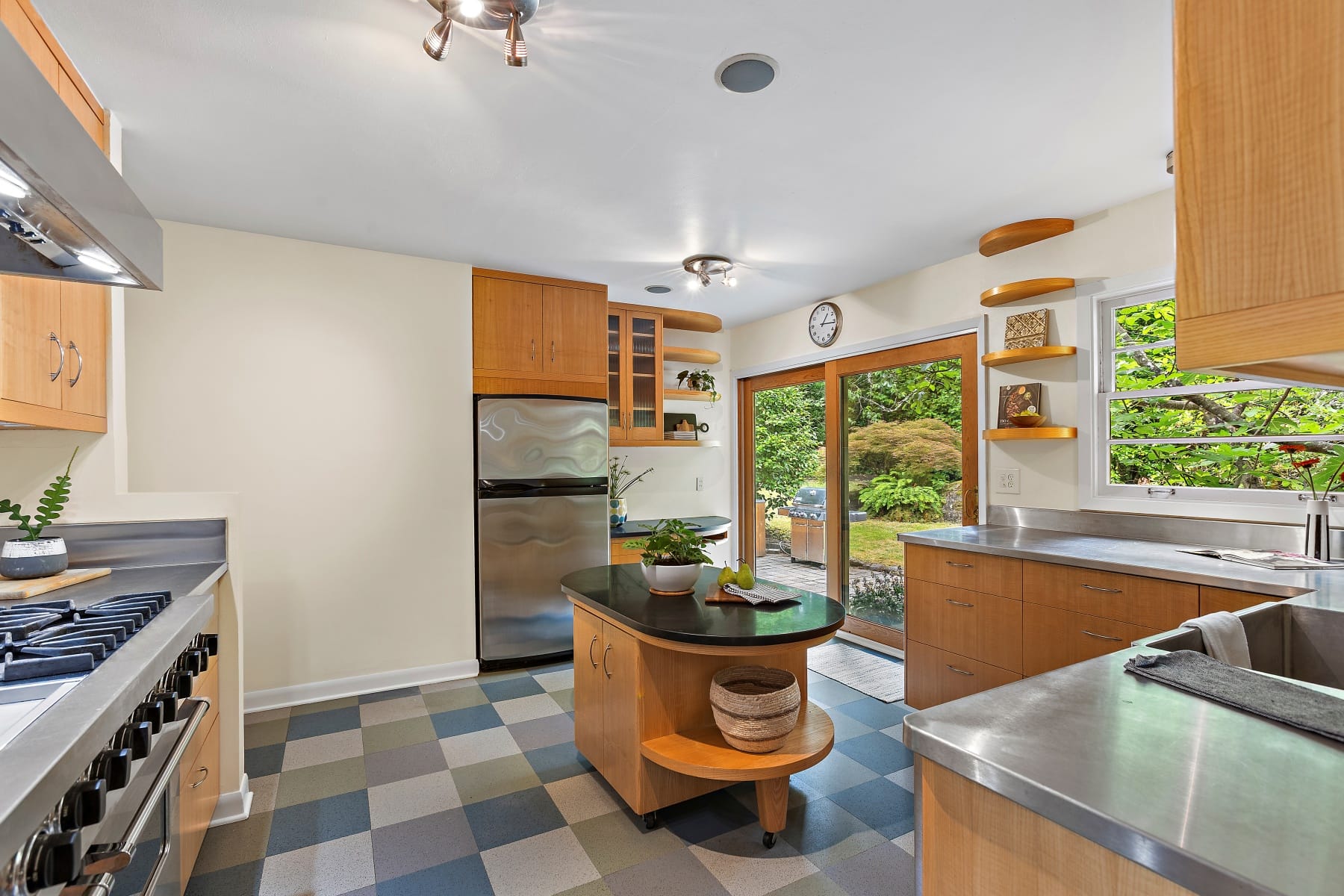 Mid-Century Charm Meets Modern Living in the Heart of Riverdale.Welcome to your private retreat in one of Portland's most coveted neighborhoods'just moments from Lewis & Clark College and nestled within the prestigious Riverdale School District. This enchanting mid-century home blends timeless style with today's comforts, offering the perfect balance of serenity and convenience.Step inside to a thoughtfully designed interior where rich hardwood floors and two cozy fireplaces set a warm, inviting tone. The gourmet kitchen is a chef's dream, featuring quarter-sawn ash cabinetry, premium appliances, and generous prep space ideal for everything from quiet dinners to lively gatherings.Entertainment is effortless with a dedicated media/game room complete with a wet bar'perfect for movie marathons, game nights, or simply unwinding in style. Need space to focus or recharge? Two flexible bonus rooms offer the ideal setup for a home office or creative studio.The expansive primary suite is a true sanctuary, featuring dual walk-in closets and ample storage, while two additional main-level bedrooms facilitate easy, mostly single-level living.Outdoors, a lush garden oasis awaits. Spend your mornings tending to the greenhouse or harvesting from an impressive variety of fruit trees and berry bushes'including figs, plums, pears, mulberries, and more. In the evening, gather around the mosaic fire pit table, surrounded by the sounds of birdsong and rustling leaves, under the stars.This is more than a home'it's a way of life. Come experience the rare mix of privacy, charm, and convenience that makes this Riverdale gem truly one of a kind.