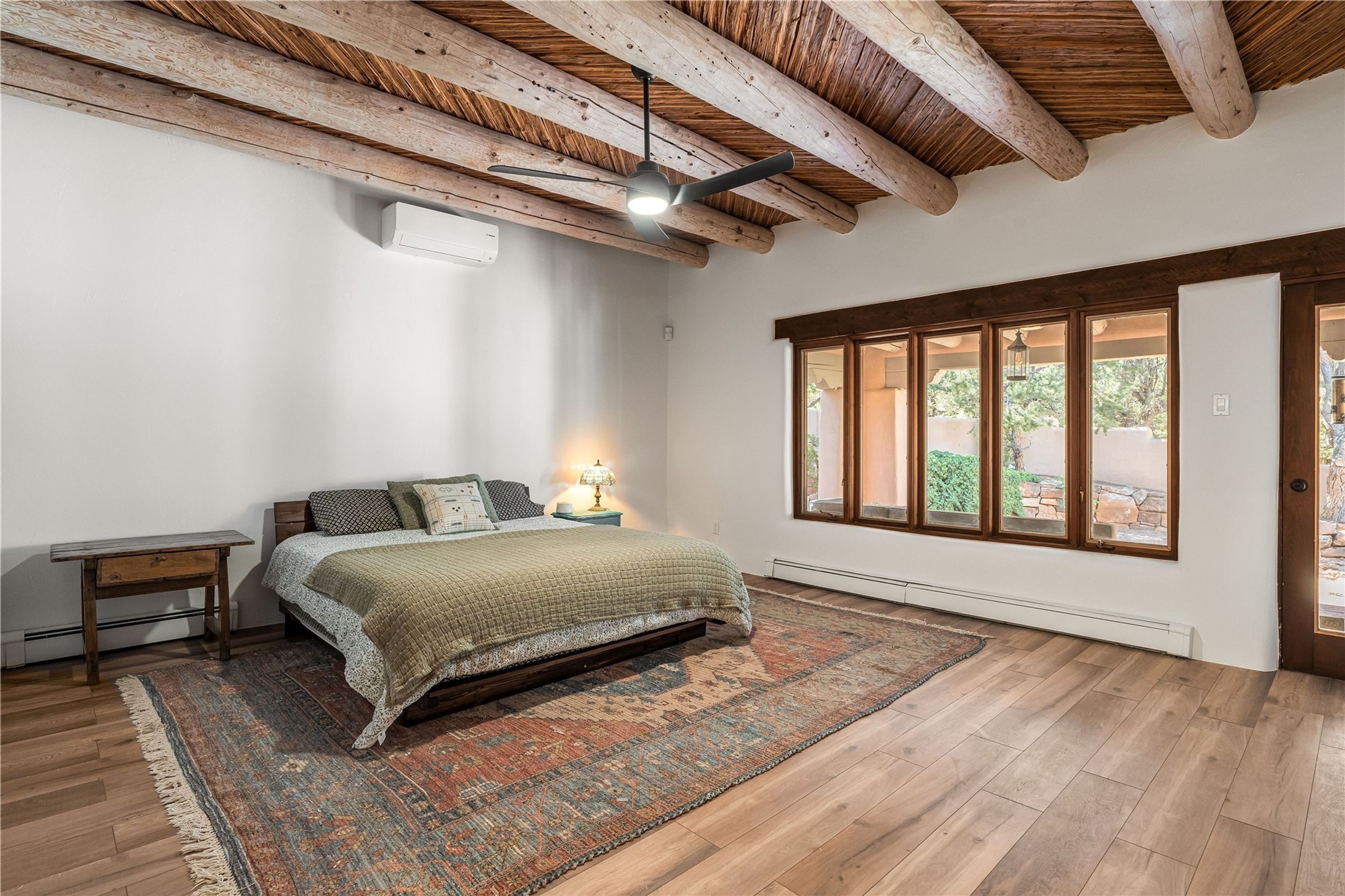 Updated Bishops Lodge Road 3-bedroom 2.5-bath home situated off the road on 1.18 wooded acres with mountain views and only 10 minutes from the vibrant Santa Fe Plaza. Recent improvements include new kitchen cabinets and appliances, new master and secondary bathrooms, new floors throughout the house, new mini splits, new front fence and driveway gates and more. Home includes 2 living areas, one with fireplace. Delightful contemporary sage kitchen is appointed with large center island, elegant nicho, light wood beams, farmhouse sink and new, high-end stainless-steel appliances. Separation of primary bedroom from two guest bedrooms for maximum privacy. In addition, there is a versatile, 1,038 sq. ft. lower-level floor which provides flex space for a recreational room plus home office and studio. 2-car attached garage. Enjoy living in a coveted Santa Fe location that is private yet at the same time close to all the cultural, culinary and recreational amenities of the area.