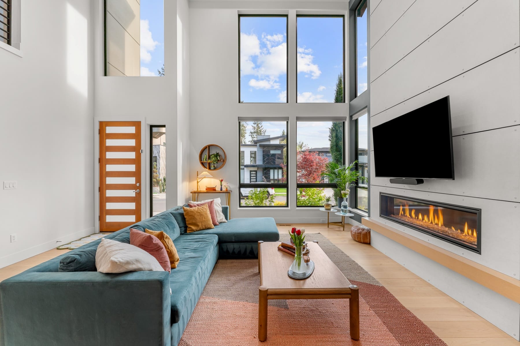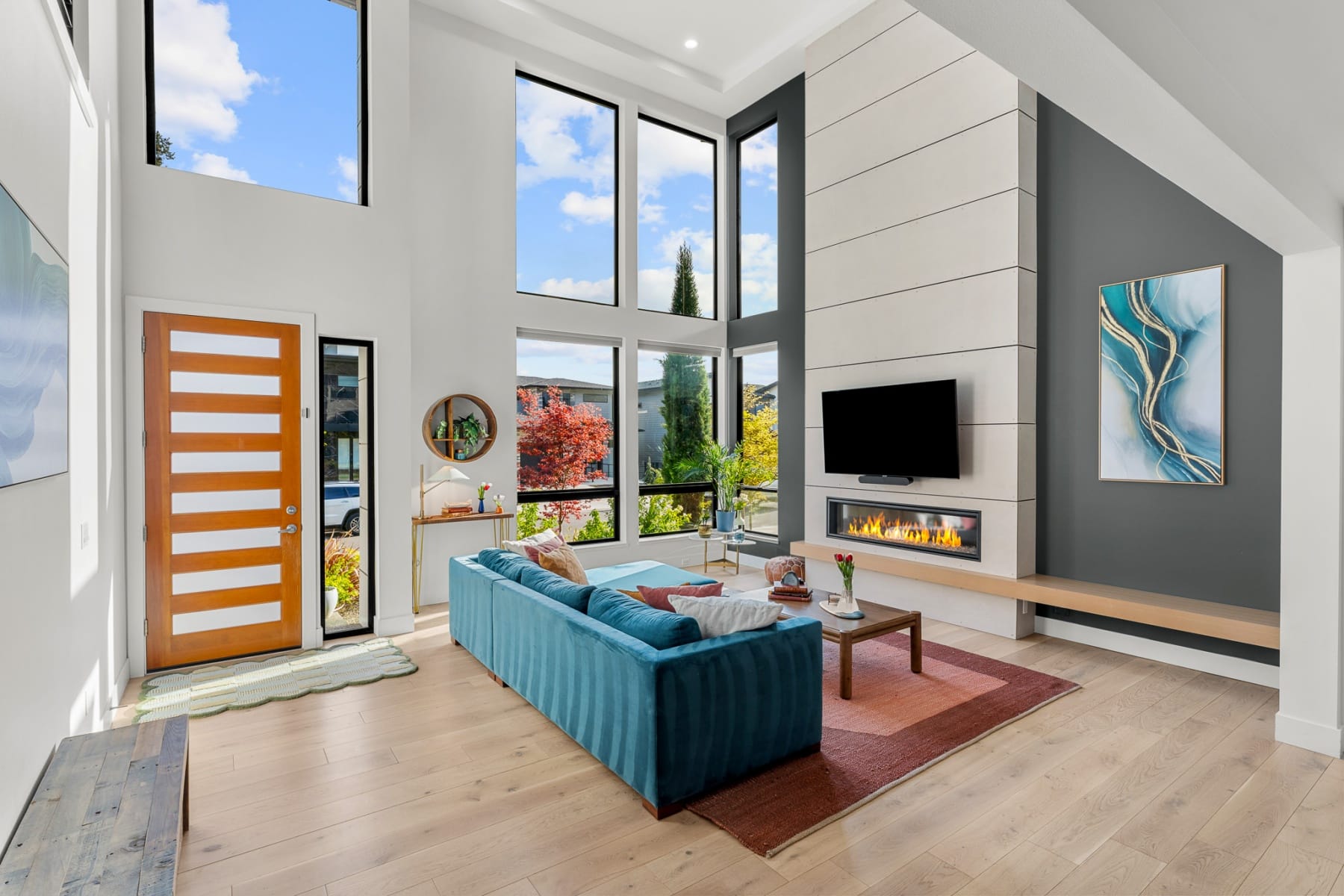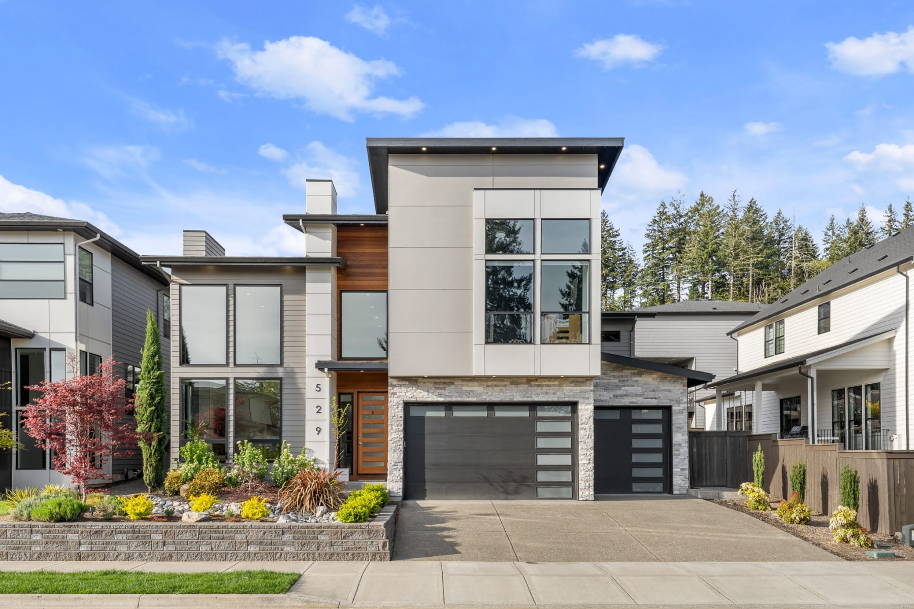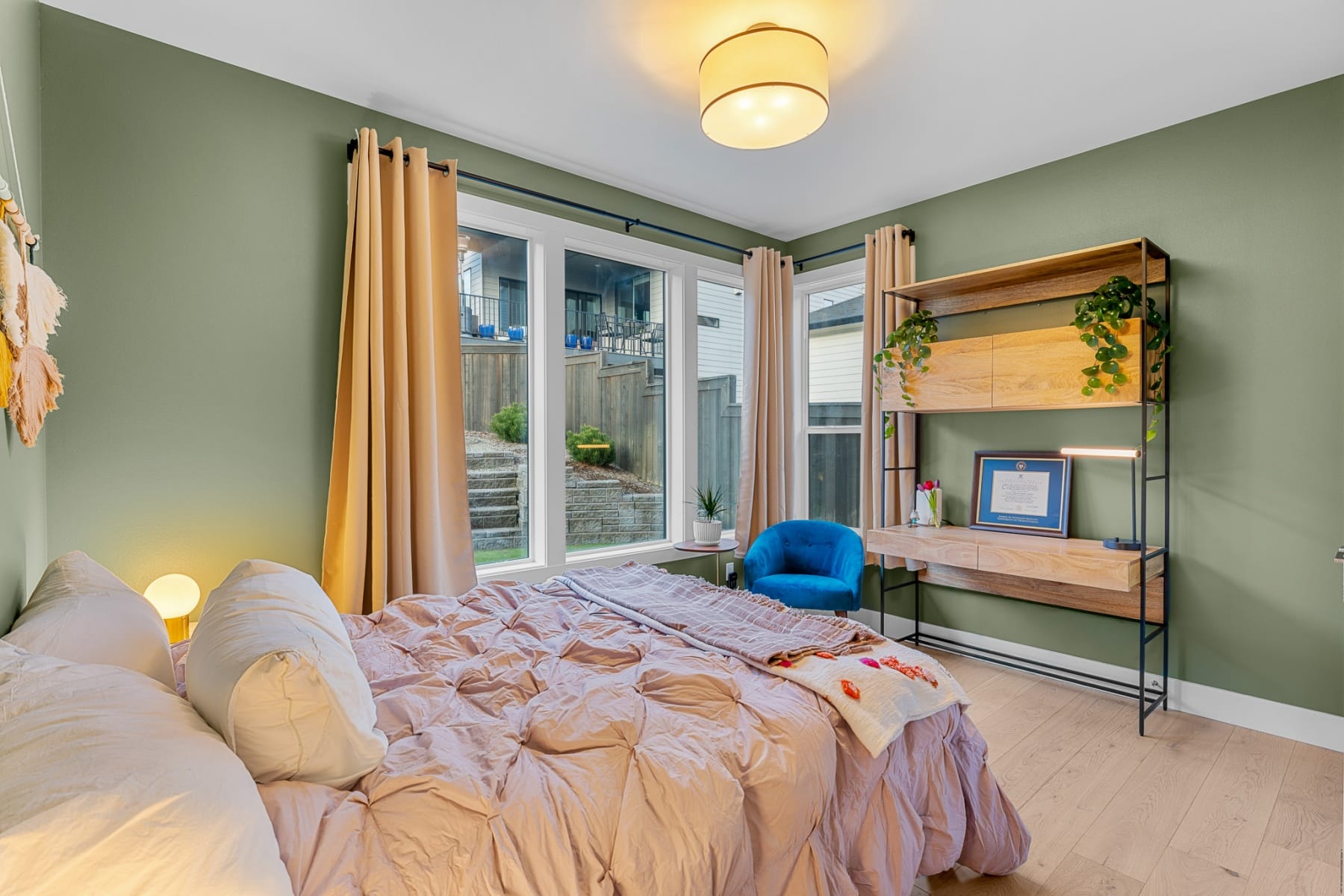 Contemporary design meets elevated everyday living in this custom-built Camas home. Soaring two-story ceilings in the great room flood the space with natural light, complemented by light-toned engineered hardwood floors that give the main level a bright, airy feel throughout. The chef's kitchen is a showpiece ' quartz waterfall-edge island, clean lines, and a layout designed for both entertaining and efficiency. A main-floor bedroom and full bath offer ideal flex space for guests, a home office, or multi-generational living.Upstairs, plush wall-to-wall carpet softens the transition to the oversized primary suite with its own full bath, two additional bedrooms, a second full bath, and a convenient laundry room ' all with the high ceilings that define the home's custom feel.Step outside to a thoughtfully designed terraced backyard with low-maintenance artificial turf, a covered patio, and room to breathe. The extra-deep three-car garage offers flex space for vehicles, gear, or a workshop setup. Home is equipped with a permanent exterior holiday lighting system ' effortless curb appeal year-round, festive at the flip of a switch. Location checks every box: walk to Lacamas Creek Trail, minutes from Downtown Camas dining and boutiques, quick access to Hwy 14 and PDX. The lifestyle is built in.4 BD | 3 BA | Main-Floor Bedroom | 3-Car Garage | Custom Contemporary | Camas Schools