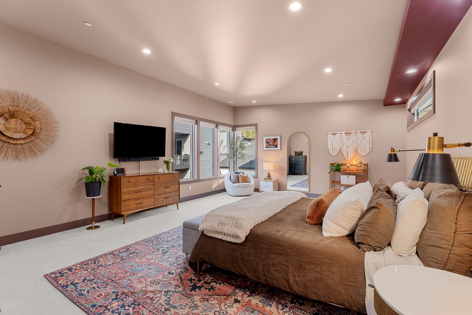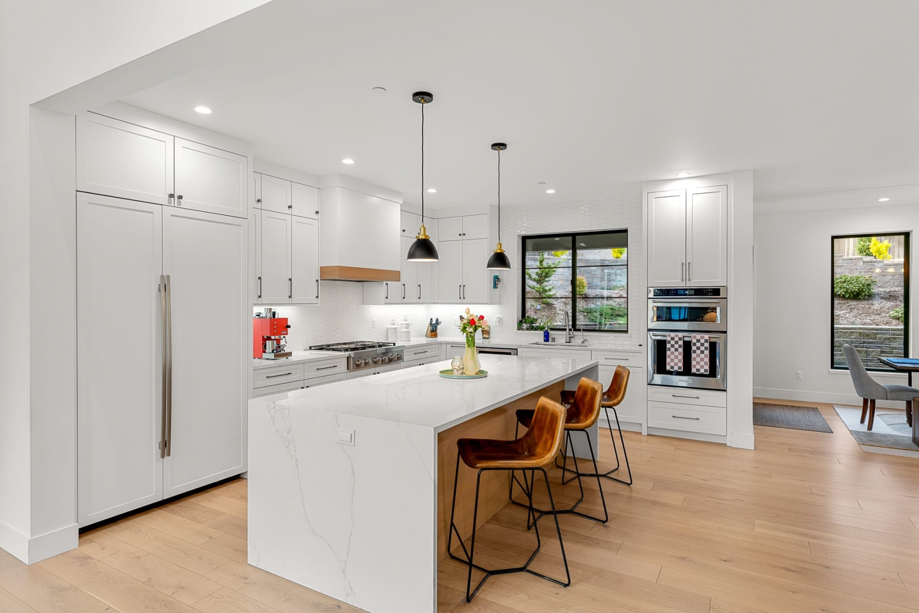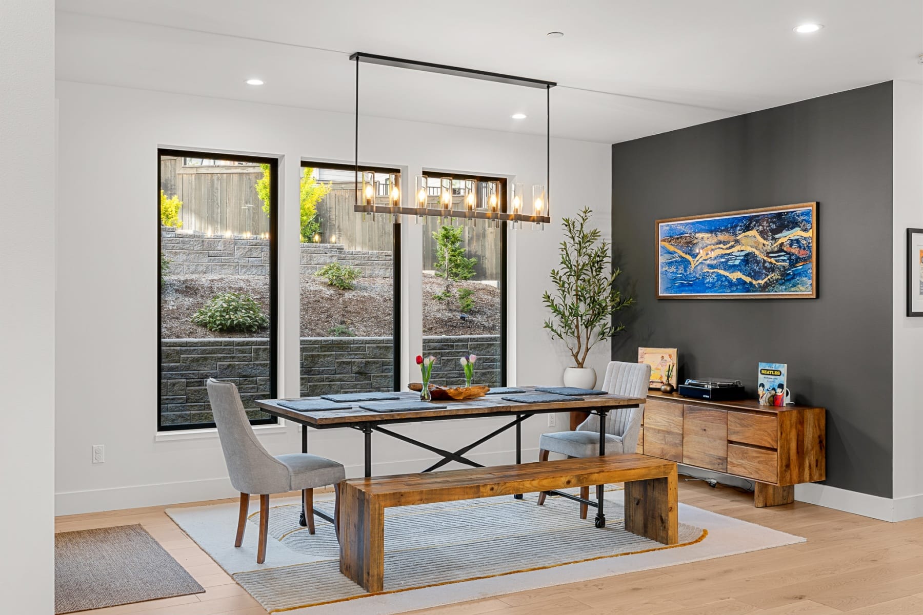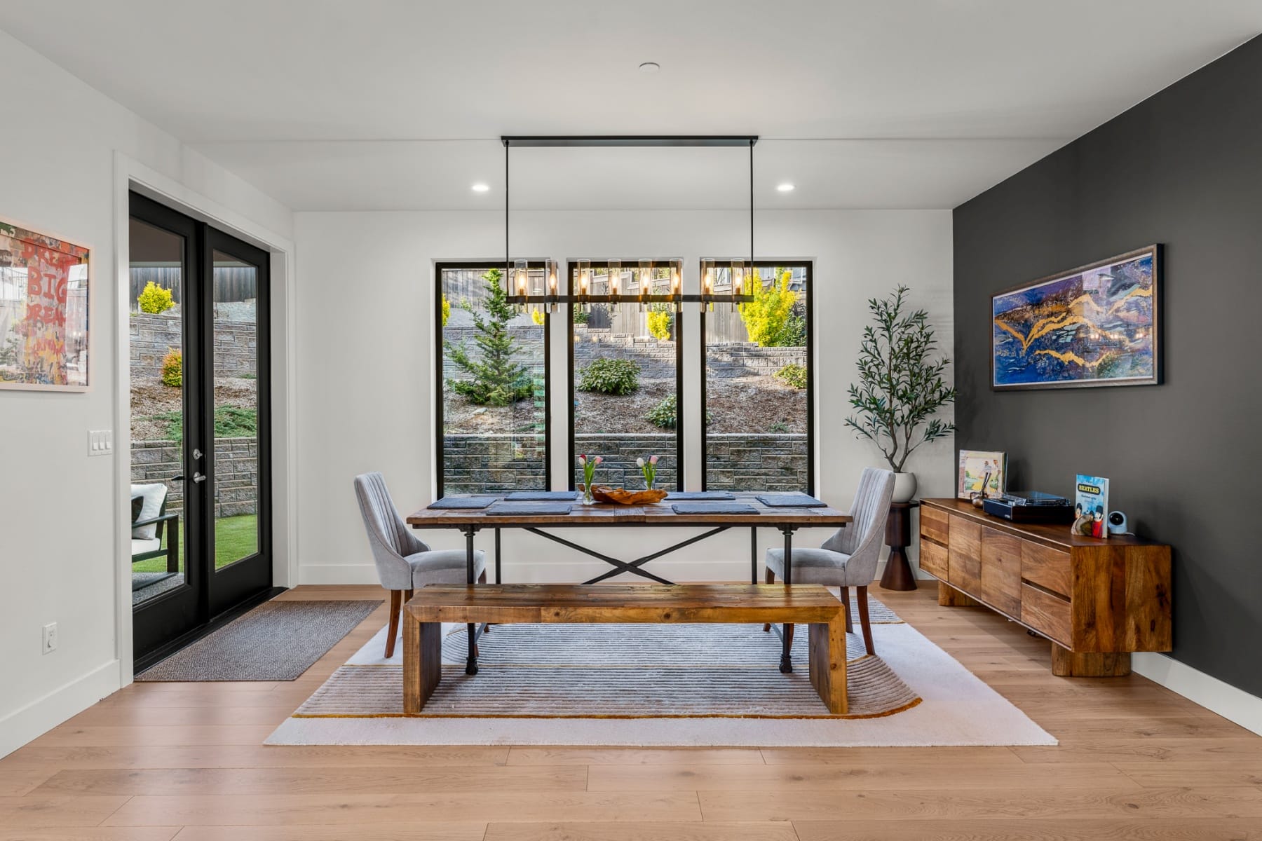 Contemporary design meets elevated everyday living in this custom-built Camas home. Soaring two-story ceilings in the great room flood the space with natural light, complemented by light-toned engineered hardwood floors that give the main level a bright, airy feel throughout. The chef's kitchen is a showpiece ' quartz waterfall-edge island, clean lines, and a layout designed for both entertaining and efficiency. A main-floor bedroom and full bath offer ideal flex space for guests, a home office, or multi-generational living.Upstairs, plush wall-to-wall carpet softens the transition to the oversized primary suite with its own full bath, two additional bedrooms, a second full bath, and a convenient laundry room ' all with the high ceilings that define the home's custom feel.Step outside to a thoughtfully designed terraced backyard with low-maintenance artificial turf, a covered patio, and room to breathe. The extra-deep three-car garage offers flex space for vehicles, gear, or a workshop setup. Home is equipped with a permanent exterior holiday lighting system ' effortless curb appeal year-round, festive at the flip of a switch. Location checks every box: walk to Lacamas Creek Trail, minutes from Downtown Camas dining and boutiques, quick access to Hwy 14 and PDX. The lifestyle is built in.4 BD | 3 BA | Main-Floor Bedroom | 3-Car Garage | Custom Contemporary | Camas Schools