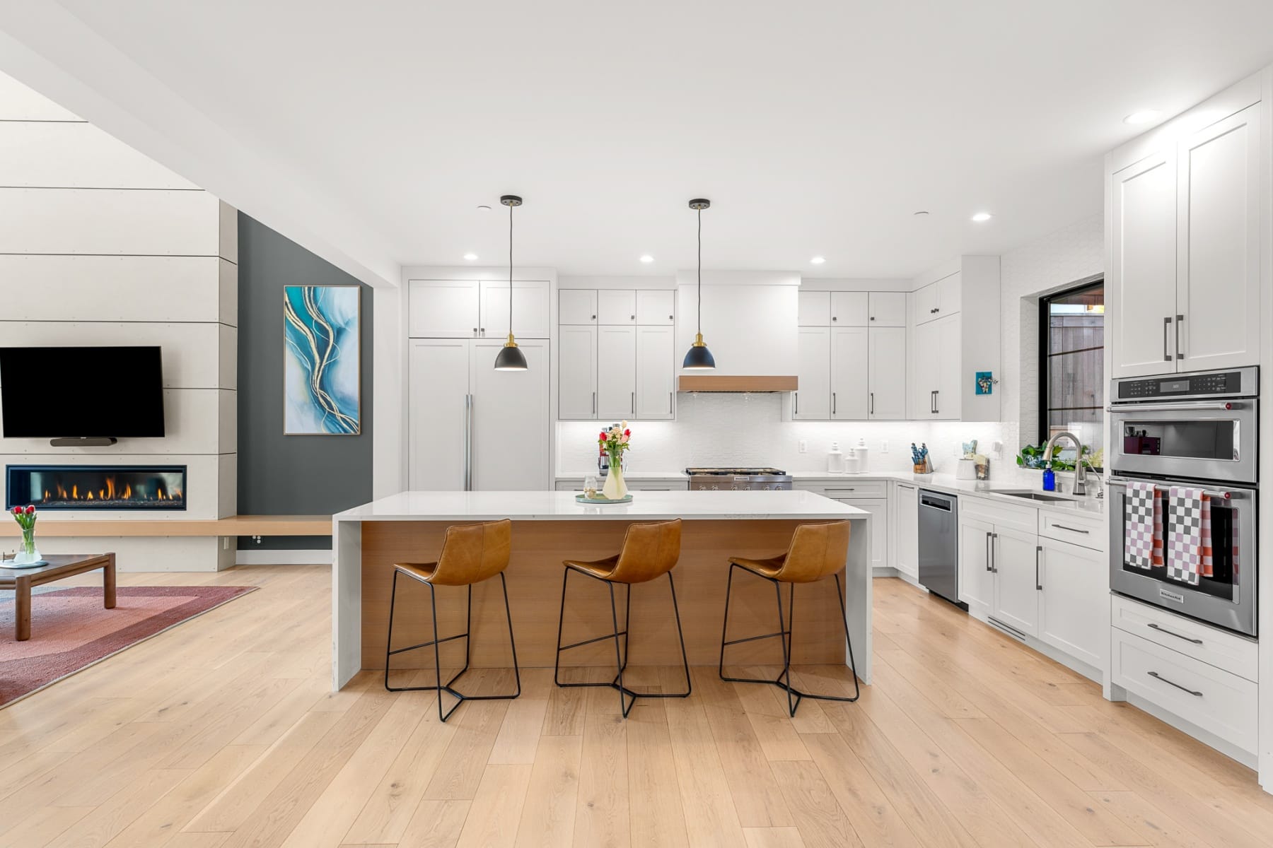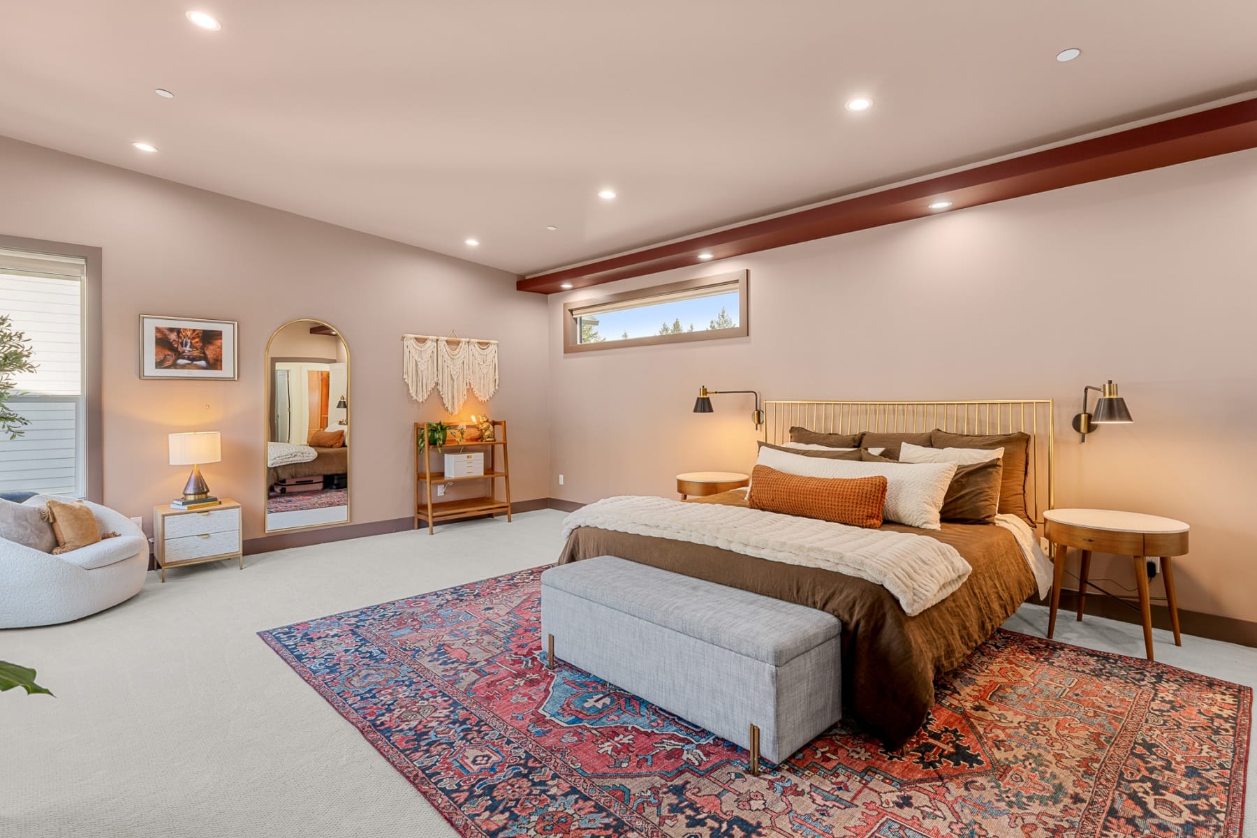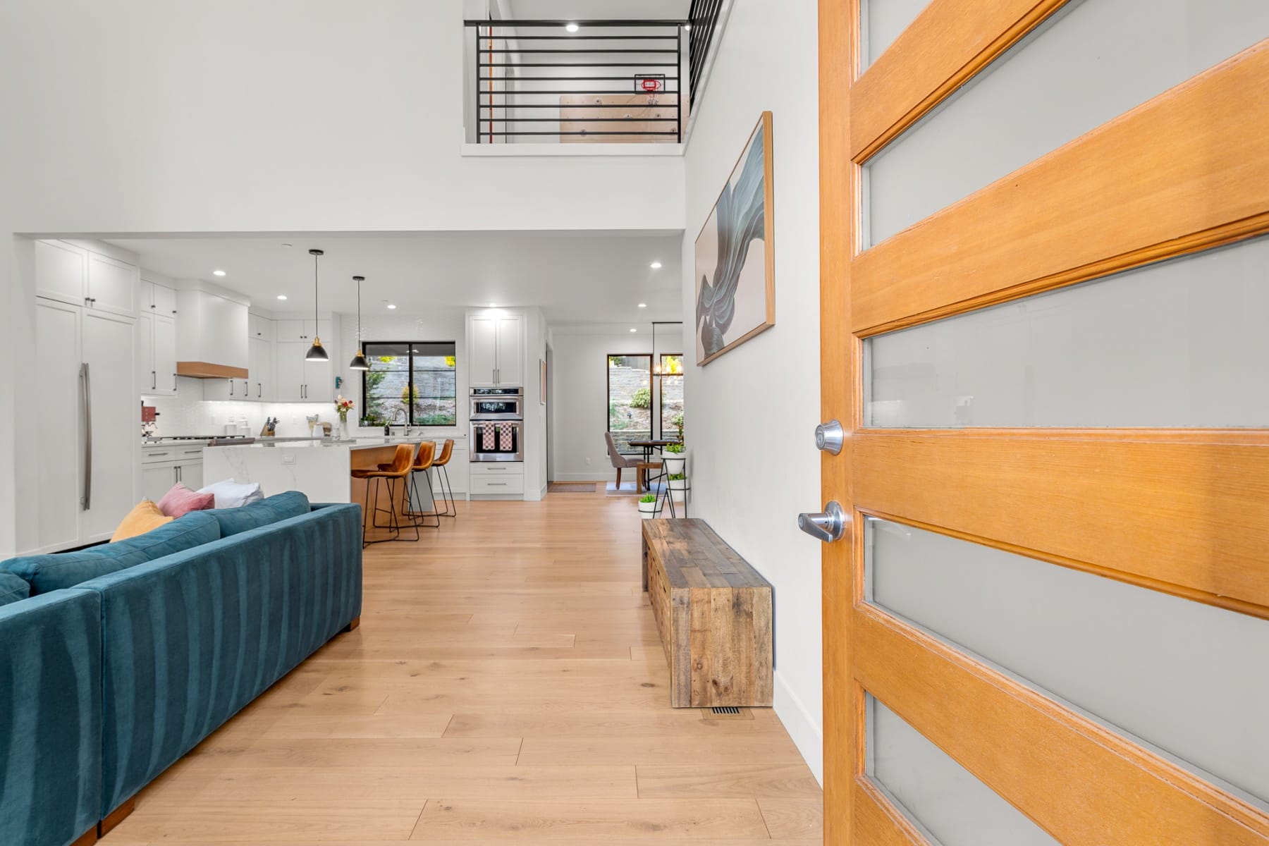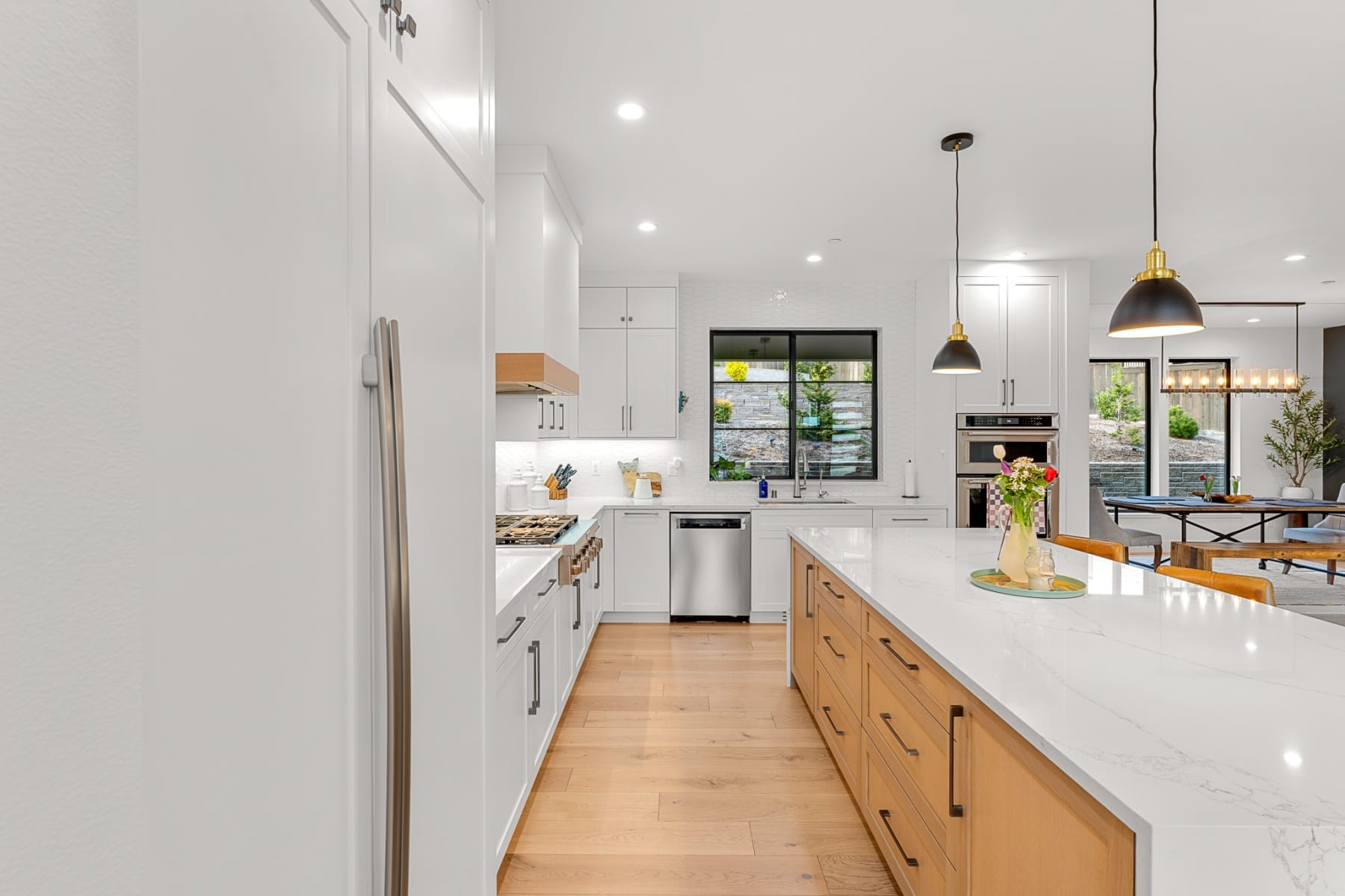 Contemporary design meets elevated everyday living in this custom-built Camas home. Soaring two-story ceilings in the great room flood the space with natural light, complemented by light-toned engineered hardwood floors that give the main level a bright, airy feel throughout. The chef's kitchen is a showpiece ' quartz waterfall-edge island, clean lines, and a layout designed for both entertaining and efficiency. A main-floor bedroom and full bath offer ideal flex space for guests, a home office, or multi-generational living.Upstairs, plush wall-to-wall carpet softens the transition to the oversized primary suite with its own full bath, two additional bedrooms, a second full bath, and a convenient laundry room ' all with the high ceilings that define the home's custom feel.Step outside to a thoughtfully designed terraced backyard with low-maintenance artificial turf, a covered patio, and room to breathe. The extra-deep three-car garage offers flex space for vehicles, gear, or a workshop setup. Home is equipped with a permanent exterior holiday lighting system ' effortless curb appeal year-round, festive at the flip of a switch. Location checks every box: walk to Lacamas Creek Trail, minutes from Downtown Camas dining and boutiques, quick access to Hwy 14 and PDX. The lifestyle is built in.4 BD | 3 BA | Main-Floor Bedroom | 3-Car Garage | Custom Contemporary | Camas Schools
