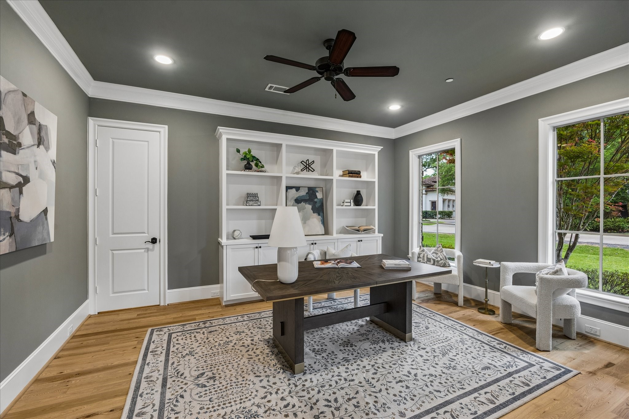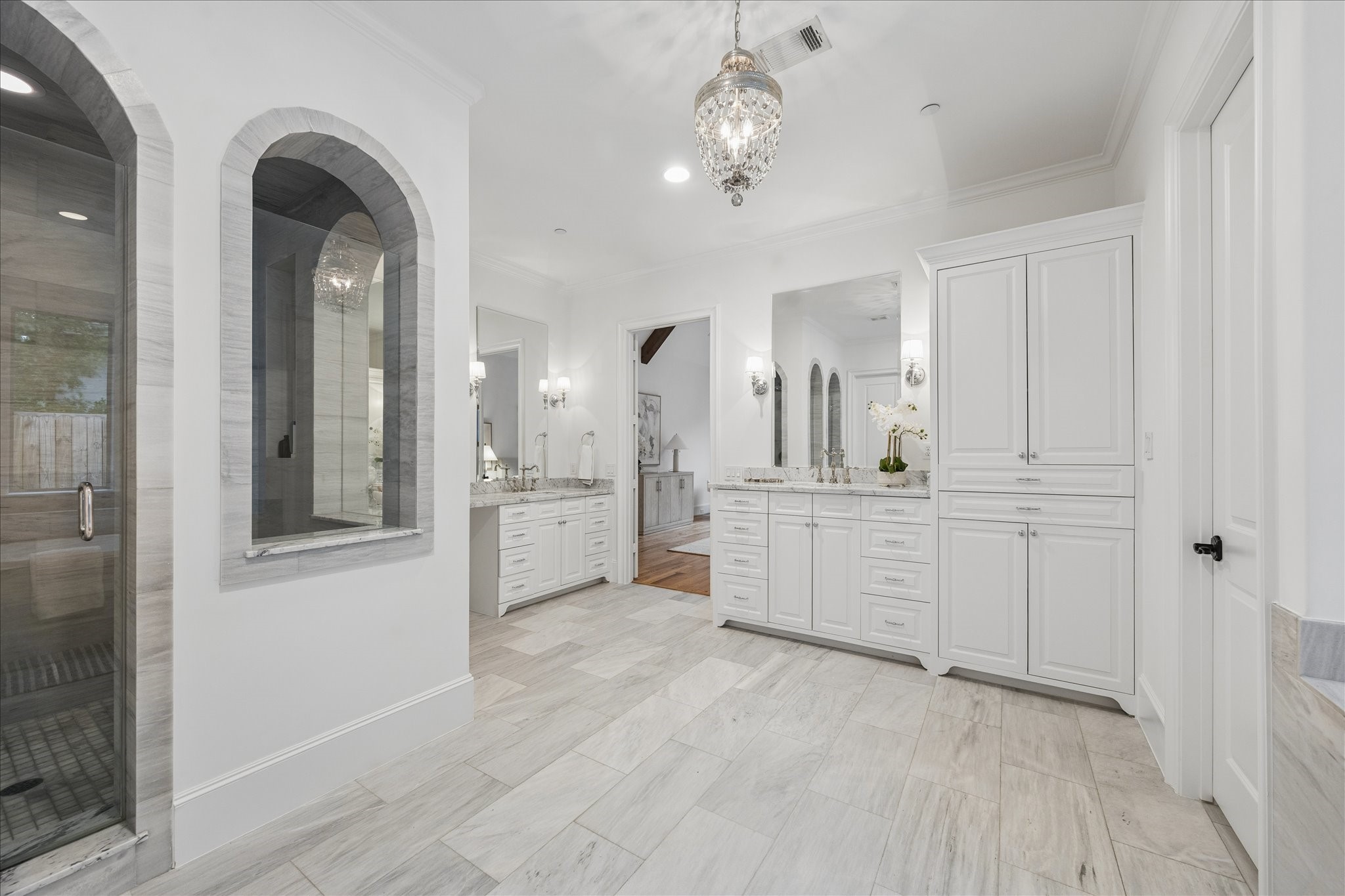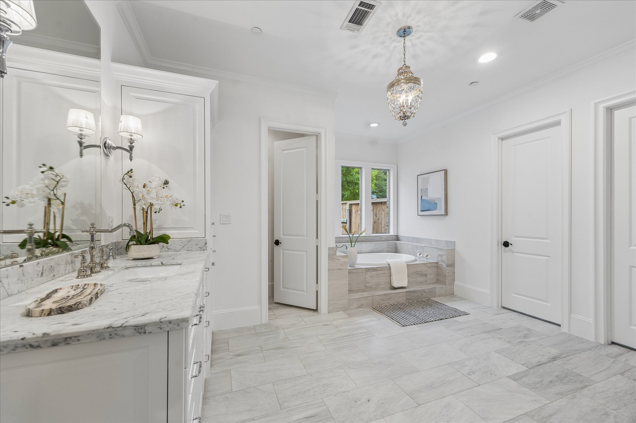 Located in the heart of Hilshire Village on an expansive 21,830 sq ft lot, this beautifully renovated home offers a peaceful lifestyle with unmatched proximity to everything the city has to offer. The spacious family room overlooks a sparkling pool and private backyard and opens seamlessly into the chef’s kitchen with high-end appliances and a large island. The luxurious downstairs primary suite features a cathedral ceiling and a spa-like bath with soaking tub, separate shower and dual closets. A secondary bedroom with en-suite bath is also downstairs, along with a study, formal dining room, large breakfast room with vaulted ceiling, powder bath and mudroom/utility. Upstairs offers three secondary bedrooms with en-suite baths, a huge game room, media room, extra storage room and a second utility room. Three-car tandem garage with epoxy floors. 2026 upgrades include interior paint, refinished hardwoods and new carpet.