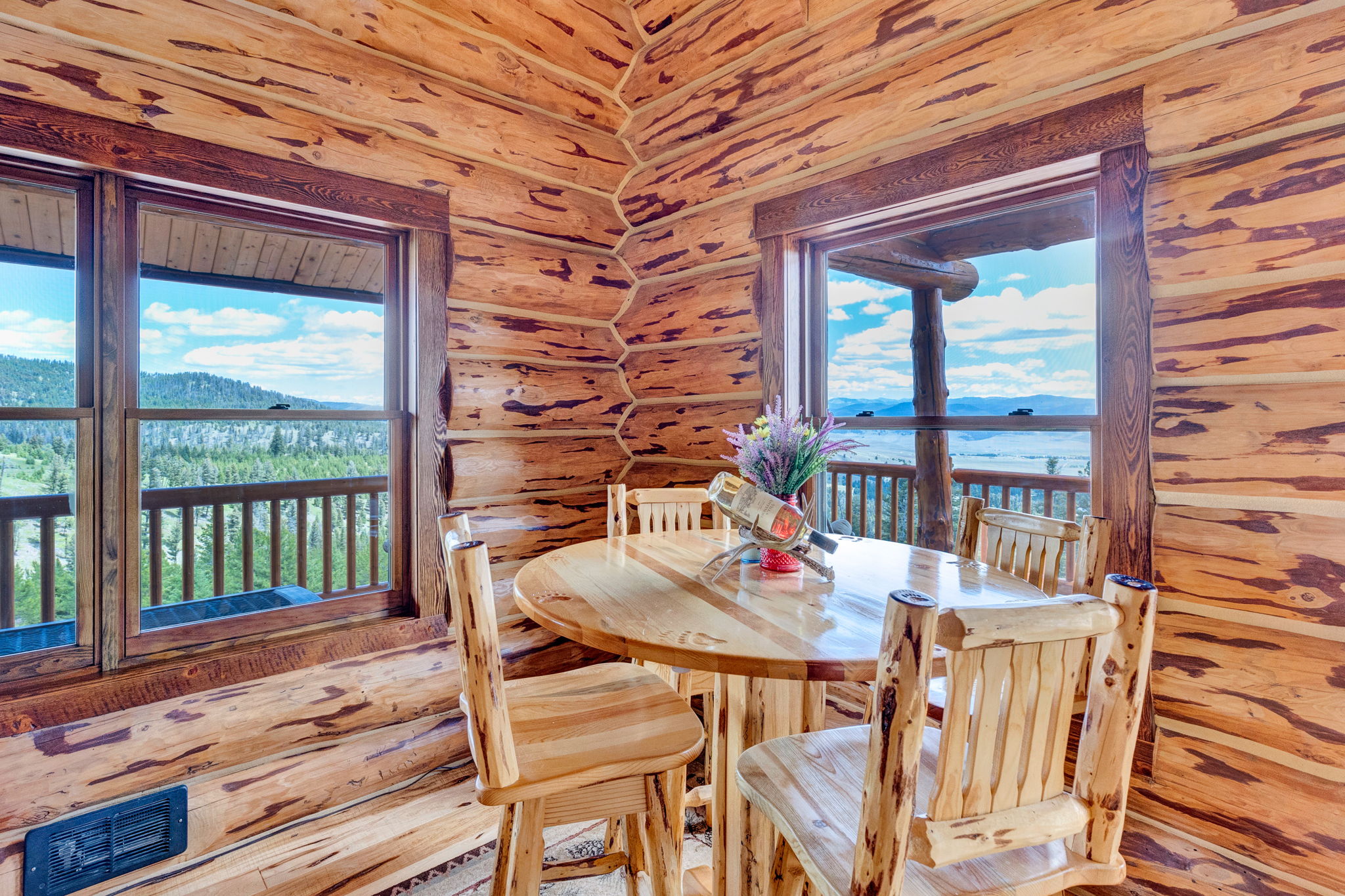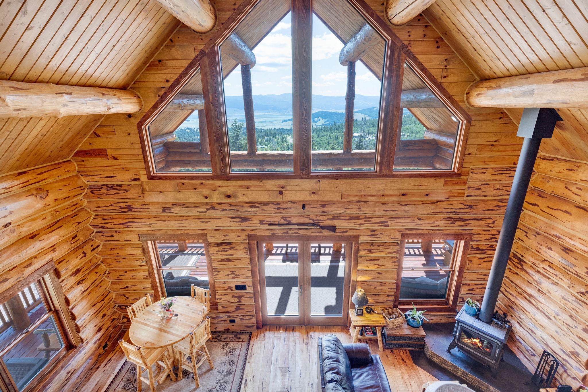 This isn't a cabin—it's a presence. Set across 19+ private acres just outside Philipsburg, this custom log residence delivers a rare combination of enduring craftsmanship, modern comfort, and complete autonomy—without sacrificing access to town, recreation, or connectivity. Constructed with hand-peeled larch logs and traditional Swedish cope joinery, the home feels grounded, intentional, and built to last generations. Inside, vaulted tongue-and-groove ceilings, exposed beams, and circular-sawn hickory and Douglas fir floors create warmth with architectural integrity. The kitchen is both functional and artful—granite surfaces, a live-edge stone sink, and rich hickory cabinetry designed for everyday living or hosting. The living room anchors the home with a soapstone wood stove—quiet, efficient, and deeply Montana. Two bedrooms, three baths, and a fully finished lower level offer flexible living, while the dry bunkhouse adds space for guests, creative use, or seasonal overflow. Step outside and the property opens up—aspens move with the wind, the land feels expansive, and the views stretch toward the Pintler Mountains and Discovery Ski Area.With no zoning, a strong 18 GPM well, fiber optic internet, and true four-season access, this property gives you options—live full-time, retreat seasonally, or hold as a long-term Montana asset. Quiet. Capable. Completely its own. This is where you go to disconnect—without disappearing.