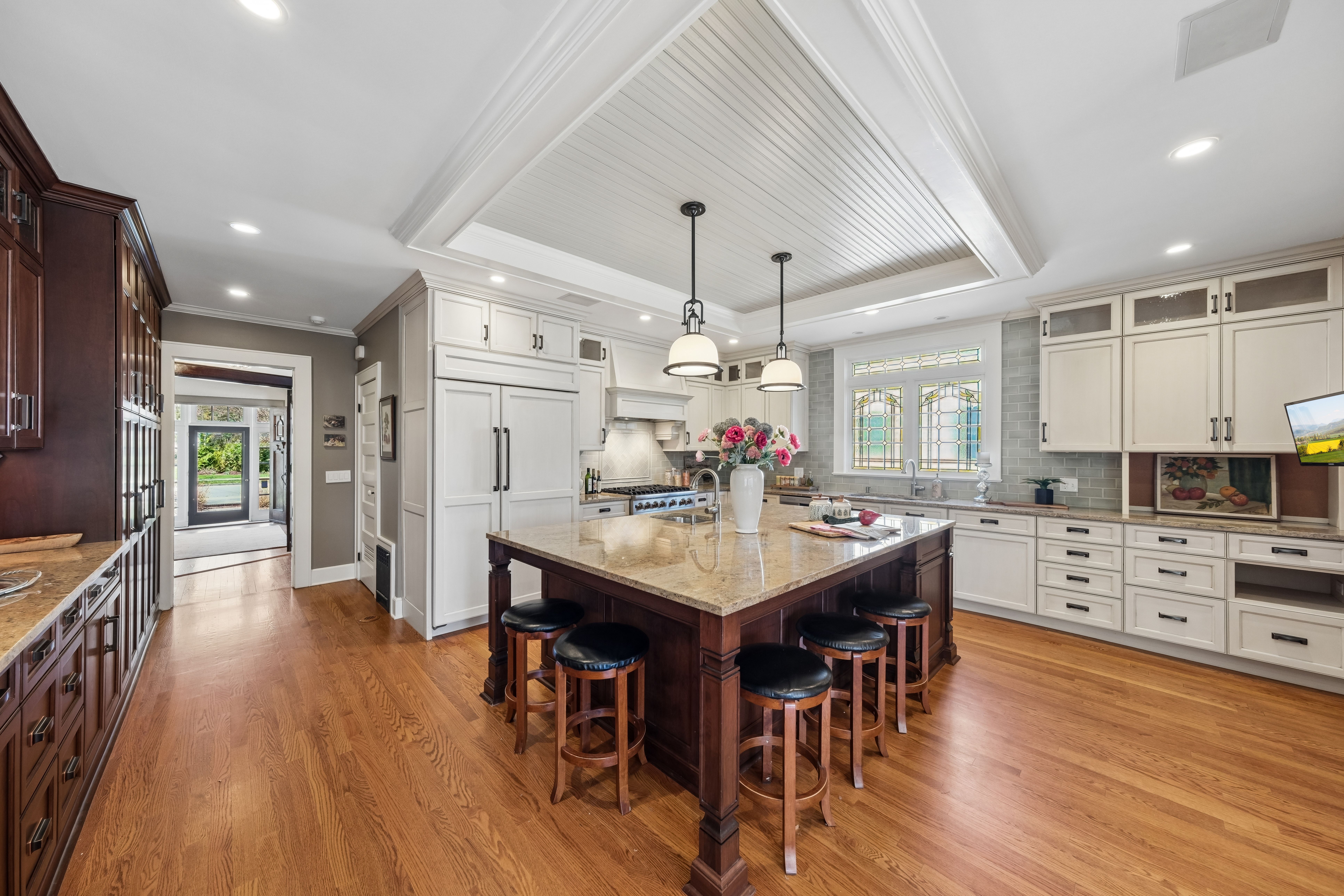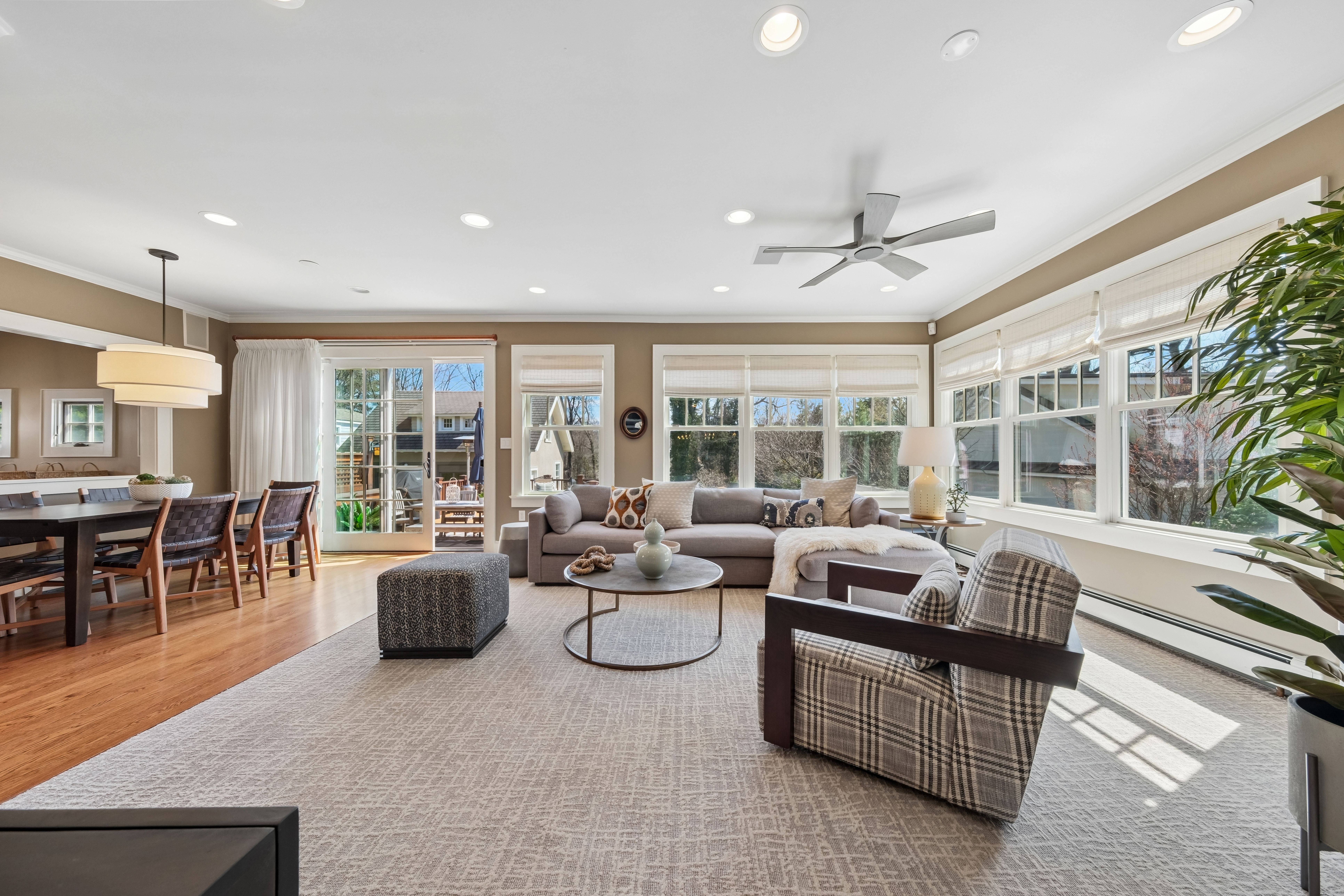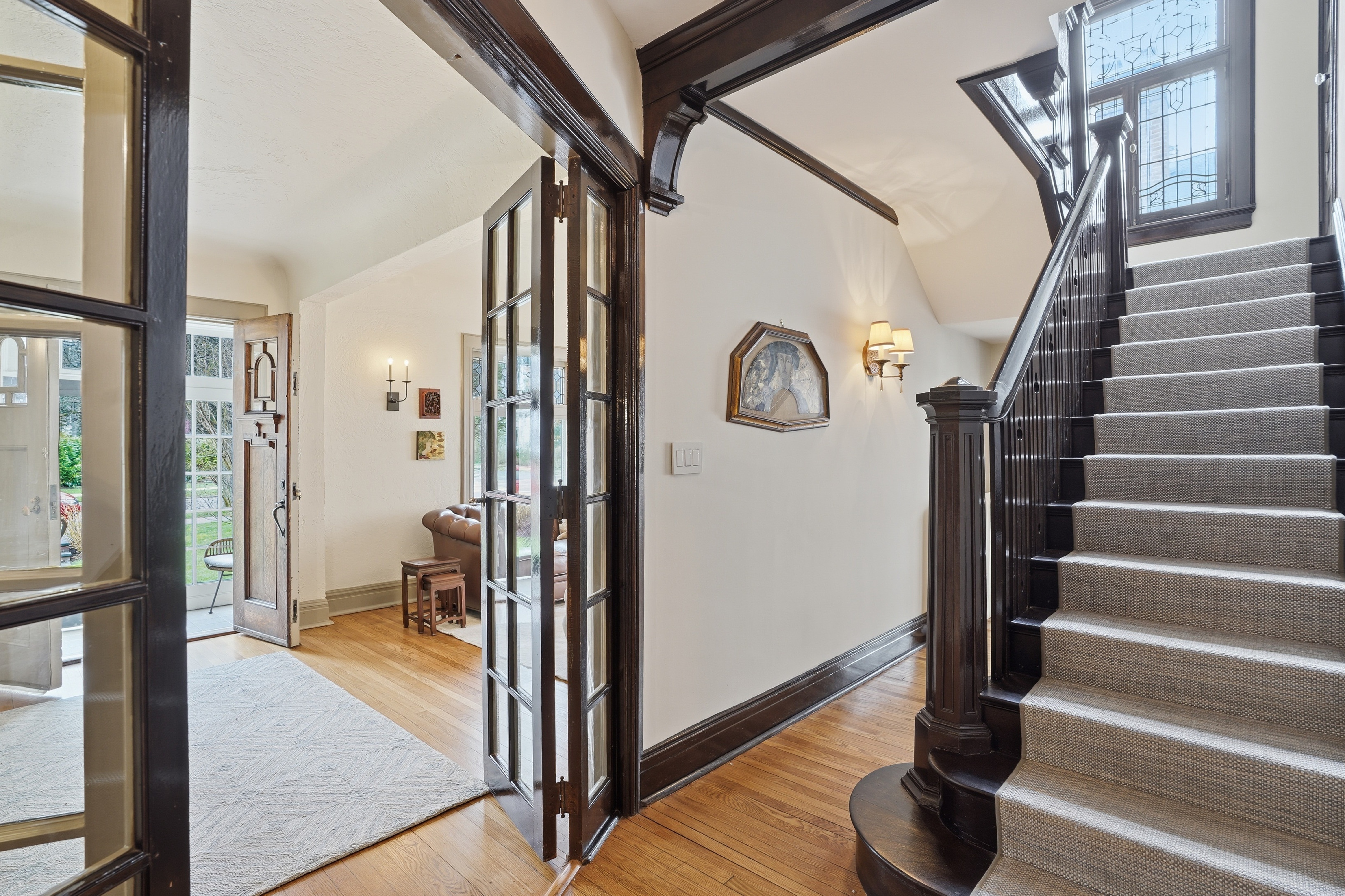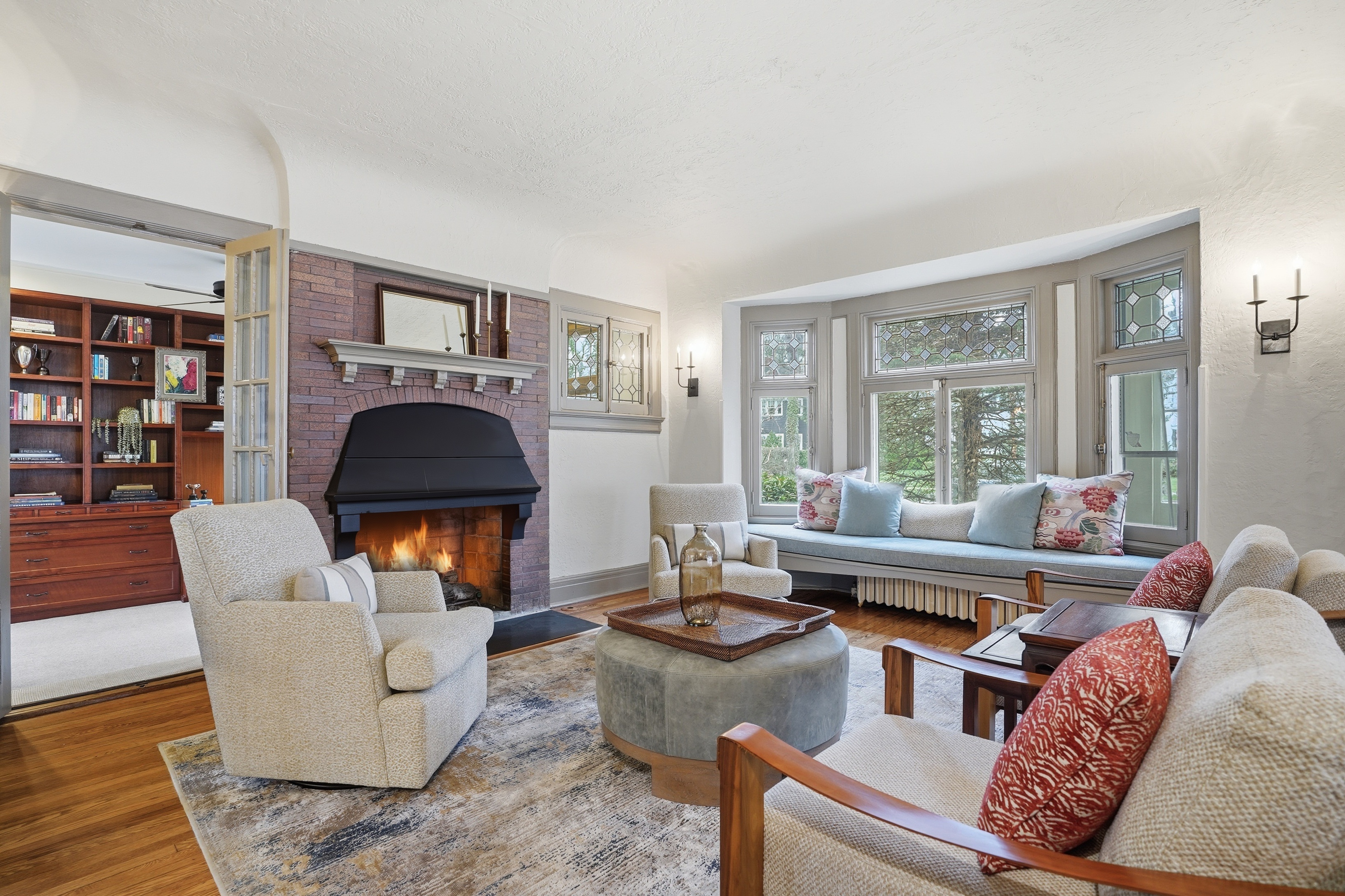 Ideally located just a block from Maplewood Village, this beautifully updated 1910 Colonial set on an expansive, professionally landscaped propertythat seamlessly blends timeless character with modern upgrades. Original details include leaded glass windows, French doors and impressive millworkthroughout. Featuring a gracious double living room with a gas FP, leading to a generously sized DR that's ideal for entertaining. A dedicated office provides 2built-in workstations & extensive custom bookcases. The chef's kitchen, outfitted w large center island, prof-grade appliances, three sinks and a walk-inpantry, opens to a sun-filled FR designed for everyday living & hosting, while nearby mudroom, PR & FB complete this level. Upstairs, an expansive primarysuite with gas fireplace, walk-in closet and spa-like bath, is complemented by four additional bedrooms, one and a half additional baths, convenient secondfloor laundry and a family room that opens to a private sundeck. Downstairs, the spacious lower level includes a Universal Gym, game room and amplestorage. Outdoor living is equally impressive, showcasing a heated in-ground pool with underwater lighting, a fully fenced backyard and beautifullymaintained grounds with irrigation and landscape lighting. Additional features include a two-car garage with EV charging, owned rooftop solar panels and acomprehensive smart home system controlling thermostats, lighting, and five-zone audio throughout the home and outdoor spaces.
