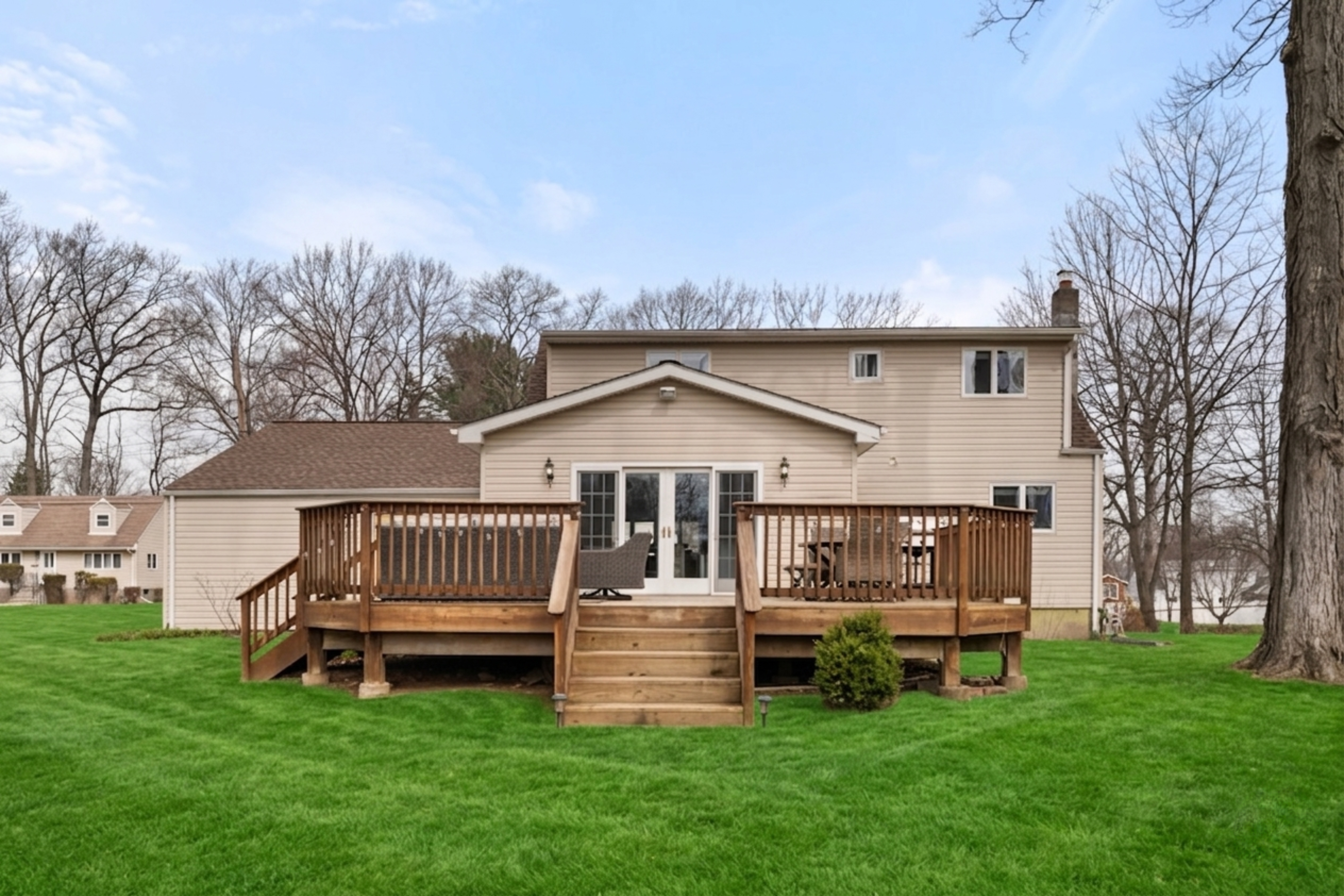 This charming 5-bedroom expanded Cape Cod style home in the Clarkstown School District is updated and completely turnkey. The very desirable open floor plan is perfectly configured for maximum enjoyment & entertaining possibilities. Natural sunlight fills the interior and highlights the fabulous finishes and updates that have been made. Enjoy the peace of mind knowing that the entire home was renovated in 2017 to include new doors, windows, siding, central air, furnace, roof, recessed lighting, washer/dryer, & so much more. The large kitchen with wood cabinetry, granite countertops, center island & stainless steel appliances will perfectly serve as the central point for social gatherings and time with loved ones. The first level also includes a living room, 2 bedrooms, and a chic bathroom with a walk-in shower; thereby accommodating single level living if desired. The 2nd level includes cathedral ceilings and expanded dormers, 3 spacious bedrooms and full bathroom. The lower level offers a total of 864sf not included in the total living square footage and includes a large den/playroom, storage, laundry and access to the two-car garage. A large and level rear yard with oversized deck is a perfect bonus and provides the ideal setting for countless hours outdoors.