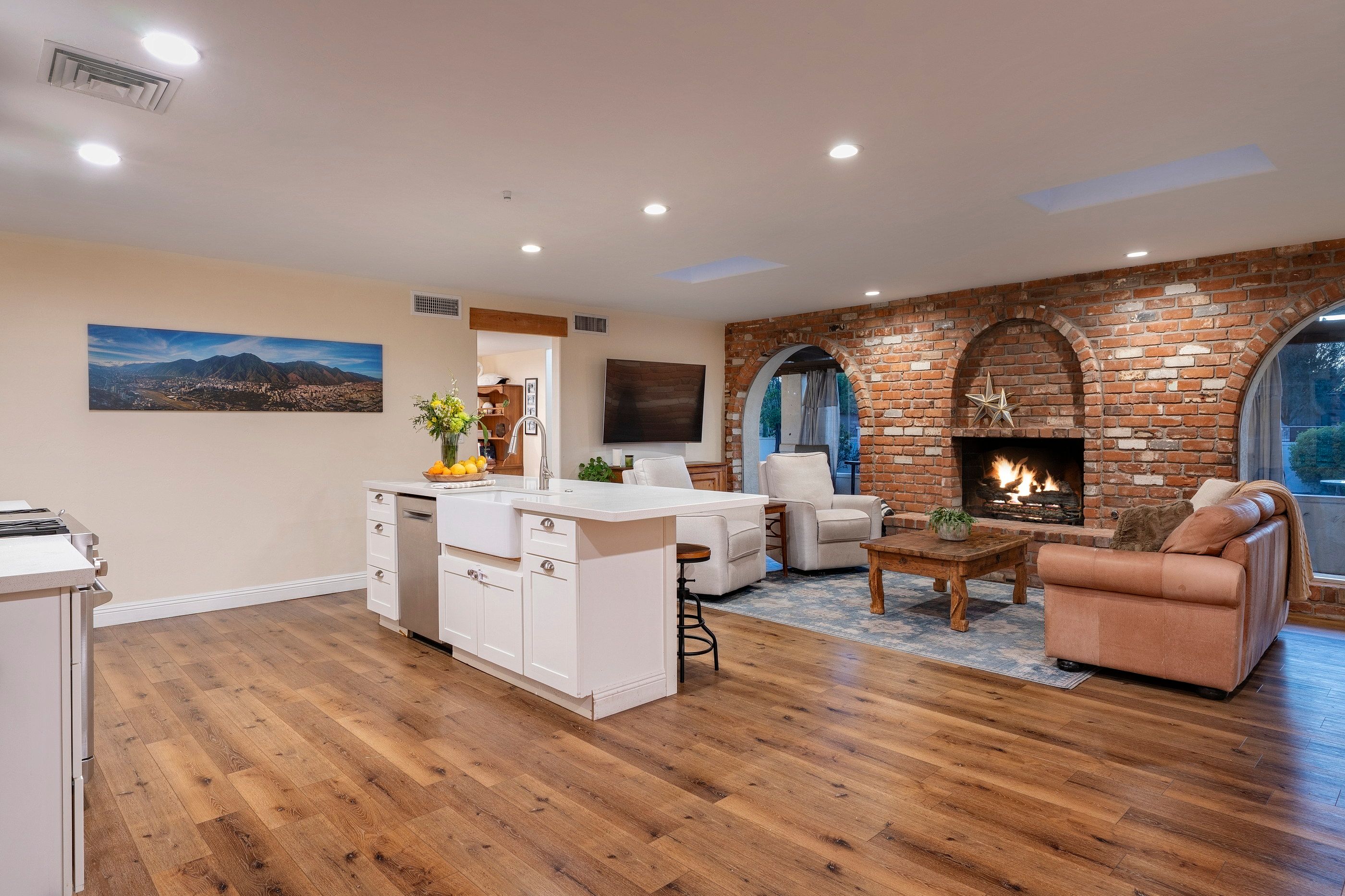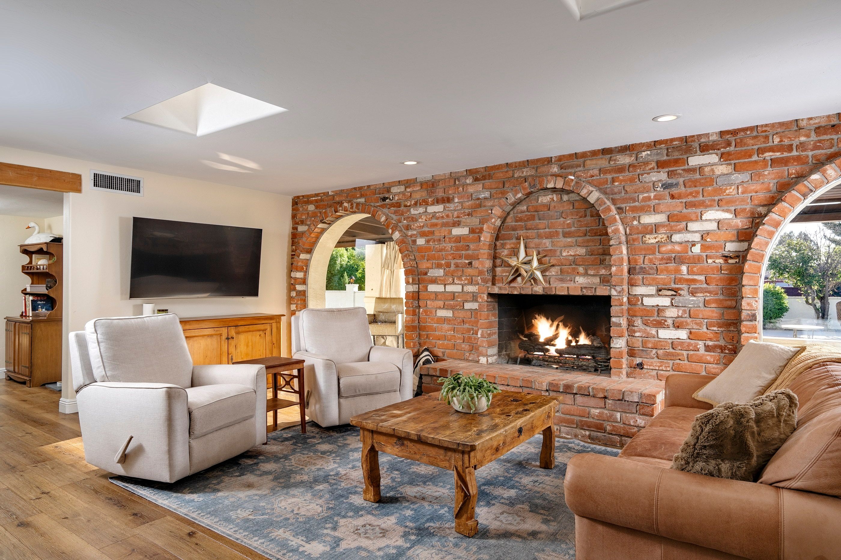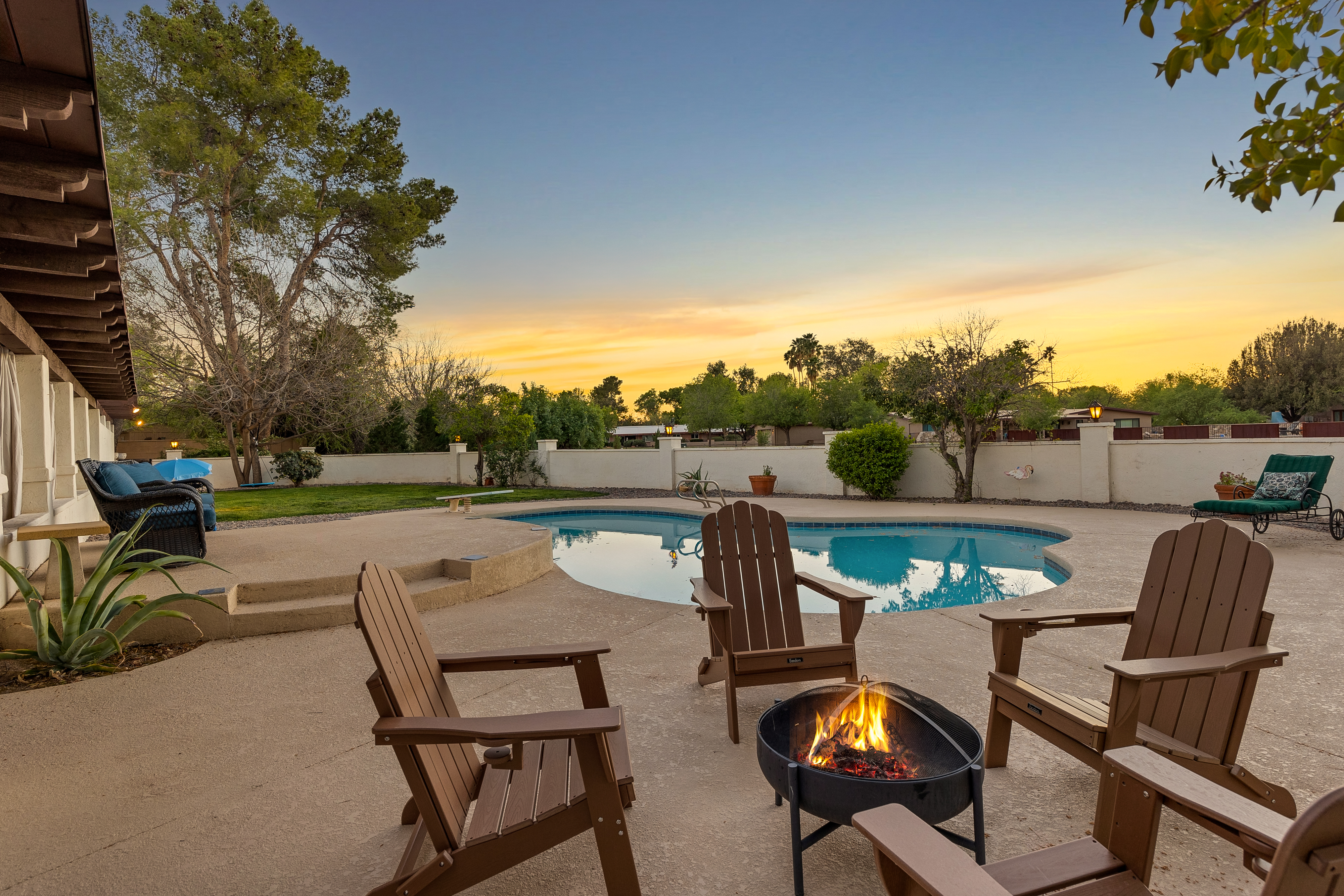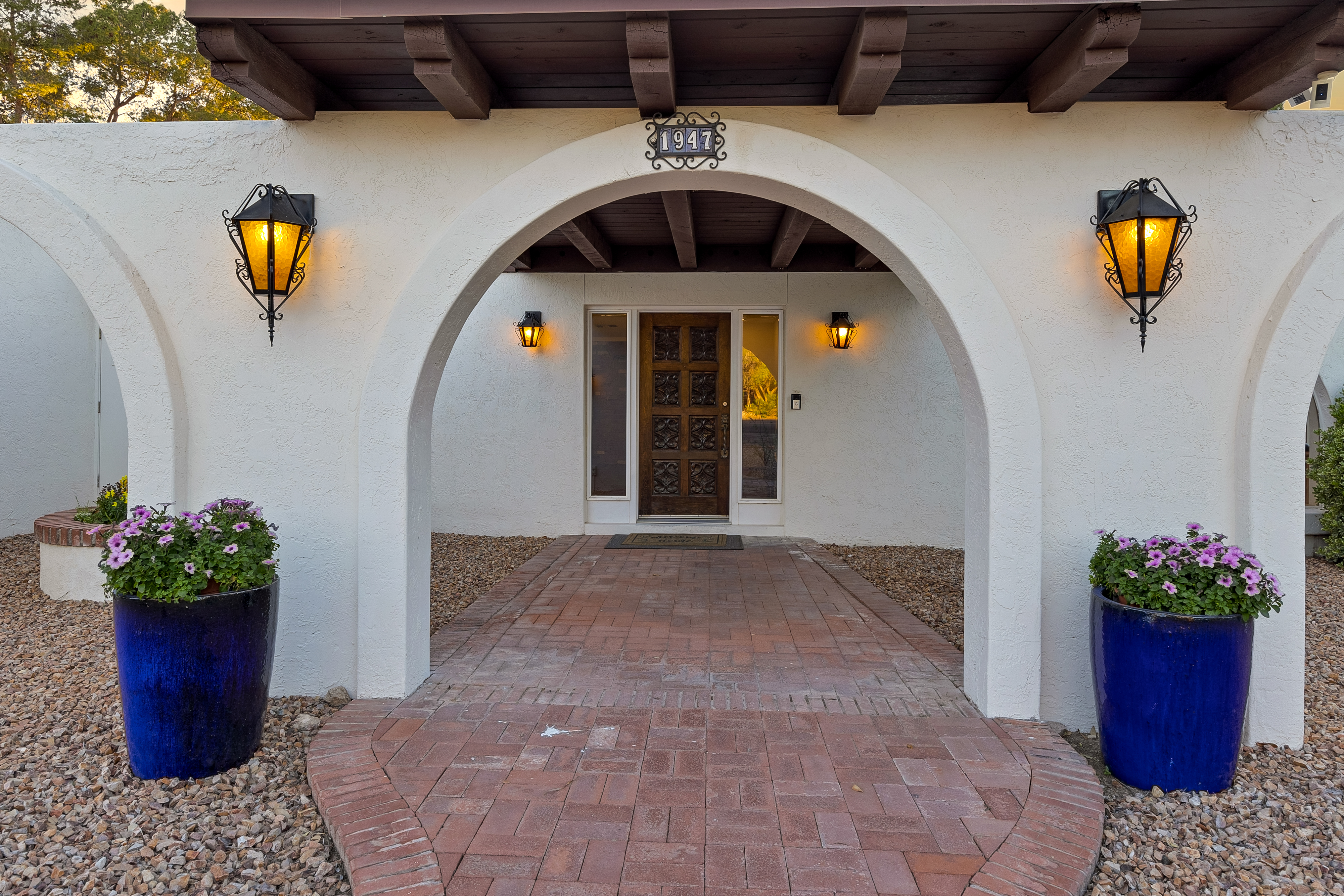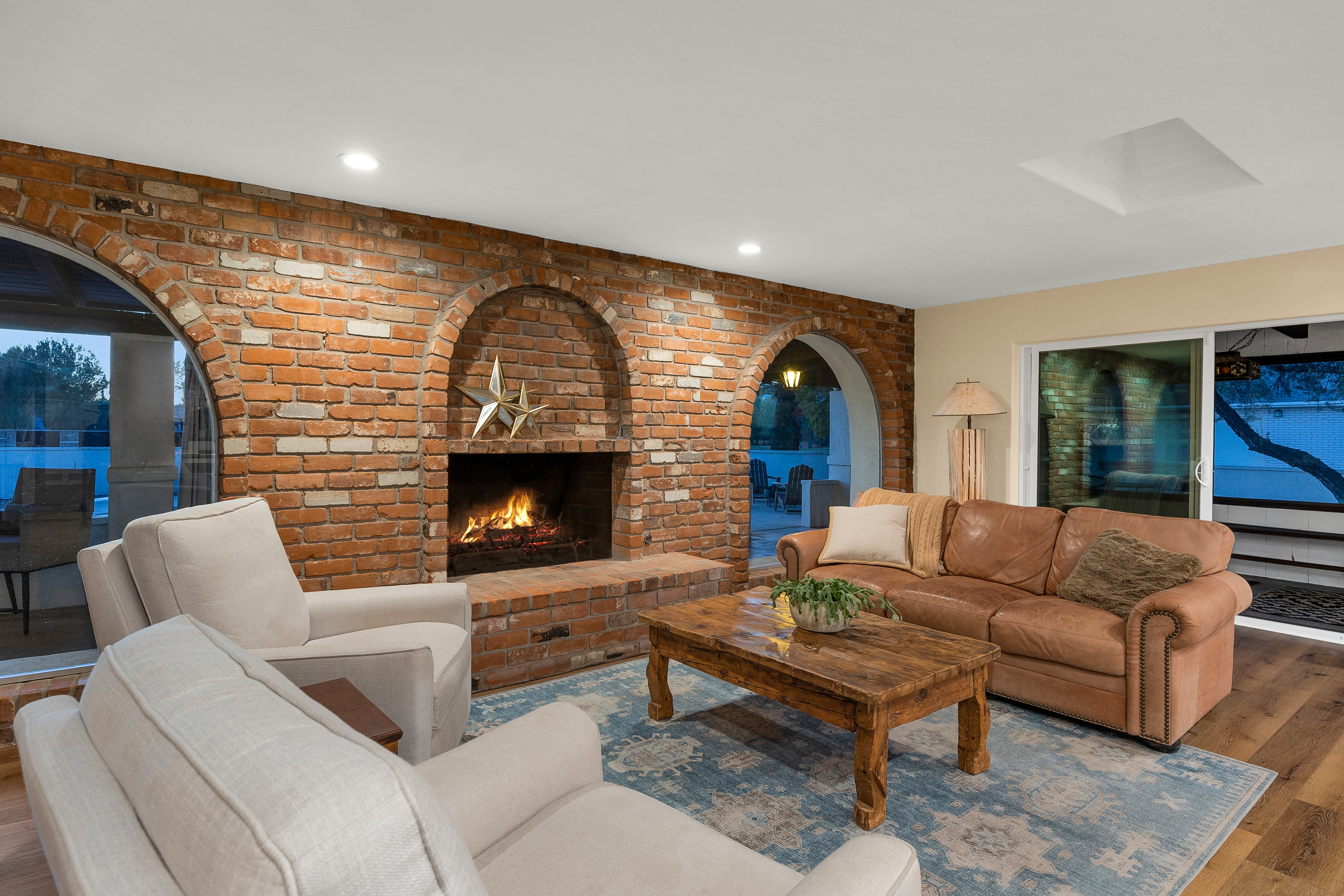 Completely renovated five-bedroom, four-bathroom masonry-built home situated on a private, .65-acre lot in the sought-after 49ers Country Club in the tranquil Tanque Verde Valley. This nearly 4000-square-foot home, set on the 17th hole of the 49ers golf course was thoughtfully redesigned to maintain the charm of the original home while bringing every inch up to date. Set back on the lot, a circular driveway and a red-brick walkway welcome you to this modern ranch-style home that preserves classic character with wood-beam accents, exposed brick, and large arched windows that flood the space with natural light. Spacious entry with rich engineered wood floors, a formal dining area with room for large-scale entertaining, and a spacious living room. The kitchen with a center island and breakfast bar opens to the family room with a brick fireplace and flows into an Arizona room that serves as a flexible entertaining space, refuge from the elements, and additional space for serving food and storing kitchen supplies. Updates and upgrades in the kitchen include quartz and butcher block counters, new cabinetry and hardware, stainless steel appliances including a magnificent GE Monogram gas range with a hood vent, two sinks, wine/beverage refrigerator, and so much more. The split-bedroom floor plan adds to the privacy and livability of this five bedroom plus bonus room home. The versatile bonus room, currently a playroom, can easily serve as an office, den, music room, or media space. The next-level primary suite features a beehive fireplace, a private patio, and a beautifully renovated bathroom with two sinks/vanities, soaking tub with wood-accent feature wall, custom tile shower with glass enclosure, and a spacious walk-in closet with custom built-ins. The additional bathrooms have been updated with new fixtures, tile, vanities, mirrors, and custom tiled showers. The backyard offers a resort-style setting with a newly plastered pool equipped with a safety net, a large grassy area, and covered patios that create an inviting outdoor living space. Sunset and golf course views complement this lush homesite lined with mature trees.This home has new Pex water lines, new floors, new windows & blinds, new pool pump, and pool recently re-plastered. Coveted 49ers Country Club amenities include golf, workout facilities, pool, restaurant and bar, holiday events, and outdoor summer movie nights. An active swim team and summer camps create a welcoming community atmosphere. The home is located within the highly rated Tanque Verde School District and is very close to the elementary and middle school. High-demand Hermosa Montessori school is close-by. Private schools such as Desert Christian, St. Michael's, and Castlehill Country Day School are within 20 minutes of the neighborhood. Located in the lush Tanque Verde Valley--often called the Green Jewel of the Desert--this exceptional property enjoys a setting unlike anywhere else in Tucson. Traversed by two seasonal creeks, the valley offers an uncommon green desert environment shaded by mature trees and unparalleled natural beauty. Home to approximately 15,000 residents, Tanque Verde is defined by larger parcel properties, open space, and direct access to both the Catalina and Rincon Mountains. Situated at the base of Mt. Lemmon, residents enjoy the rare ability to ski or play in the snow during winter months and escape Tucson's summer heat in the cool mountain air. The result is a relaxed, scenic lifestyle in one of the most beautiful and distinctive settings in the Sonoran Desert.