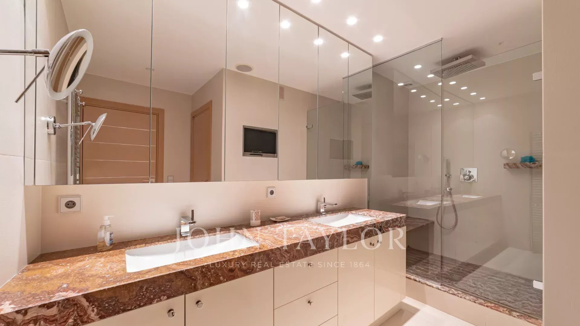 In the highly sought-after Californie area, within a luxury residence, this magnificent apartment benefits from an exceptional panoramic sea view, extending from Cap d’Antibes to the Lérins Islands and the Esterel massif.Located in a calm and green environment, it has an area of approximately 191 m² (176 m² Carrez law) and consists of an entrance, a large double living room opening onto a 28 m² terrace, a separate kitchen, guest toilets, two bedrooms with their bathrooms, and two bedrooms with their bathrooms and toilets.This property is completed by a cellar and a garage.The residence offers quality amenities: swimming pool, tennis court, golf practice, private shuttle, and a concierge service.