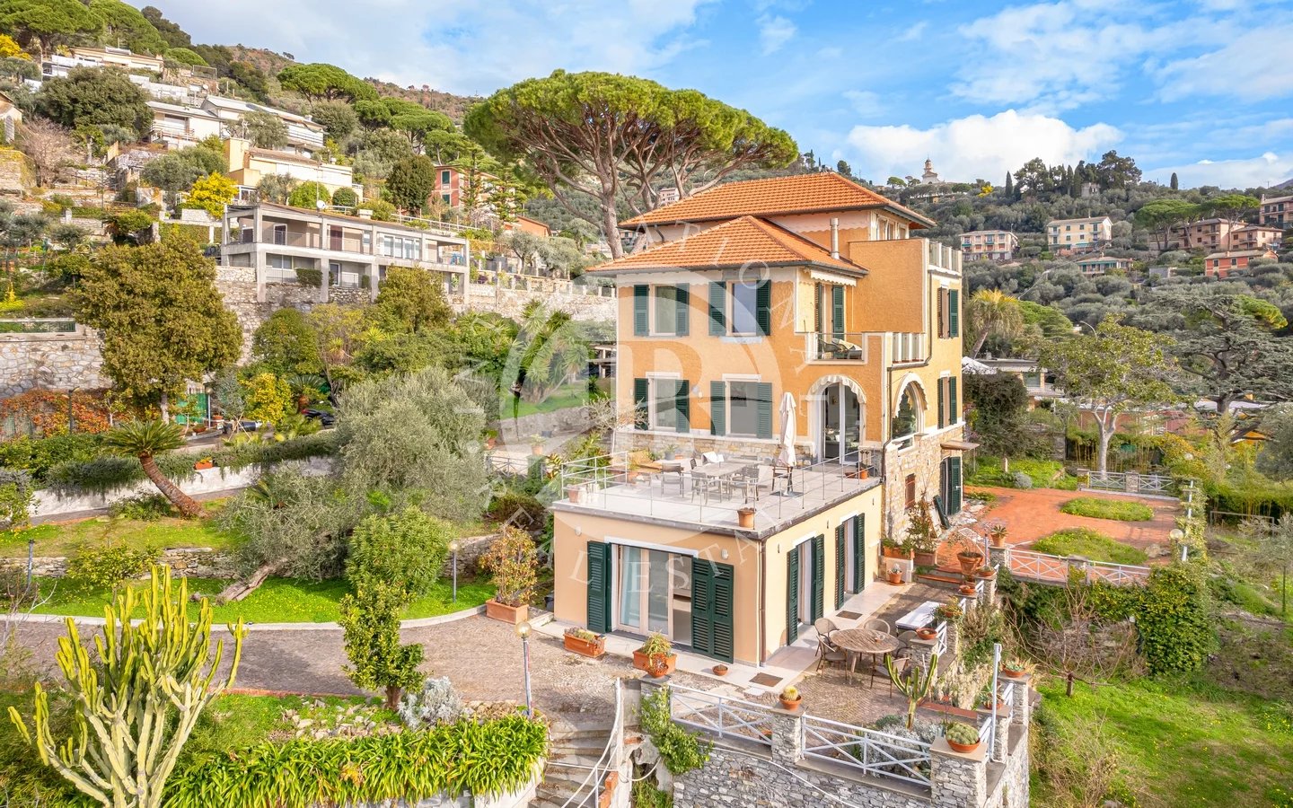 Located in one of the most prestigious settings of the Riviera di Levante, this stunning detached 1920s villa is the perfect blend of period architectural charm and modern luxury. Recently renovated with exquisite taste, the residence has been meticulously enhanced to maintain a sophisticated soul that harmonizes beautifully with the surrounding landscape.The property spans approximately 430 sqm across multiple levels, designed to ensure both flow and privacy. The heart of the home is the expansive living room—a light-filled space that opens onto a panoramic terrace. From here, the view is truly unparalleled, offering a privileged vantage point that overlooks the ancient village of Camogli and stretches toward the Portofino promontory.The sleeping area includes 4 spacious, finely finished bedrooms and 4 bathrooms. The ground floor features a strategic addition: an independent apartment with its own entrance, perfect for hosting guests in total privacy or for staff quarters. The property also offers large spaces currently used for storage, providing excellent potential for further customization.The outdoor area is already prepared for the construction of a swimming pool. Completing this exclusive property are three covered parking spaces and an enviable location: the villa is just steps away from the town center and all essential services. This is a unique residence where historical prestige meets the eternal beauty of the Ligurian Sea.Recco is the strategic gateway to Golfo Paradiso, offering the convenience of a fully serviced town just moments away from the Riviera's most exclusive destinations. Its privileged location, with excellent highway and rail connections, allows you to reach the charm of Camogli in just a few minutes, while the elegant atmospheres of Santa Margherita and Portofino are less than a twenty-minute drive away. It is the ideal solution for those seeking the perfect balance between urban functionality, coastal relaxation, and proximity to the scenic hiking trails of the Regional Park.200m from the sea3km from Camogli15km from Portofino30km from Genoa Airport