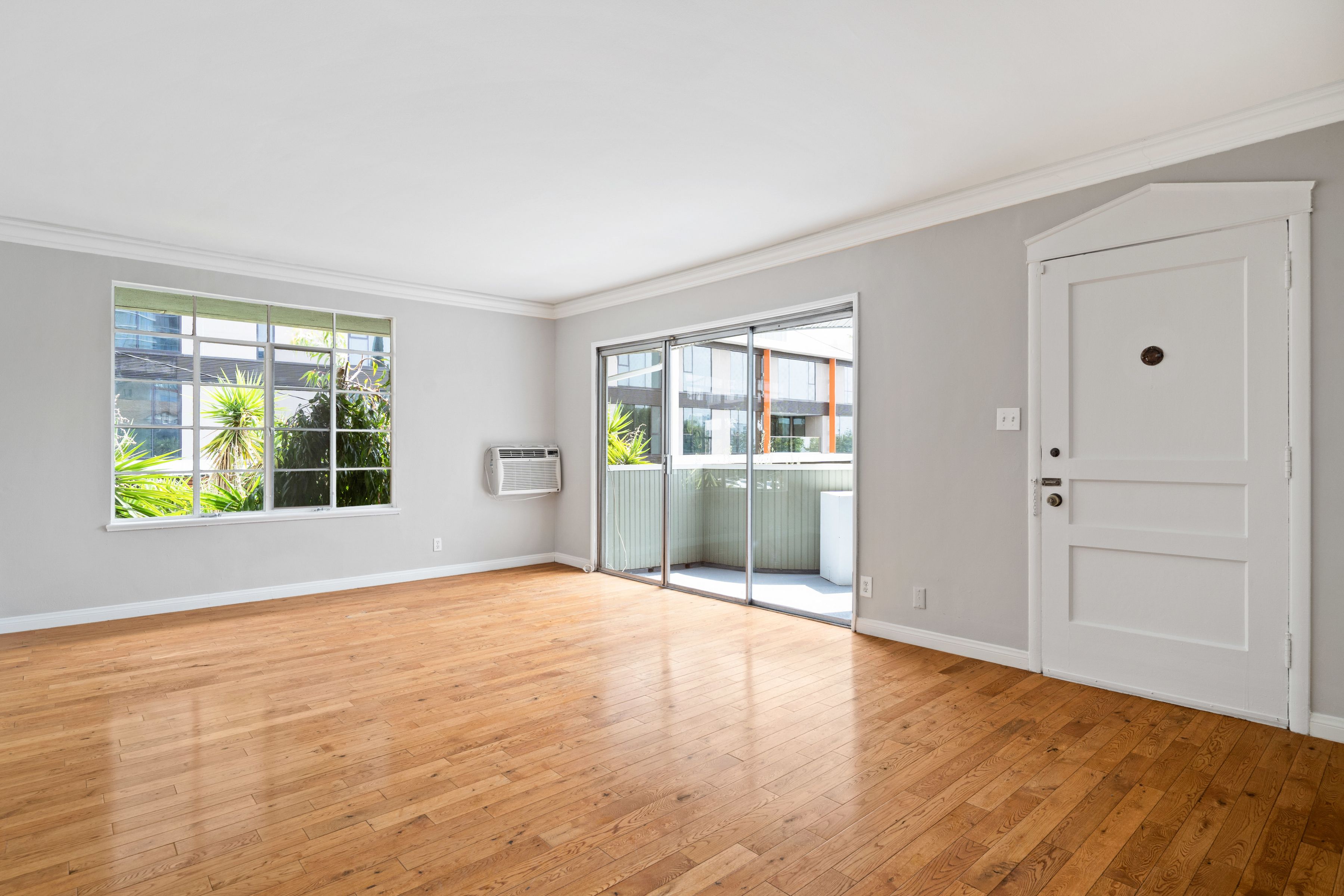 Beautiful Penthouse 1940's California garden bungalow located in the prime area of West Hollywood just steps to the Mondrian Hotel and the Pendry on Sunset. Large Livingroom that open to an private terrace with tree top views. Kitchen has restored vintage tiles w/refrigerator, stove. Bedroom is very private and overlooks tree tops with wall A/C. Bathroom with tub, a separate shower, and restored vintage tiles. Community pool and beautiful garden courtyard with mature shade trees, also has fountain and Koi pond. The 3/4 of an acre gardens are spectacular and unique and create a true oasis in the middle of West Hollywood hottest area. Personal Parking space in underground gated parking garage. Across the street form the new Pendry luxury condominiums & hotel. Skip the commute and live where all the action is or retreat to your perfect urban oasis. Vacant - available now.