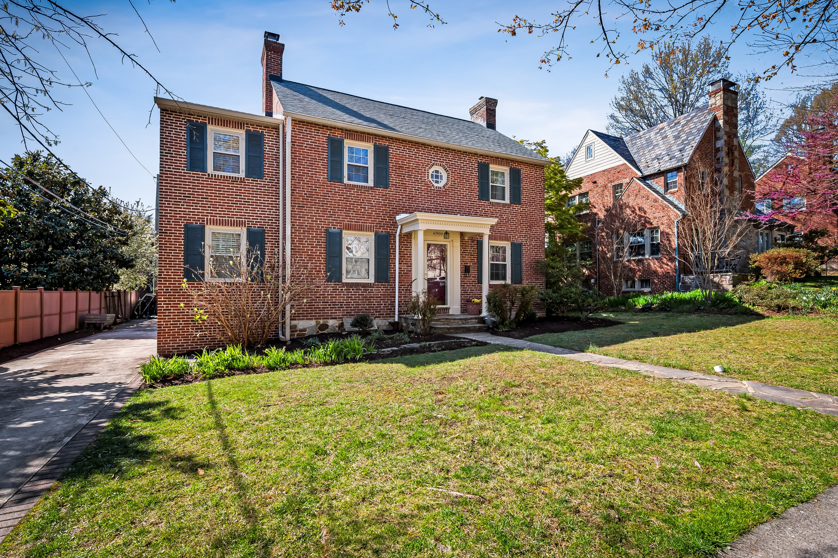 Everyone wants to live in Stoneleigh! 6900 Avondale Road is an expanded, improved brick colonial with all the amenities for today's living. You'll love the expansiveness of the kitchen, with tons of counter and cabinet space and a breakfast area bump-out that fits a table for six. The mudroom leading to the back yard provides a spot to drop shoes and sports equipment. Use the living room every day as your family room, and make the first floor den a playroom, home office, or reading area. A half bath is located in the den. The primary suite has been expanded, adding a full-sized laundry room, a spacious primary bath with huge shower, and a walk-in closet. And there are two additional closets. Find two more bedrooms plus a full bath on this level. Follow the hallway to the finished third floor bedroom. There is room up there for another home office, also. The finished lower level provides another full bath, family room, and storage. Two-zone air conditioning refreshes all four levels. Parking for at least five cars on the recently concreted driveway plus there is a garage for another car or storage. Lower level waterproofed. Come enjoy the Stoneleigh Experience and walk to local schools and the popular Stoneleigh Pool.