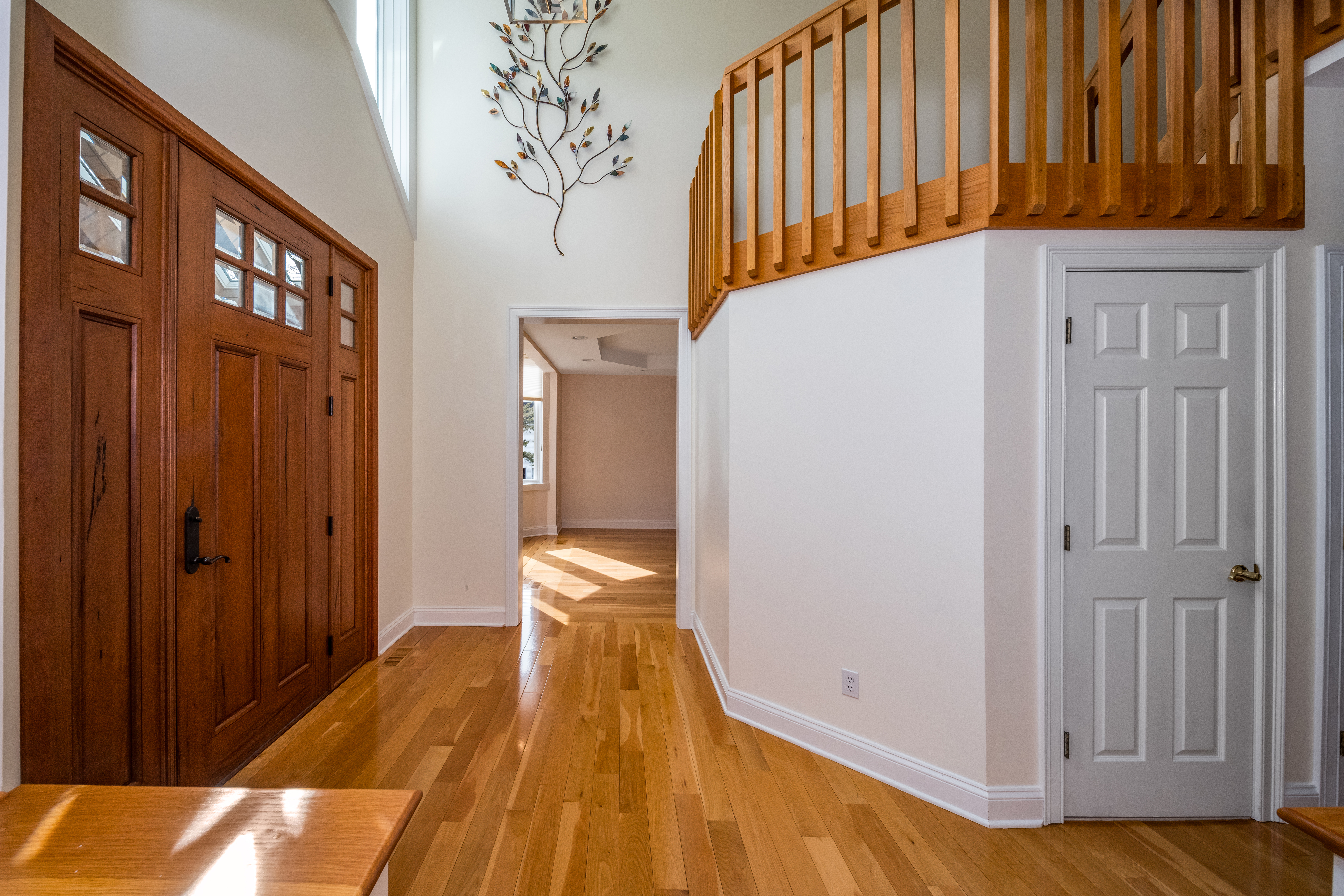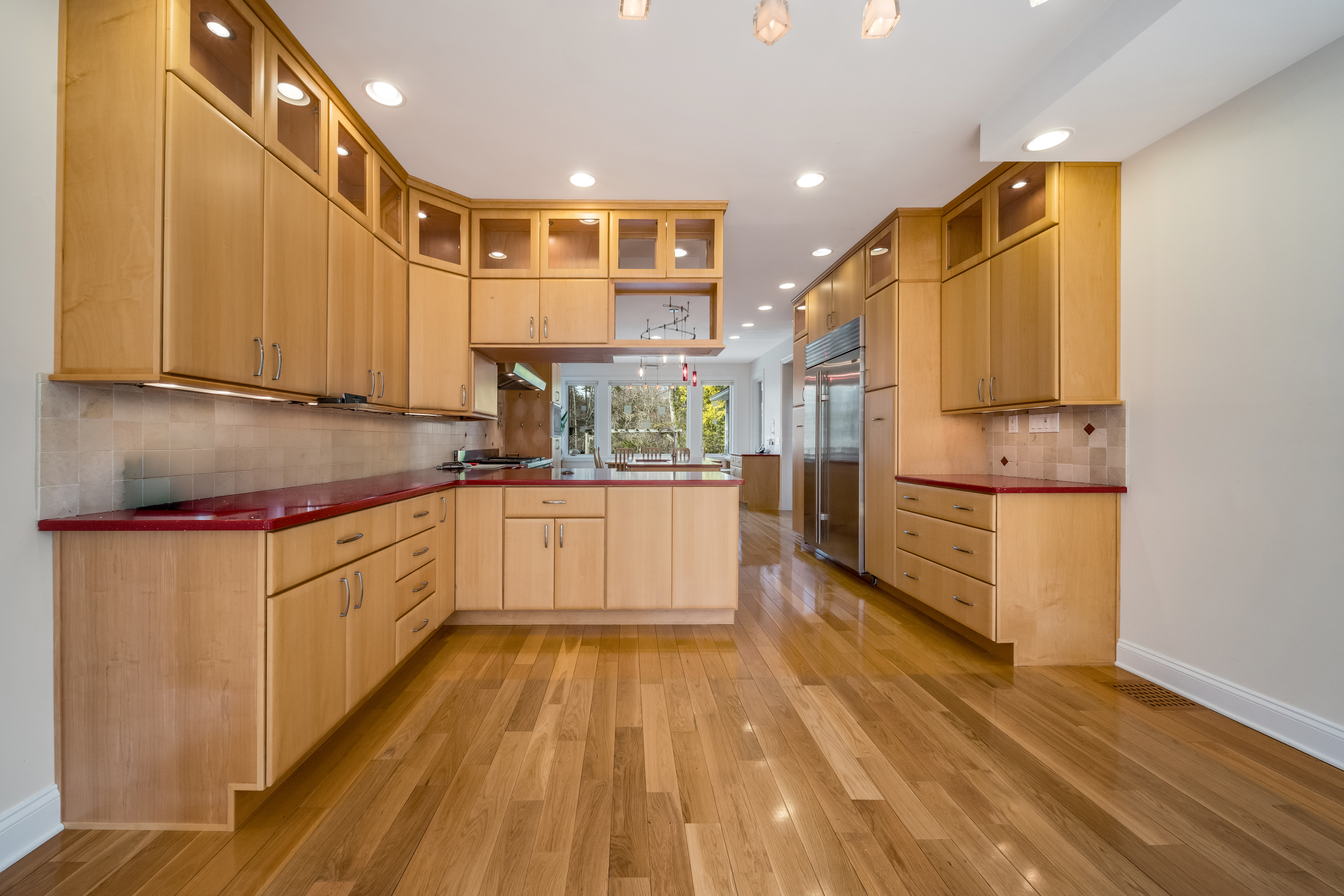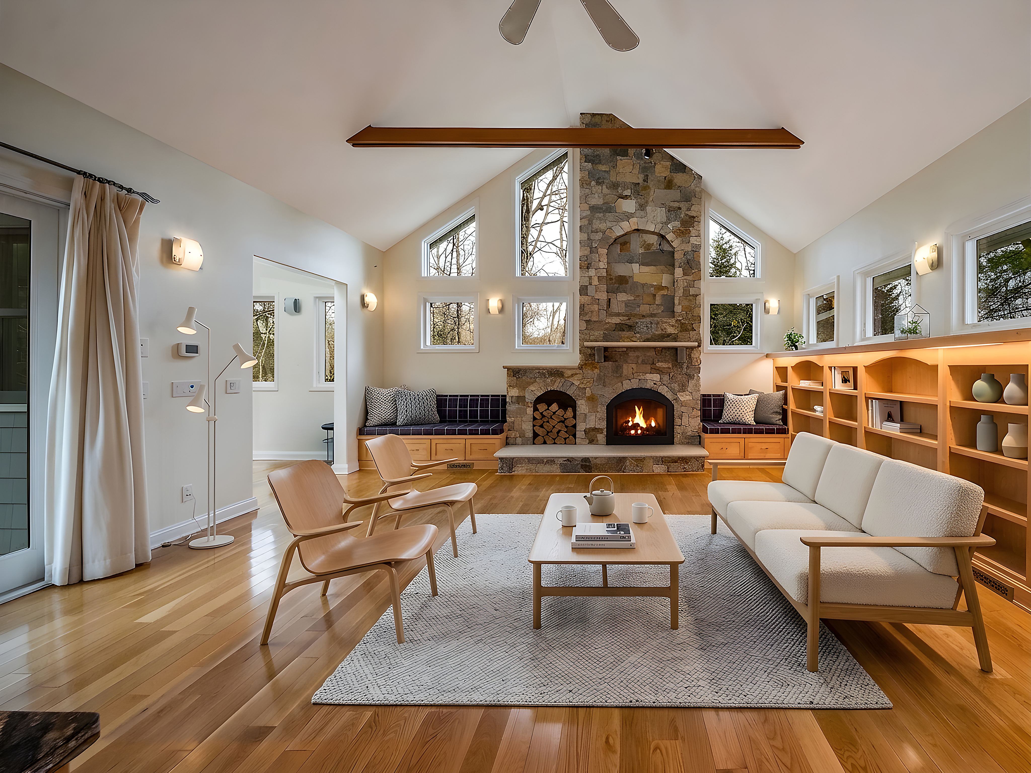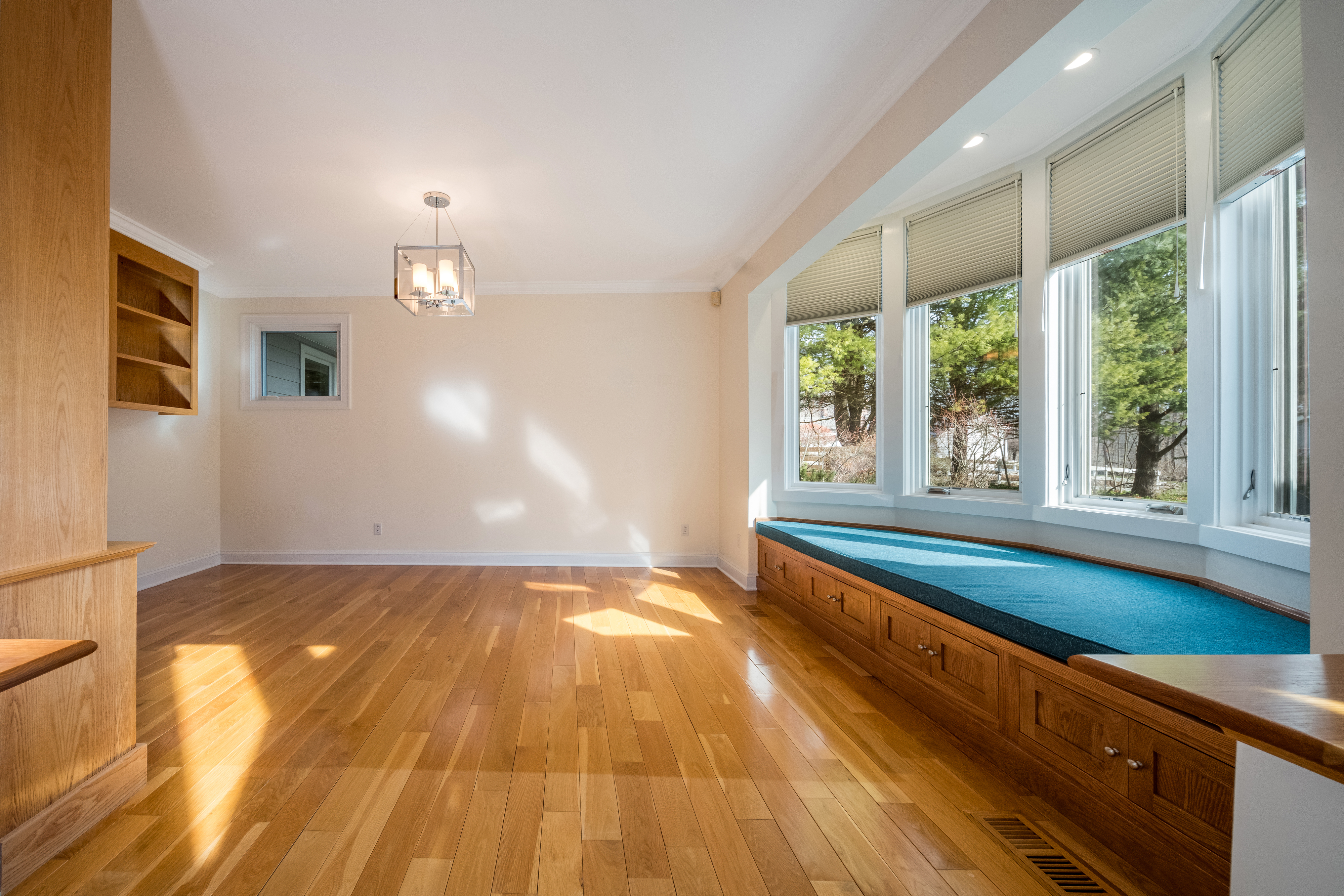 Where gardens flourish and privacy surrounds you, this Moose Hill retreat offers a lifestyle rooted in beauty, nature, and quiet sophistication. Light-filled interior features oversized and bow windows, Hardie cement siding, and Marvin windows throughout. Extraordinary gardens showcase three-season blooms, perennial herbs, berry plantings, fruit trees, irrigation, and a fenced vegetable garden with raised beds. For the green thumb, lower-level grow lights extend the gardening season for early planting. Chef's kitchen with Caesarstone countertops, Wolf appliances, Sub-Zero refrigeration, and built-in dining. Separate family room addition designed as a destination space with wet bar, propane fireplace, and dramatic floor-to-ceiling stone chimney. French doors open to outdoor living areas. Brazilian Tigerwood decking, three-season porch, pool with diving board, and built-in Wolf grill center-ideal for entertaining in a private natural setting with distant skyline views. Primary suite with heated floors and Jacuzzi tub, finished lower-level recreation space, three-bay garage, solar system, and whole-house Generac generator.