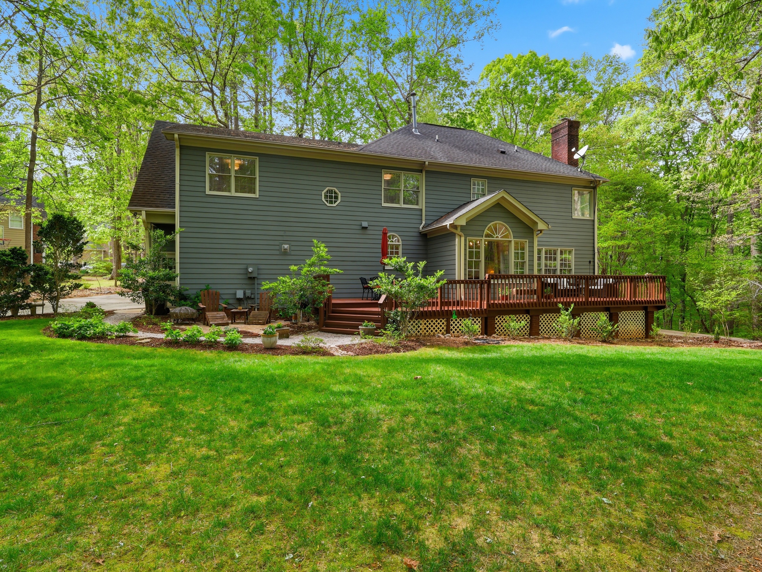 Tucked away at the end of a winding driveway, this traditional brick-front two-story offers the perfect blend of privacy and accessibility on a secluded 1.27-acre homestead. Surrounded by mature trees and natural beauty, this home feels like a peaceful retreat, yet remains just minutes from everything you need.Inside, fresh neutral paint and updated lighting create a warm, move-in-ready atmosphere. A bright, welcoming foyer with 9-foot ceilings sets the tone, leading to a thoughtfully designed layout that includes a main-floor office, ideal for working from home, and an open-concept kitchen and living area perfect for gathering and entertaining. Upstairs, a spacious bonus room offers flexible living space for a media room, playroom, or guest retreat.Start your mornings with coffee at the kitchen table or unwind in the evening on the deck--both overlooking a private, brilliantly green backyard that gently transitions into wooded acreage, offering a tranquil, ever-changing natural backdrop.Enjoy the best of both worlds: peaceful, tucked-away living with convenient access to Highway 50 and Interstate 540 for an easy commute and nearby shopping, dining, and amenities.