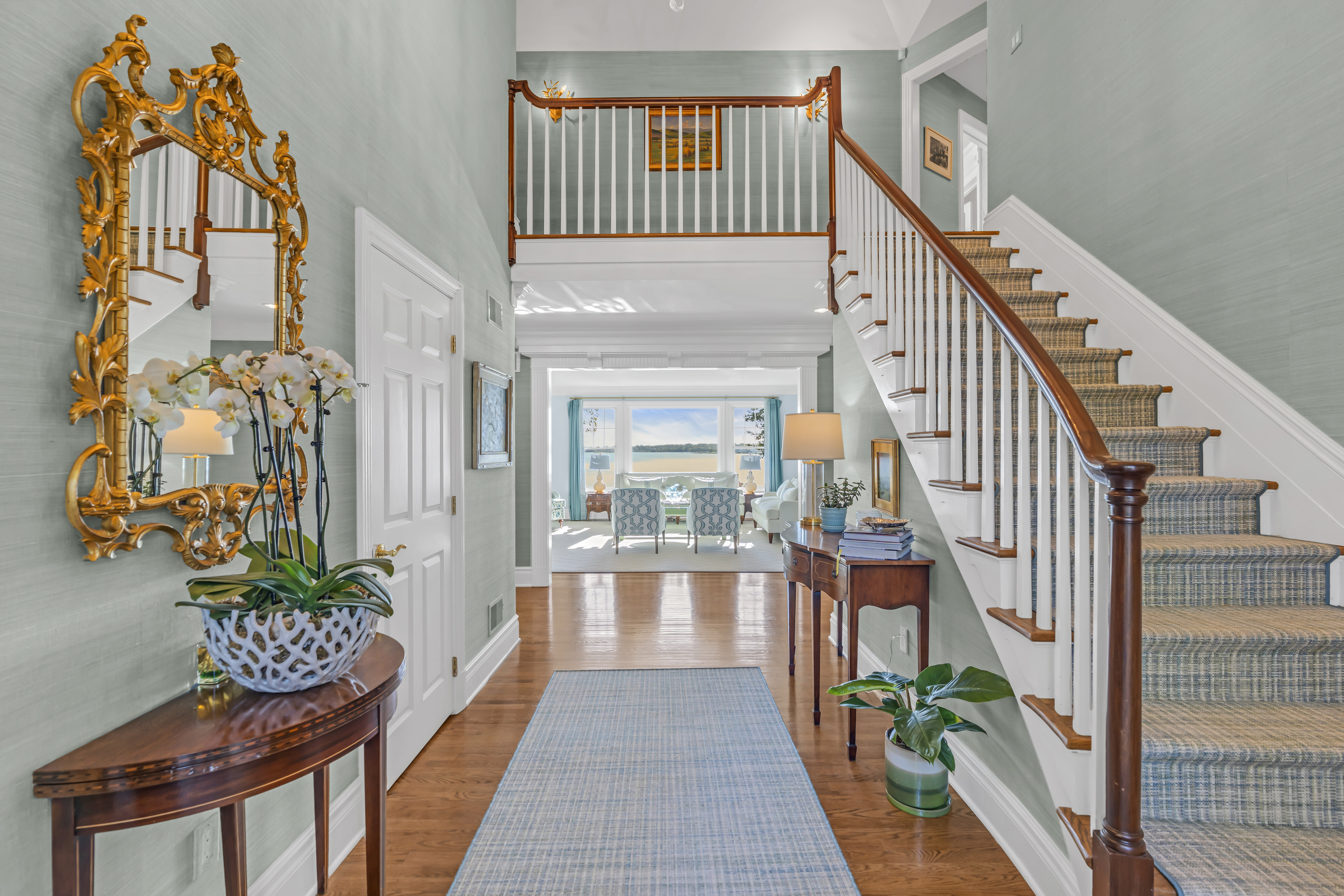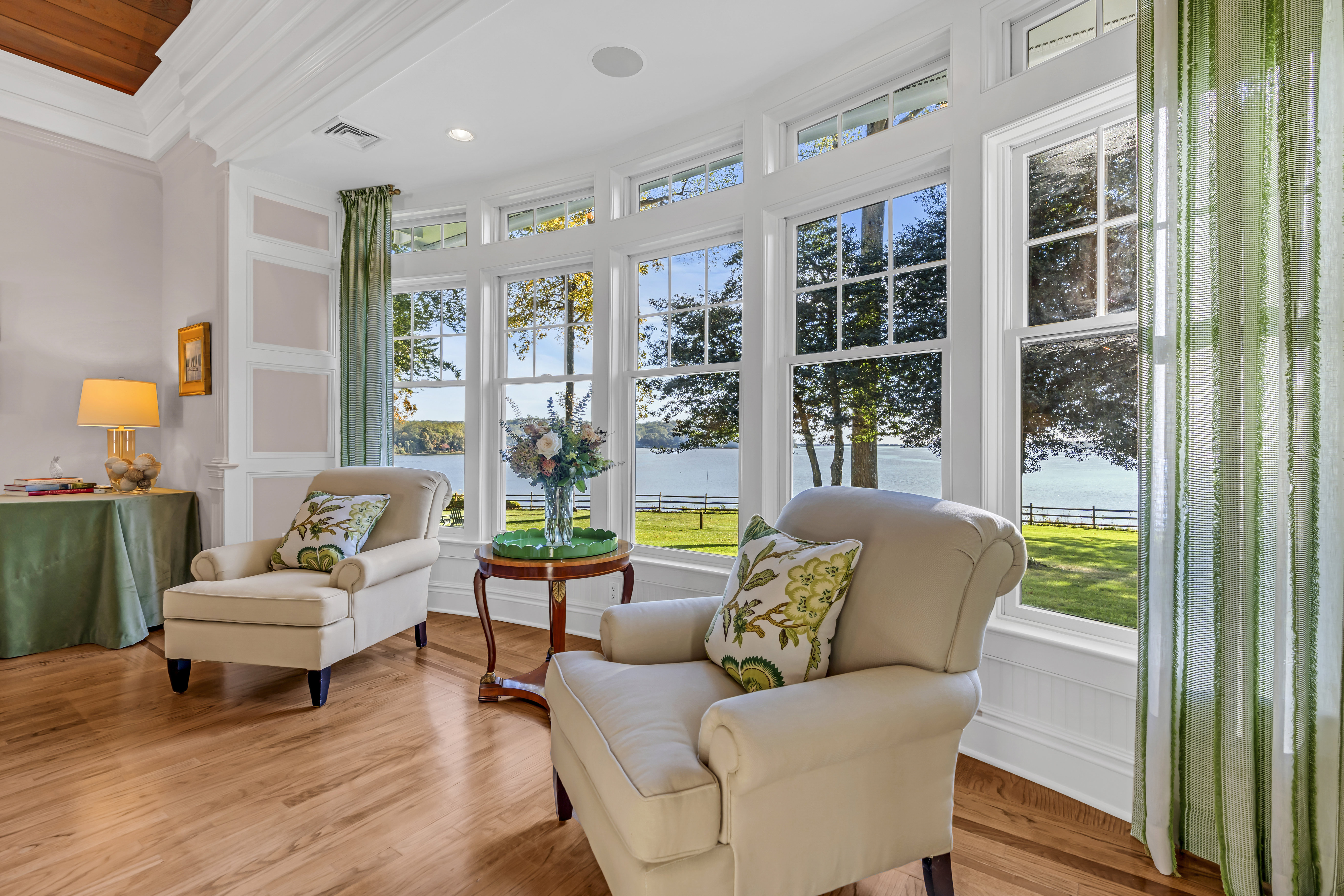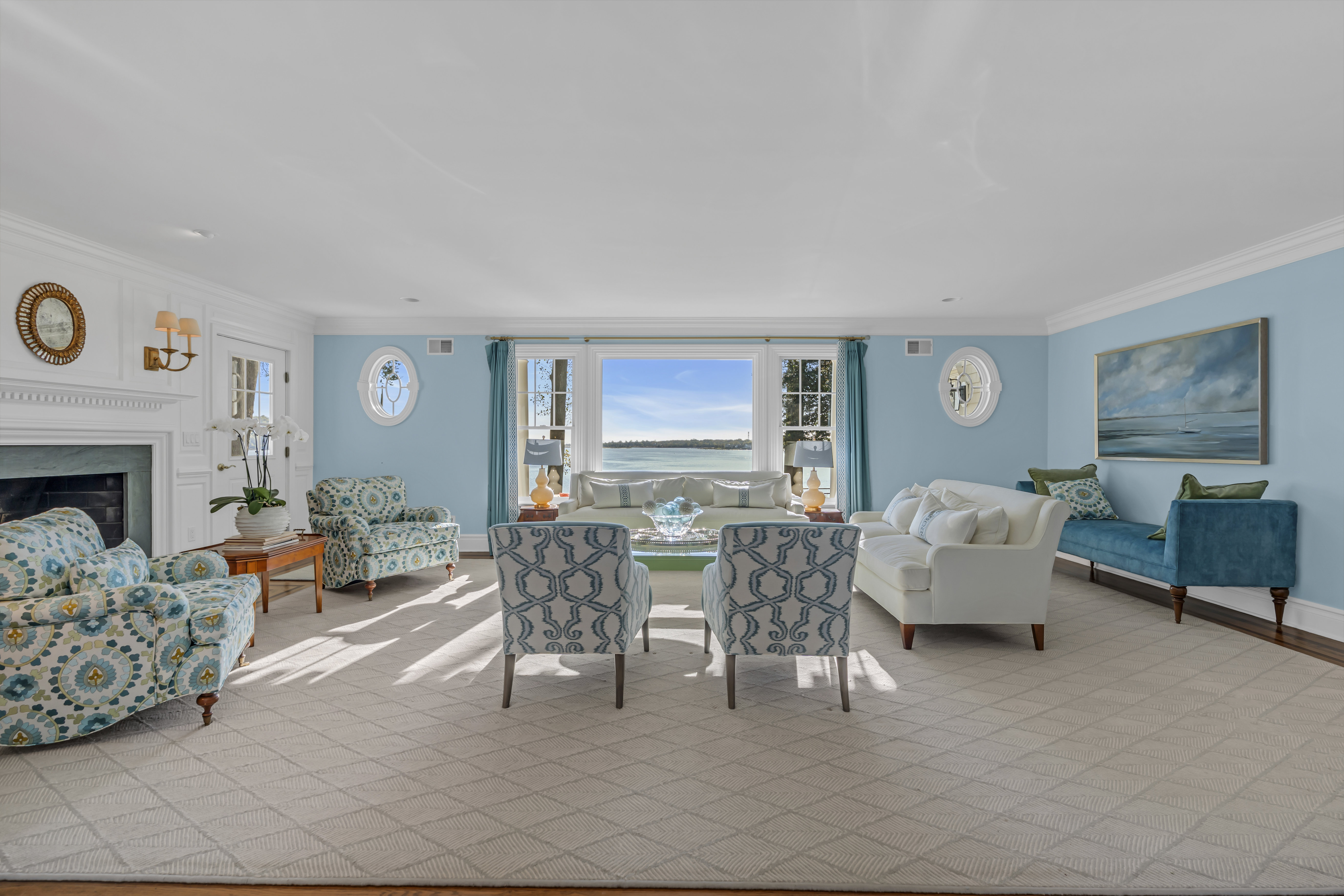 Waterfront Oasis....This pristine custom shore colonial is set on 3.85 lush acres with lovingly tended gardens, secret hideaways and magnificent specimen trees. The property unfolds to a vista with breathtaking 180-degree panoramic views of the Navesink River to the Atlantic Ocean. The open and versatile floor plan includes two potential primary suites; one on the main level with extraordinary views of the river. The inviting great room with its soaring ceiling and gas fireplace is located off the kitchen. The breakfast nook captures the sunrises with its numerous windows. Upstairs, the private primary suite features a balcony, fireplace and luxurious bathroom and office area. Flexible floor plan offers rooms for guests, in-laws, gym or playroom. Riparian grant incl . SF is per tax.