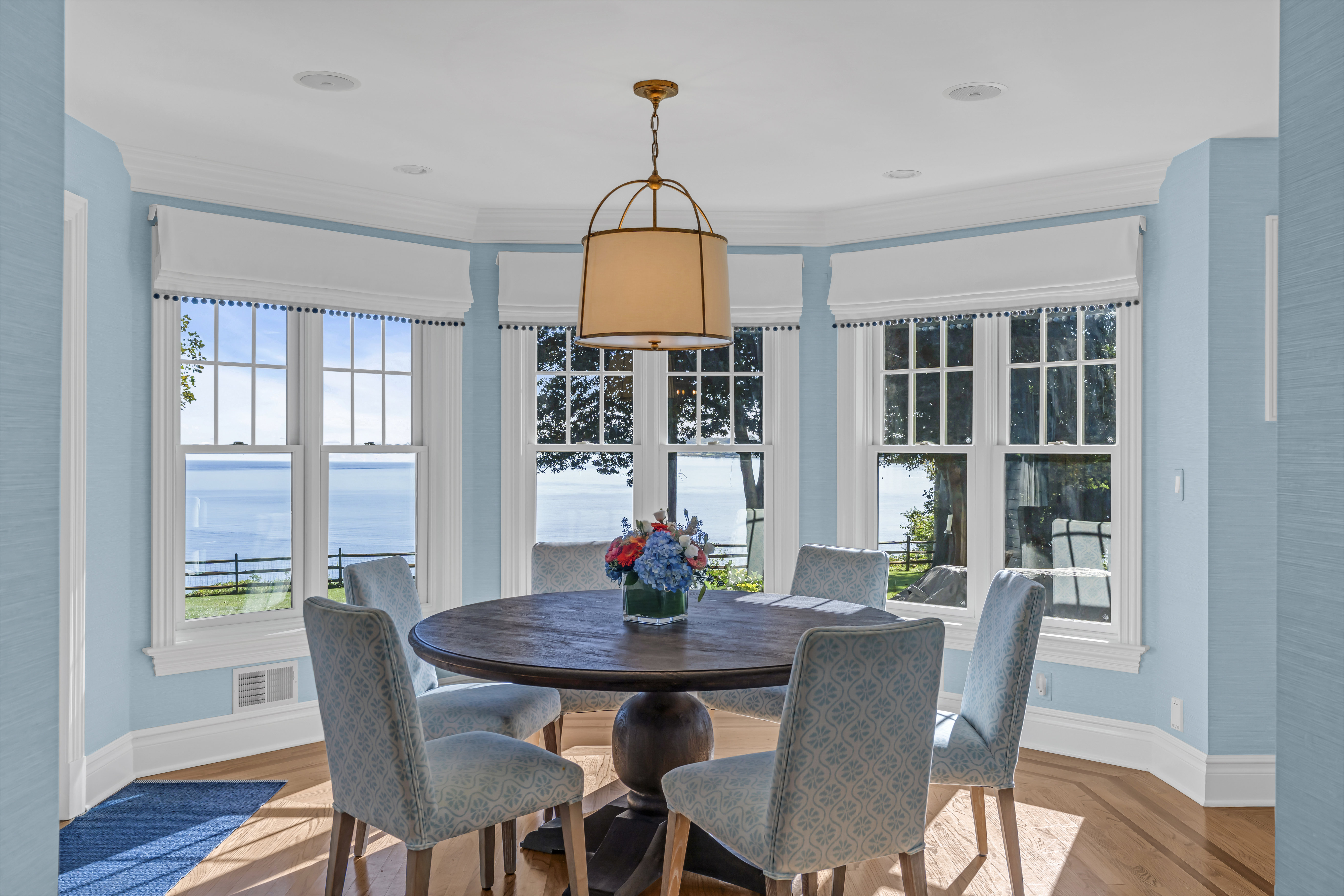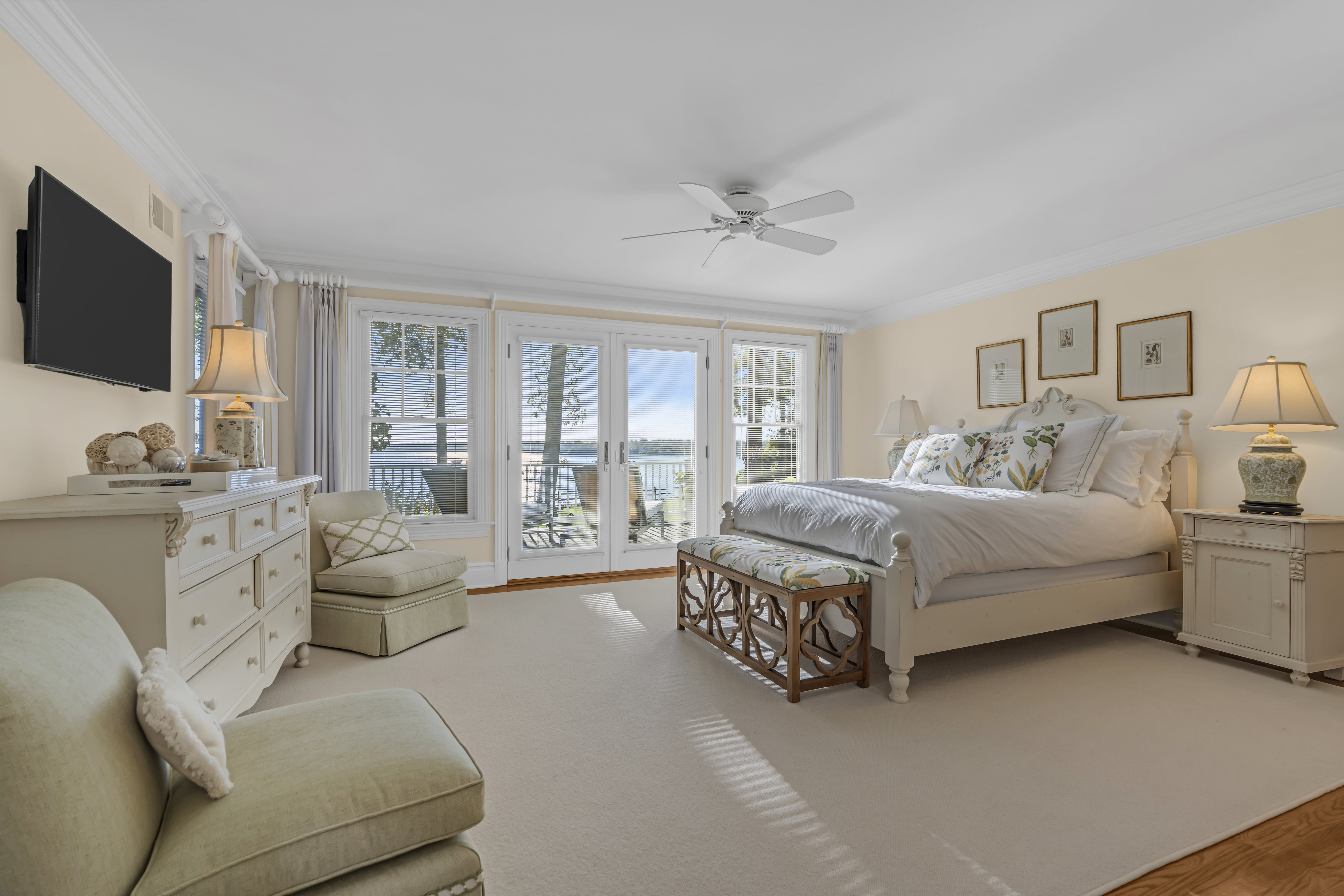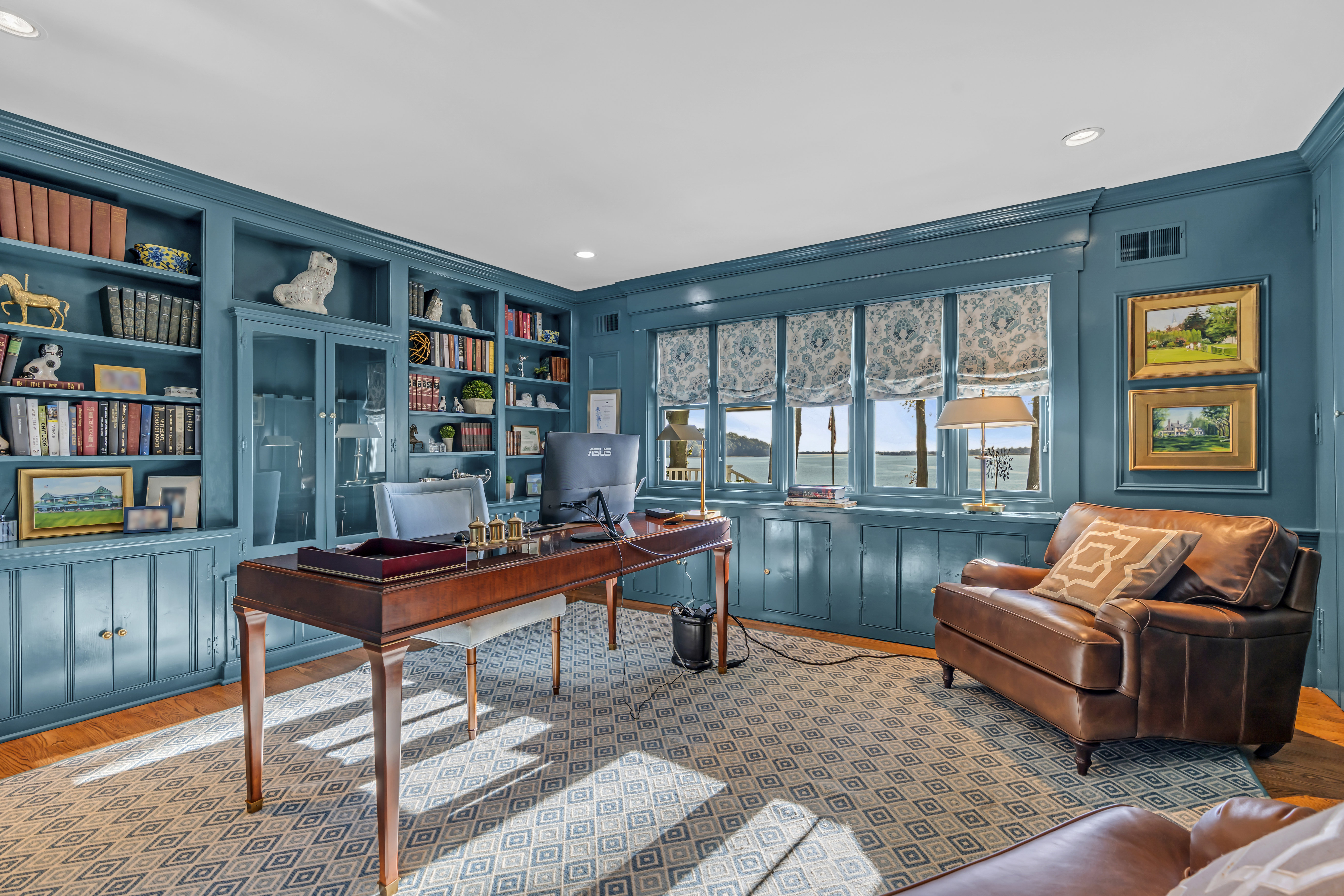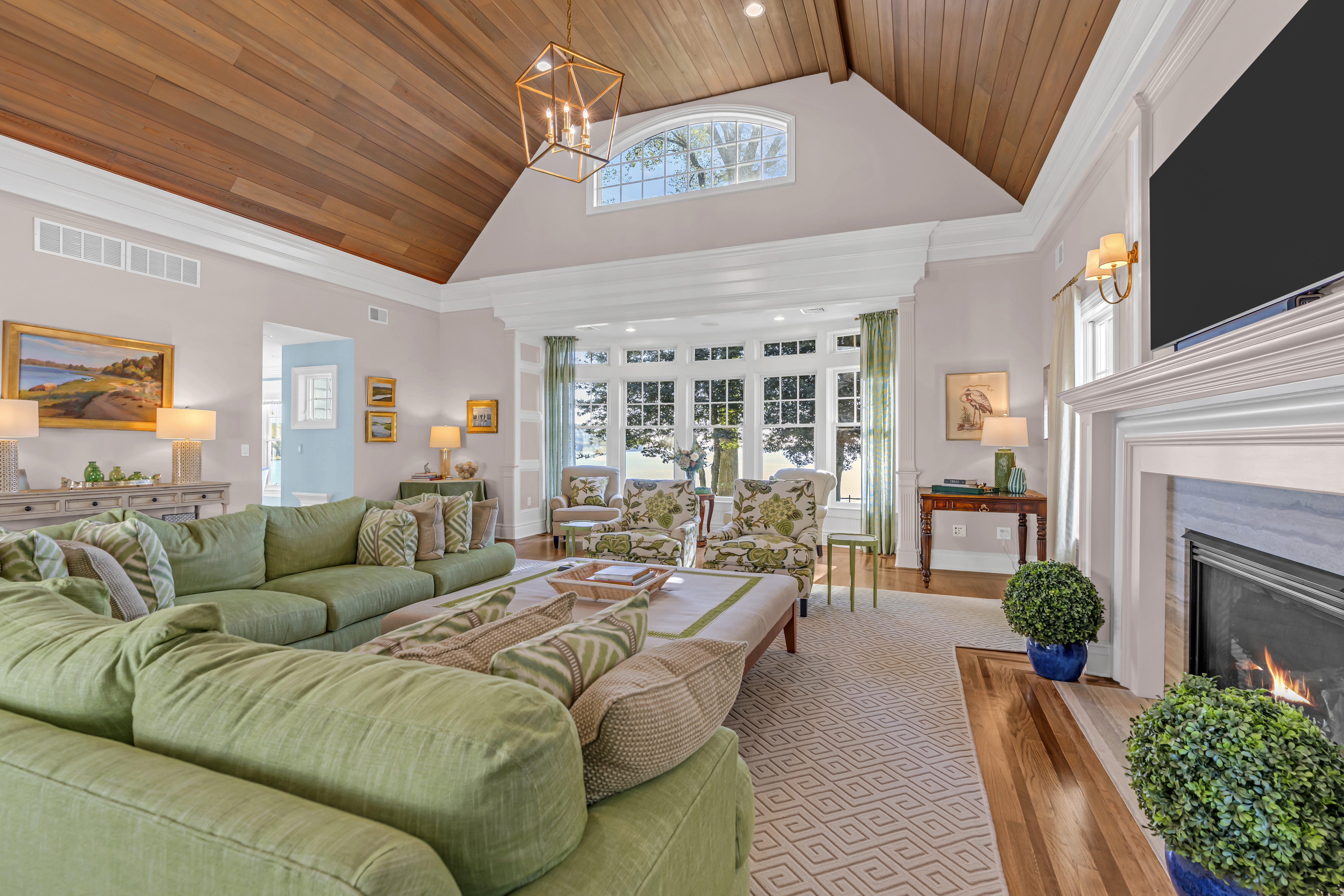 Waterfront Oasis....This pristine custom shore colonial is set on 3.85 lush acres with lovingly tended gardens, secret hideaways and magnificent specimen trees. The property unfolds to a vista with breathtaking 180-degree panoramic views of the Navesink River to the Atlantic Ocean. The open and versatile floor plan includes two potential primary suites; one on the main level with extraordinary views of the river. The inviting great room with its soaring ceiling and gas fireplace is located off the kitchen. The breakfast nook captures the sunrises with its numerous windows. Upstairs, the private primary suite features a balcony, fireplace and luxurious bathroom and office area. Flexible floor plan offers rooms for guests, in-laws, gym or playroom. Riparian grant incl . SF is per tax.