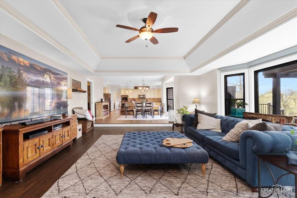 The best of River Run, a beautifully appointed home situated on picturesque .60-acre lot. Offering 4488 square feet of refined living above grade, plus an additional 2105 square feet finished walk-out basement. Kitchen flows into family room creating perfect space for both everyday living and entertaining. Updated kitchen includes newer black stainless steel appliances, quartz countertops, a large center island with ample prep space, seating area and modern lighting. Family room has new rich hardwood flooring, masonry fireplace and large picture window overlooking gorgeous backyard sanctuary with serene creek running through it providing beautiful views every season! Large dining room has a tray ceiling, wainscoting & bay window. Vaulted living room with wood burning fireplace. Main level office has built-in bookshelves. Five bedrooms on 2nd level. Bedrooms 2 & 3 share Jack and Jill Bath. Bedroom 4 has stunning remodeled ensuite bath. Luxurious primary suite includes 2 walk-in closets with California closet custom organization system, new hardwood flooring and thoughtfully designed spa-like renovated bath with soaking tub, dual vanities, heated floors & oversized shower has dual shower heads & rain shower that is temperature controlled via an app. All 2nd level baths have been updated and include heated flooring. Walk-out basement is ideal setting for in-law arrangement, recreation room has fireplace, kitchenette/bar area. Additionally included in basement is large bedroom, full bath, exercise room and oversized storage area. Extensive updates include Roof 2018, Skylights & Leaf guard 2019, composite deck with metal railings 2023, brick paver patio-driveway-walkway 2021, all exterior doors 2019, Anderson windows 2018-19. AC 2020. Too much to list! River Run membership included with sale has Indoor/Outdoor pools, tennis courts, clubhouse with banquet room and work out facility. Neuqua Valley high school district. Close to shopping, dining and expressway!