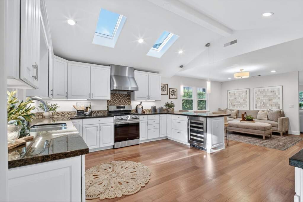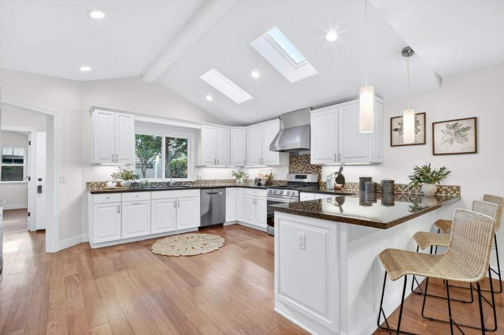 Beautifully rebuilt in 2008, this high-quality home offers large common areas made for entertaining, including a generous living room & great room including an expansive chef's kitchen, family room & dining...this kitchen is a huge standout!! Designed for the serious chef: new gas range & refrigerator, abundant cabinetry, lots of work space, casual bar dining, wine fridge, skylights. Spacious living room with cozy fireplace. Bright & private primary suite is divine, overlooking the backyard with slider that brings the outside in, also a generous walk-in closet. Brand new owned solar- estimate 9-10 months a year free electricity!, dual-pane windows, refinished hardwood floor, new paint in and out, new landscape, convenient inside laundry room. Two good-sized bedrooms & full bath. You will love this floor plan! The outdoor space is delightful - grown your own veggies, privately lounge in the spa, dine al fresco - ready for your backyard fun! With its thoughtful updates, large-scale living spaces & move-in ready appeal, this home presents an exceptional opportunity in a desirable location. Low-traffic street. Centrally located - so close to Santana Row, Downtown Campbell, Pruneyard. Garage can be a great bonus room! Close to BASIS Independent, St. Martin of Tours. This is a true gem