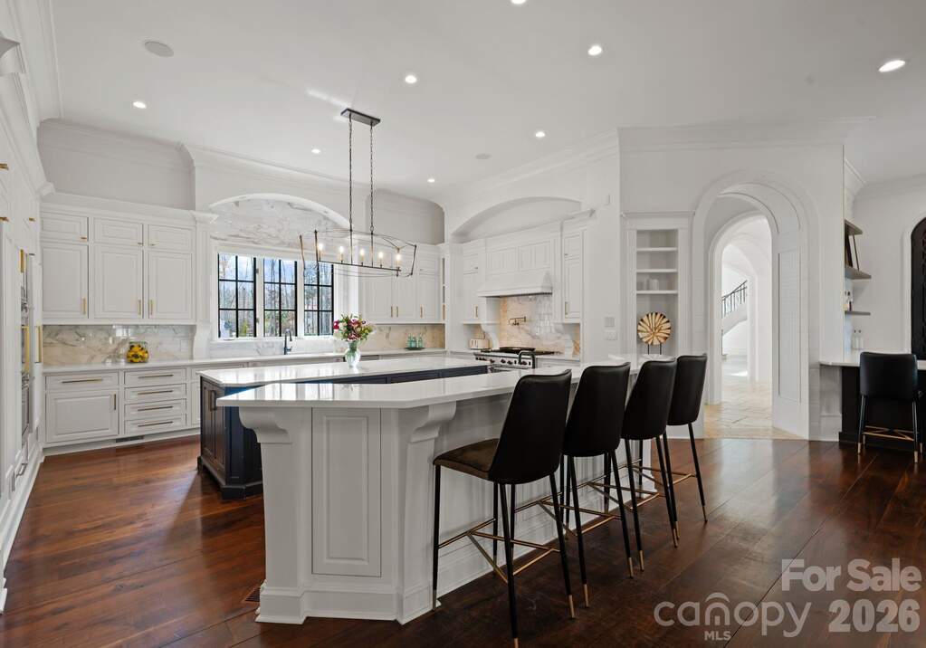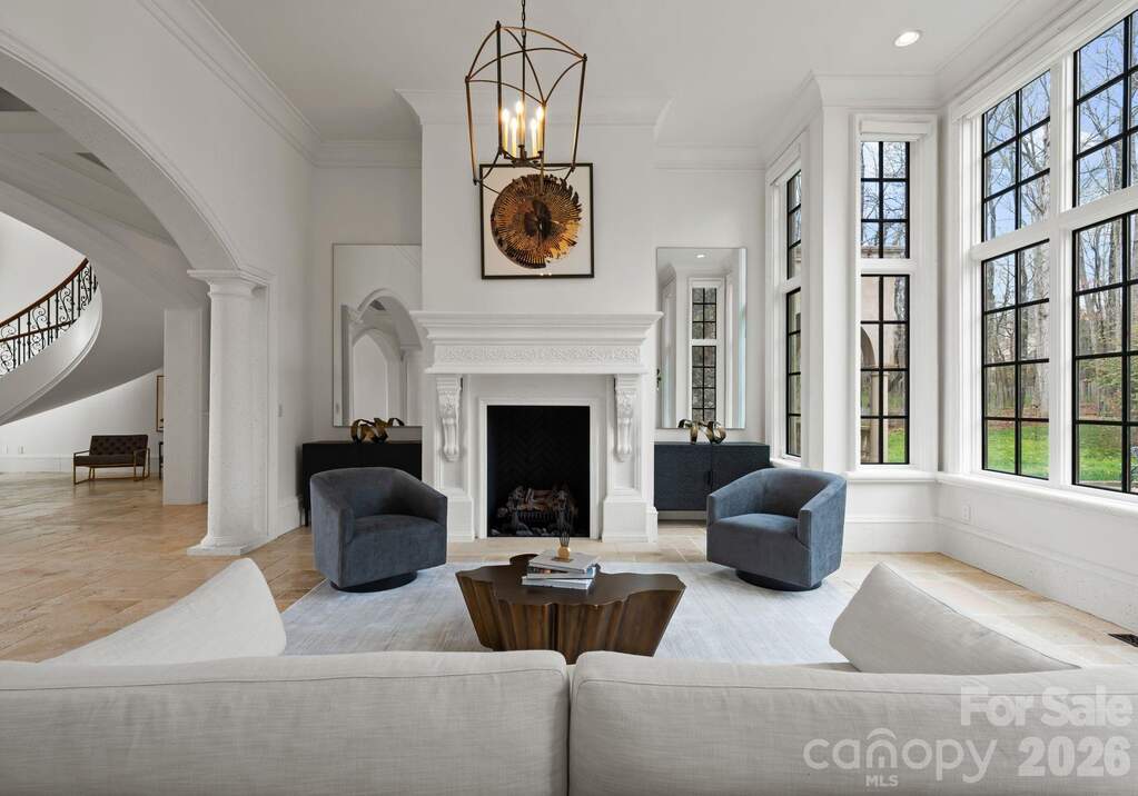 Privately set behind the gates of one of South Charlotte's most distinguished enclaves, this extraordinary custom estate spans nearly five pristine acres, offering a rare sense of scale, seclusion, and timeless elegance. Recently reimagined, the residence is a masterclass in architectural refinement, where exceptional craftsmanship and curated design come together in a truly elevated setting. Designed for both grand entertaining and effortless everyday living, the home features an expansive, flowing layout with multiple gathering spaces. The dramatic two-story great room serves as a stunning focal point, highlighted by a floor-to-ceiling stone fireplace and exposed wood beams, while an elegant formal sitting room showcases sweeping views of the pool through walls of windows. A spacious family and billiard room with private patio access provides an inviting retreat for more relaxed gatherings. At the heart of the home, the gourmet chef's kitchen is both functional and beautifully appointed, featuring a large center island, top-tier appliances, updated designer lighting and backsplash, and two generous walk-in pantries. The spacious main-level primary suite offers a private sanctuary with direct access to the outdoor living spaces and dual walk-in closets. The recently renovated en-suite makes you feel like you just stepped into the spa. A richly detailed office with custom millwork and built-ins provides a refined and functional workspace. The upstairs secondary bedrooms are all generously sized with en-suites. A media room, bonus/play-room and upstairs laundry completes the upper level. Outdoors, the property transforms into a true retreat, with a resort-style pool and spa, expansive grounds, and exceptional privacy. The pool house includes a sauna, steam shower, and fitness area, while a separate carriage house with a studio apartment offers ideal accommodations for guests or extended stays. The second living quarters square footage is combined for the pool house and apartment. A three-car attached garage and additional two-car detached garage provide ample space for vehicles and storage. Located within the coveted Marvin school district, and just minutes from shopping, restaurants and the airport, this is a rare offering-an estate of distinction designed for those who value privacy, scale, and uncompromising quality. Fireplaces are being sold as, no known problems. Qualified Buyers Only, must submit Proof of Funds or Banker Approval Letter. Listing agent to accompany, 24 hour advance notice required.