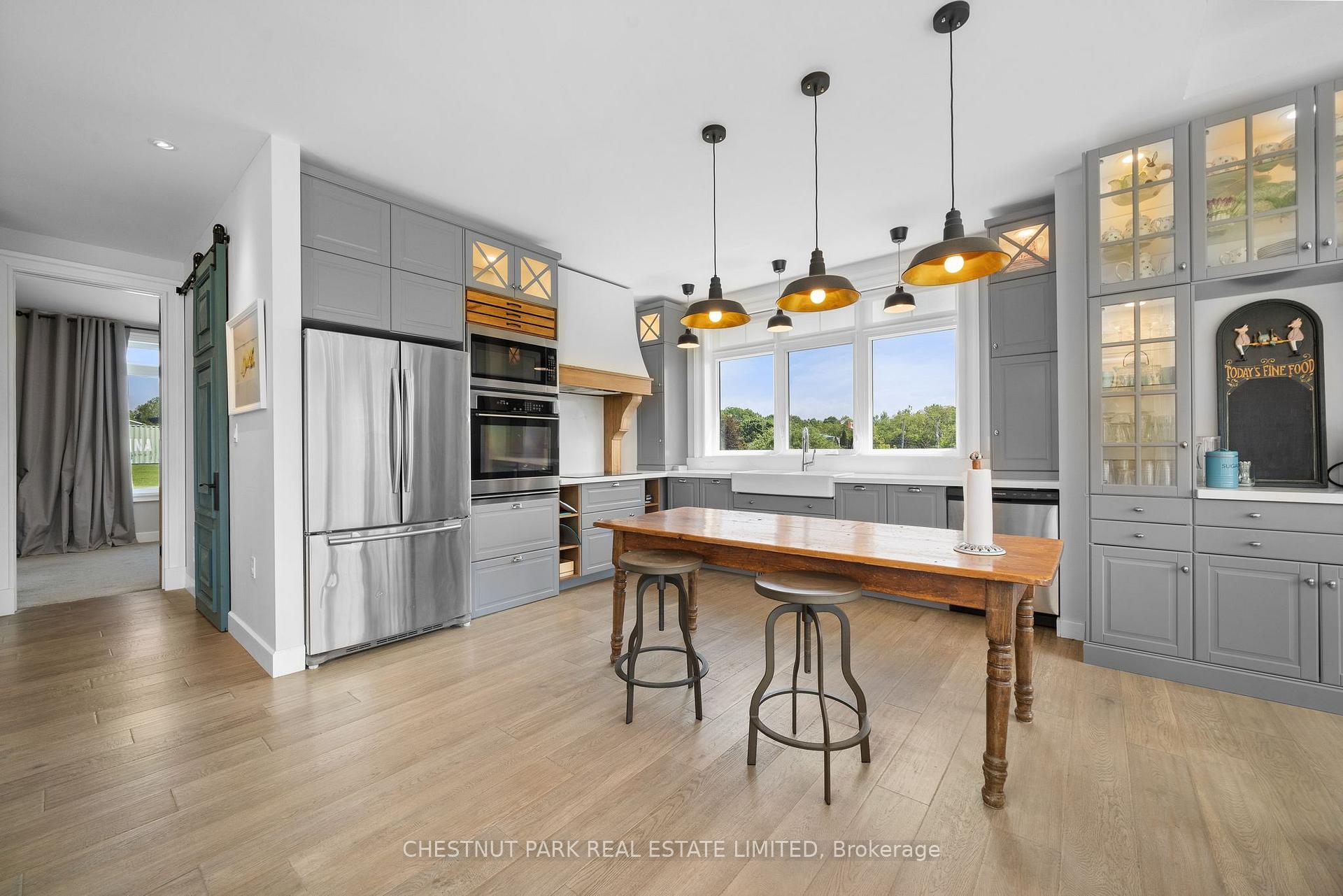 Set across 17 acres with frontage on both County Road 10 and St Philip Street in Milford, this exceptional estate offers a masterfully integrated lifestyle in Prince Edward County. The residence unfolds across a thoughtfully designed layout, revealing interiors rich in craftsmanship and natural textures, stone, wood, light, each space balancing elegance with ease. A chefs kitchen anchors the main level, flanked by a south facing sunlit dining area and living room framed by floor-to-ceiling sliding door with a commanding fireplace of hand-hewn stone. Seamless transitions guide you to the expansive deck and screened sunroom off the primary, ideal for quiet evenings or vibrant gatherings under the stars. With four bedrooms, including a serene primary suite and a fully separate in-law suite on the lower level, the home accommodates multi-generational living or versatile hosting. Downstairs, walkouts lead to private sitting areas and meandering trails to immerse yourself in nature. Secluded behind the home a landscaped yard and pool deck welcome you to a summer haven surrounded by wide skies and views that stretch beyond the treeline. Multiple garages, a standalone bunkie, gazebo and an areas for a workshop/studio offer space for both retreat and creation. Zoning potential invites future opportunity to be explored, while the Owner Occupied STA suite adds option for those seeking a blended lifestyle investment if not solely for personal family-friend use. This property is both a sanctuary and a launchpad for everything The County has to offer. The canvas is expansive, what unfolds here is yours to define. All Apliances in Main Kitchen, All Electrical Light Fixtures, Drapes in Spare Bedroom, Blinds in Sunroom, Brown Couch in Apartment, Dishwasher in Apartment, Built-In Bench Mattress in Apartment, TV in Apartment Living Room, Heater in Garage, Wood Dining Table, Pool Equipment, Bunkie Fridge, Anitque Buck Saw (Outdoor), 2 Blue Pyramid Planter