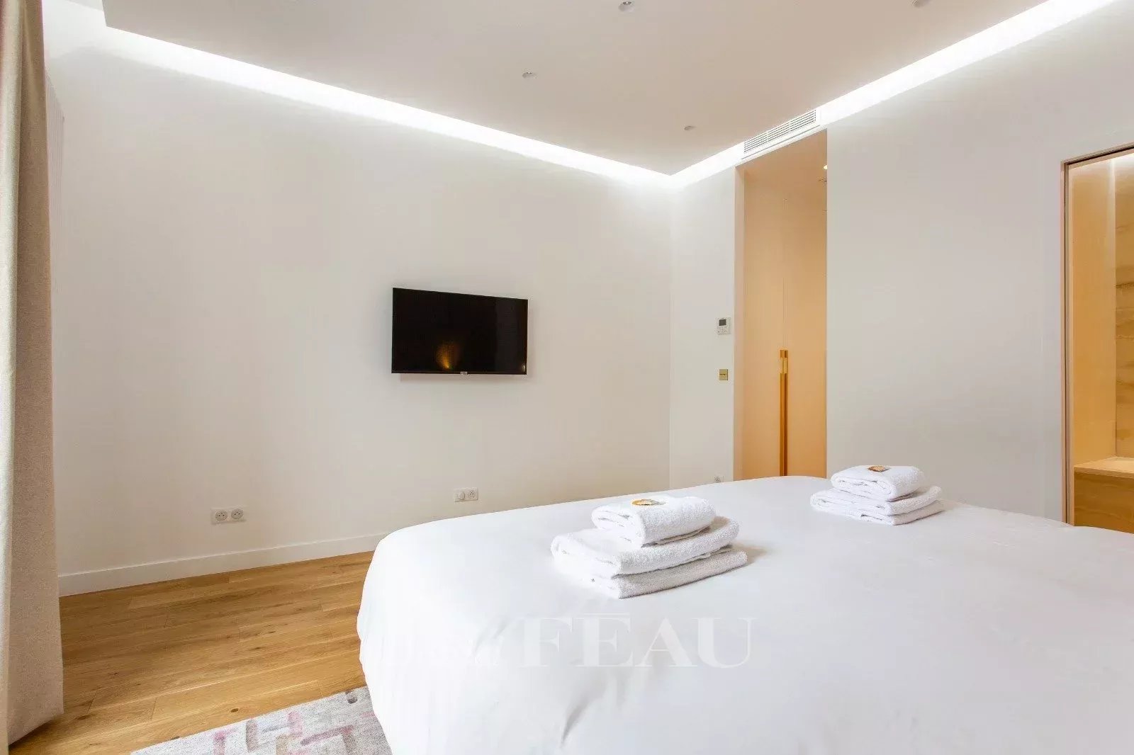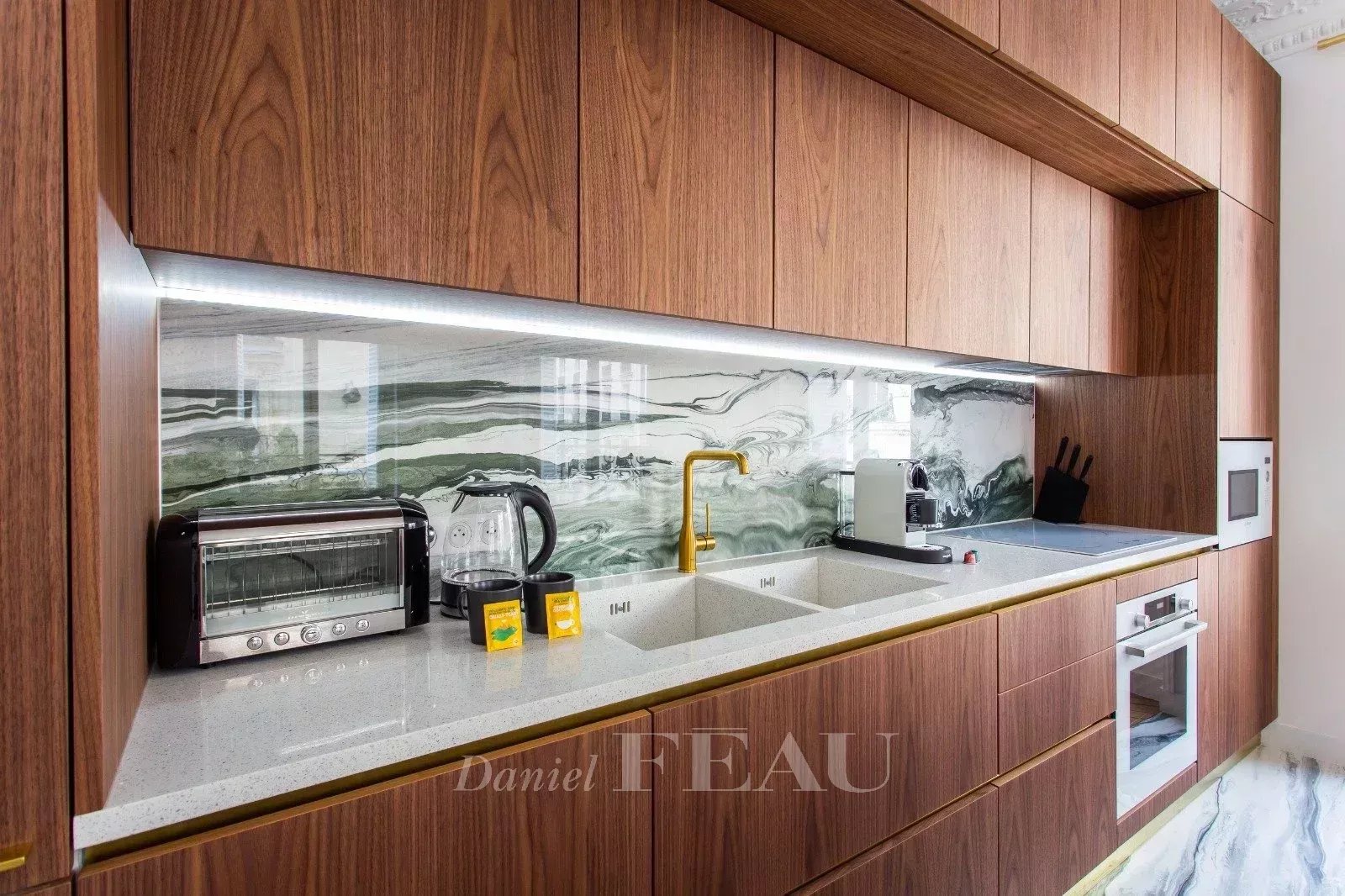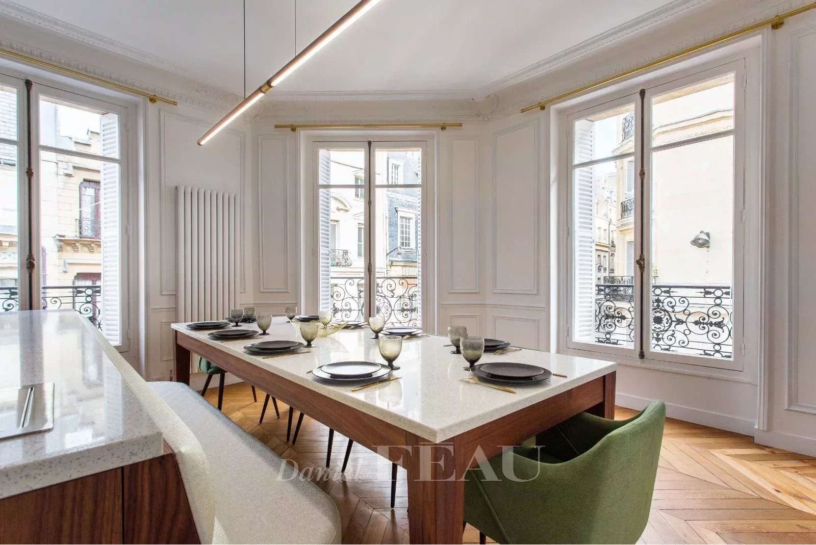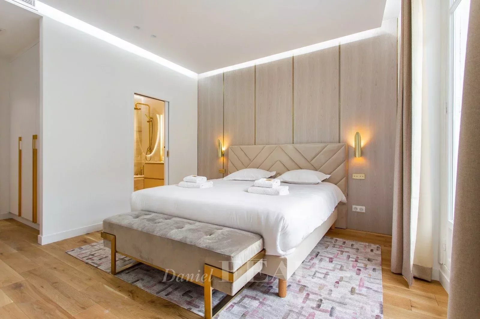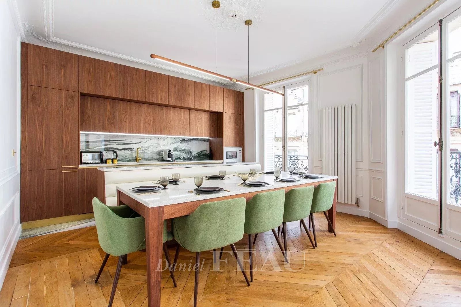 This superb furnished apartment is on the second floor of a fine late 19th century building located in a peaceful street a stone's throw from leafy Parc Monceau. Renovated and as new, it includes a living/reception room opening onto a balcony, a fully equipped kitchen, a dining room, a master suite with a bathroom and dressing room also opening onto a balcony, a bedroom with an adjacent shower room, two further bedrooms (one also opening onto a balcony), and a shower room. Ample fitted storage space. Cellar. The building has a caretaker and is equipped with a lift.