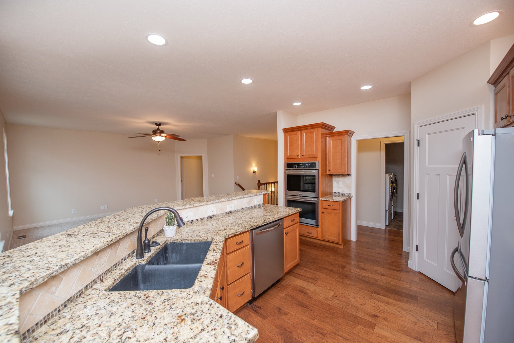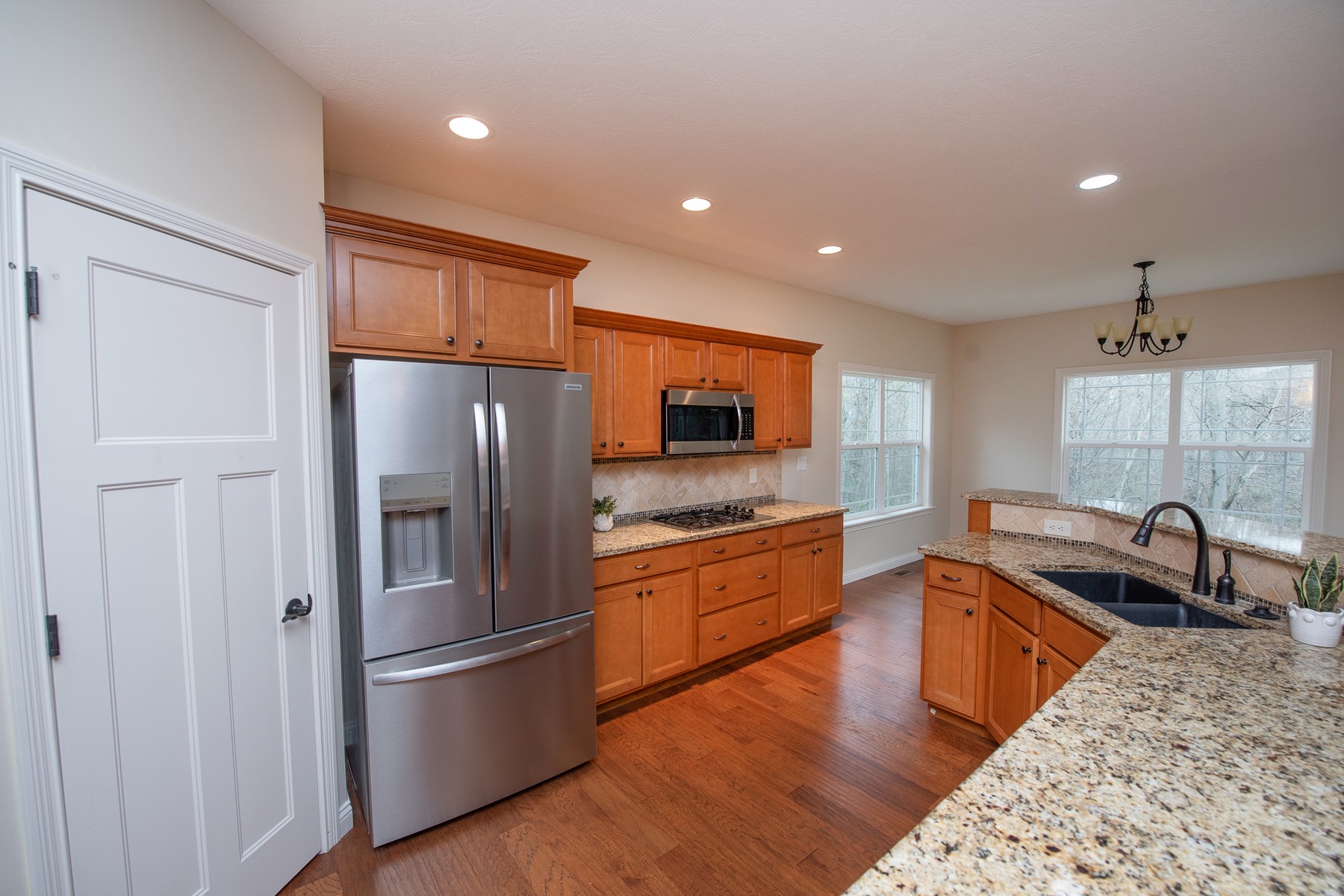 Beautifully maintained ranch in Shawnee Ridge, set on a spacious 0.75-acre lot with serene wooded views. This move-in ready, like-new home offers over 2,300 sq ft on the main level plus a full basement, combining thoughtful design with exceptional functionality. The open-concept layout features rich hardwood flooring and a stunning kitchen with granite countertops, stainless steel appliances, and a large center island that flows seamlessly into the living and dining areas—perfect for everyday living and entertaining. The main level includes a spacious primary suite with an en suite bath, two additional bedrooms connected by a Jack-and-Jill bathroom, and two separate den/office spaces, offering flexibility for work-from-home, hobbies, or additional living areas. The finished lower level expands your living space with a large rec room, family room, fourth bedroom, and full bath—ideal for guests or multi-generational living. Step outside to a generous back deck overlooking peaceful wooded surroundings, creating a private retreat for relaxing or entertaining. Additional highlights include a geothermal heating system, double water heaters, 3-car garage, and fresh paint throughout the entire home—truly move-in ready. Located in the TSC/Harrison school district and just minutes from West Lafayette amenities, this home offers the perfect balance of comfort, efficiency, and space.
