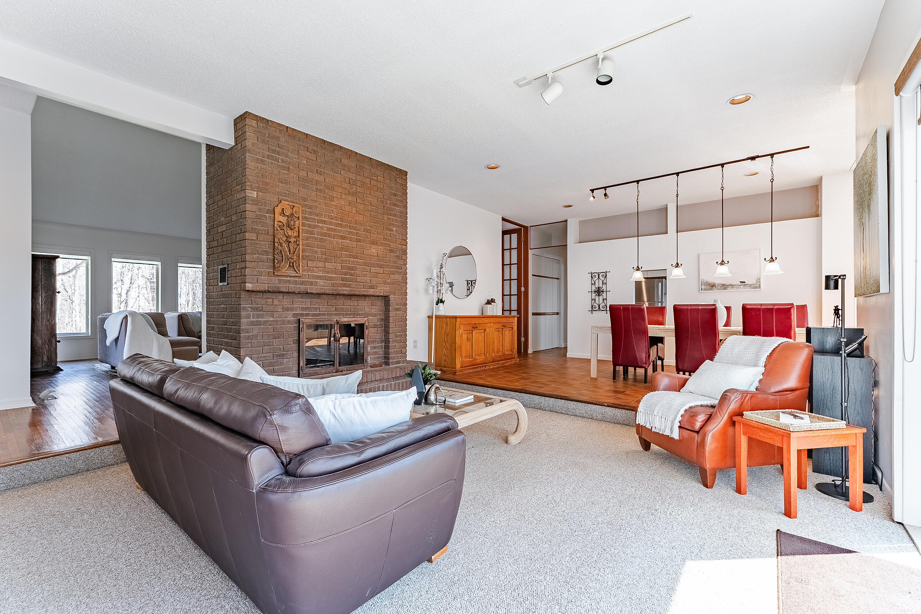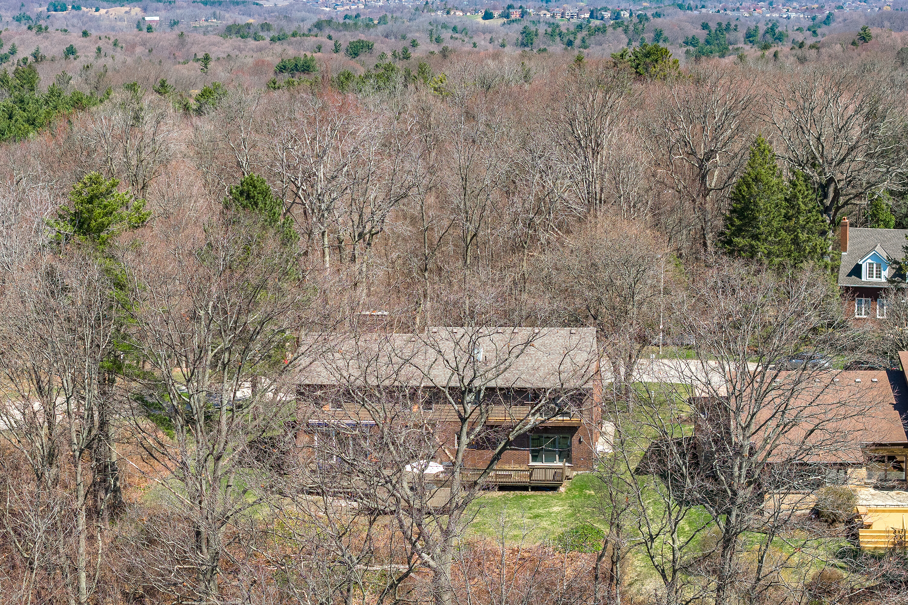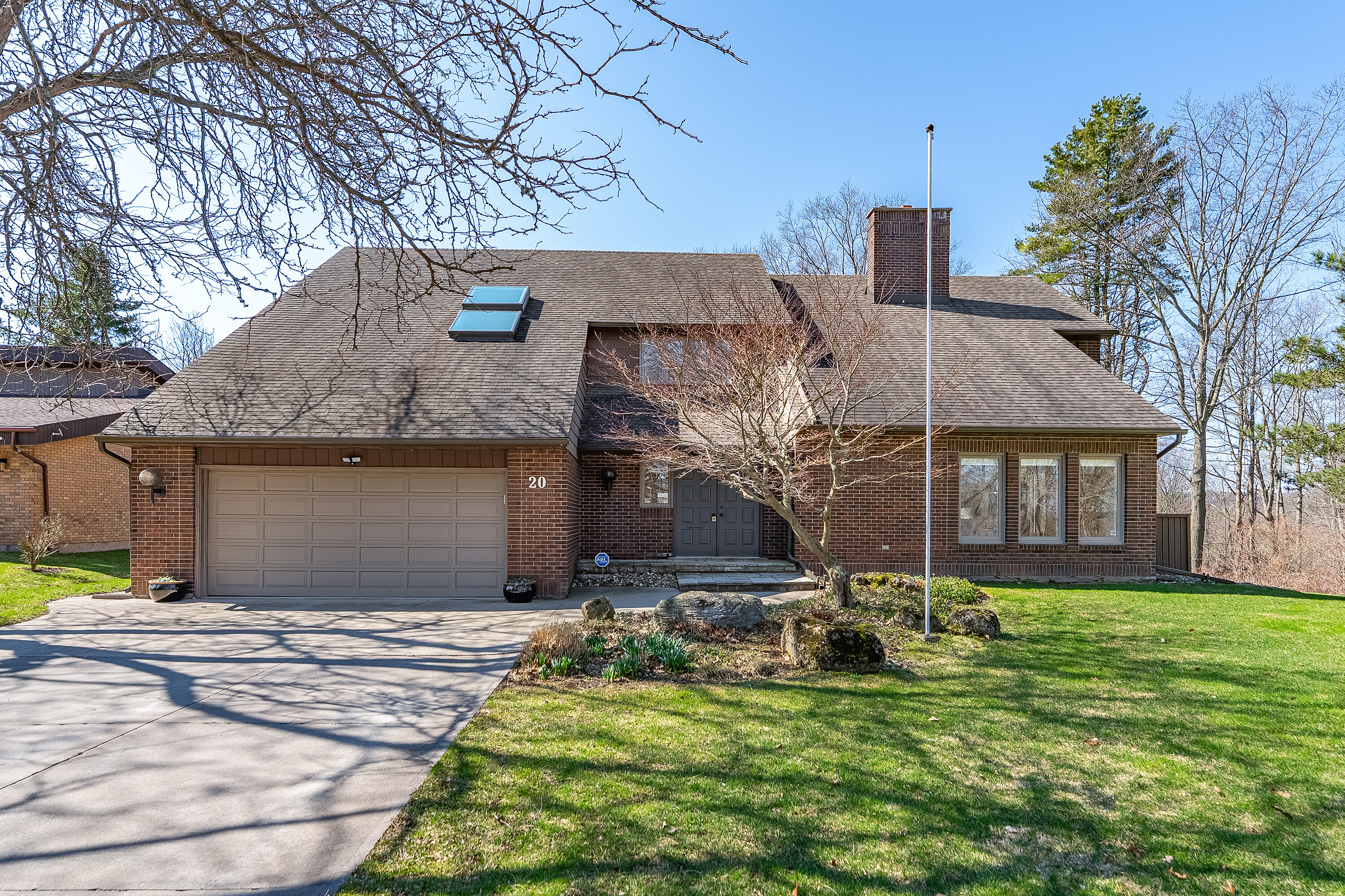 Thoughtfully curated interiors by acclaimed architect Trevor Garwood-Jones blend privacy, quiet, and rare opportunity with serene natural surroundings. Welcome to 20 Ridgeview Court, a custom-built, one-owner residence envisioned ahead of its time and crafted to reflect the lifestyle expectations of today’s discerning buyer. Tucked away on a quiet cul-de-sac and embraced by protected conservation land and the scenic Bruce Trail, this exceptional home offers an extraordinary sense of seclusion, with only one neighbouring property. From the moment you arrive, the setting speaks for itself, tranquil, private, and immersed in a Muskoka-like landscape where nature is truly at your doorstep. Spanning approximately 3,591 square feet, the home unfolds with purpose and intention, offering five spacious bedrooms and three well-appointed bathrooms designed for both comfortable family living and effortless entertaining. Vaulted ceilings elevate the principal living areas, creating remarkable volume and architectural character, while expansive windows invite the outdoors in, framing serene, tree-lined views and filling the home with natural light. The layout is thoughtfully designed to balance openness with function, offering well-defined living spaces ideal for both everyday living and hosting. A warm two-way gas fireplace adds comfort and ambience, creating a seamless connection between the living and family rooms and enhancing the inviting atmosphere. Every detail reflects a forward-thinking vision that remains highly relevant for modern lifestyles. Step outside and experience a true sanctuary. Surrounded by mature greenery, scenic trails, and protected conservation, this is a property where privacy is not simply a feature, but a way of life. Enjoy direct access to nature, peaceful morning walks along the Bruce Trail, and the calming atmosphere typically reserved for cottage country, all from the comfort of home.