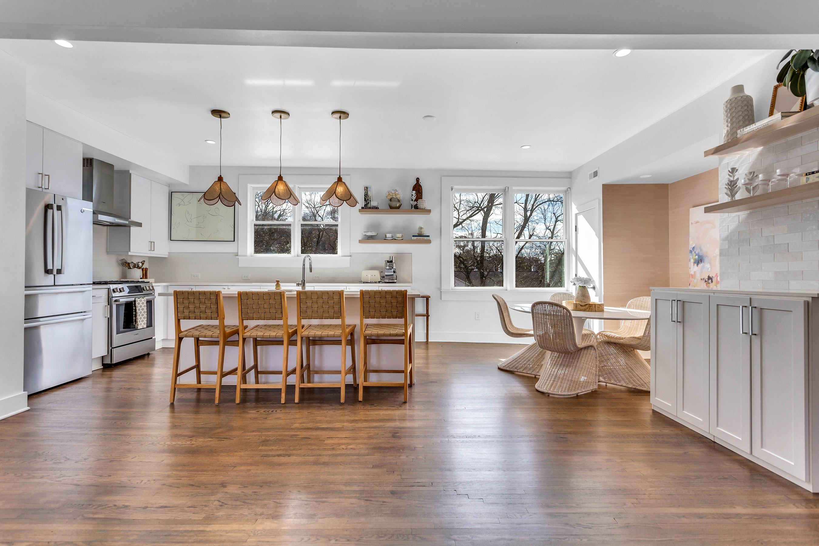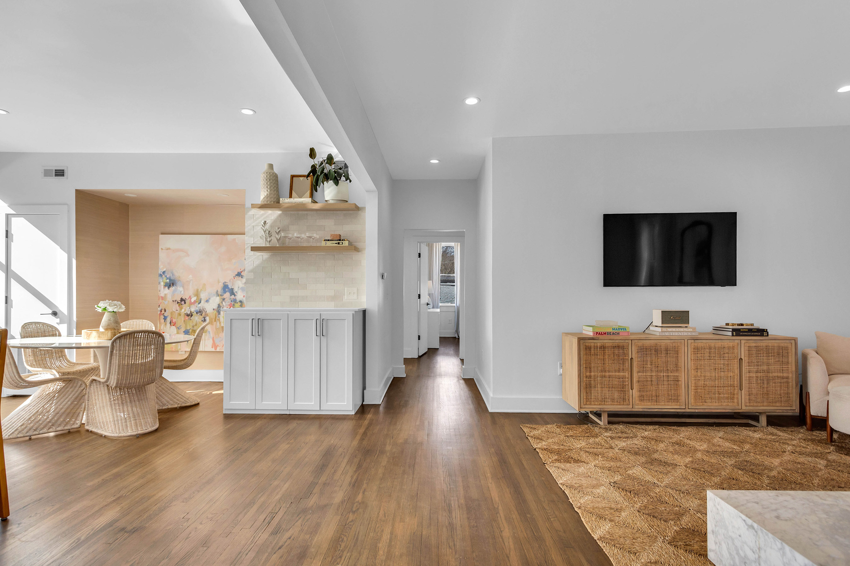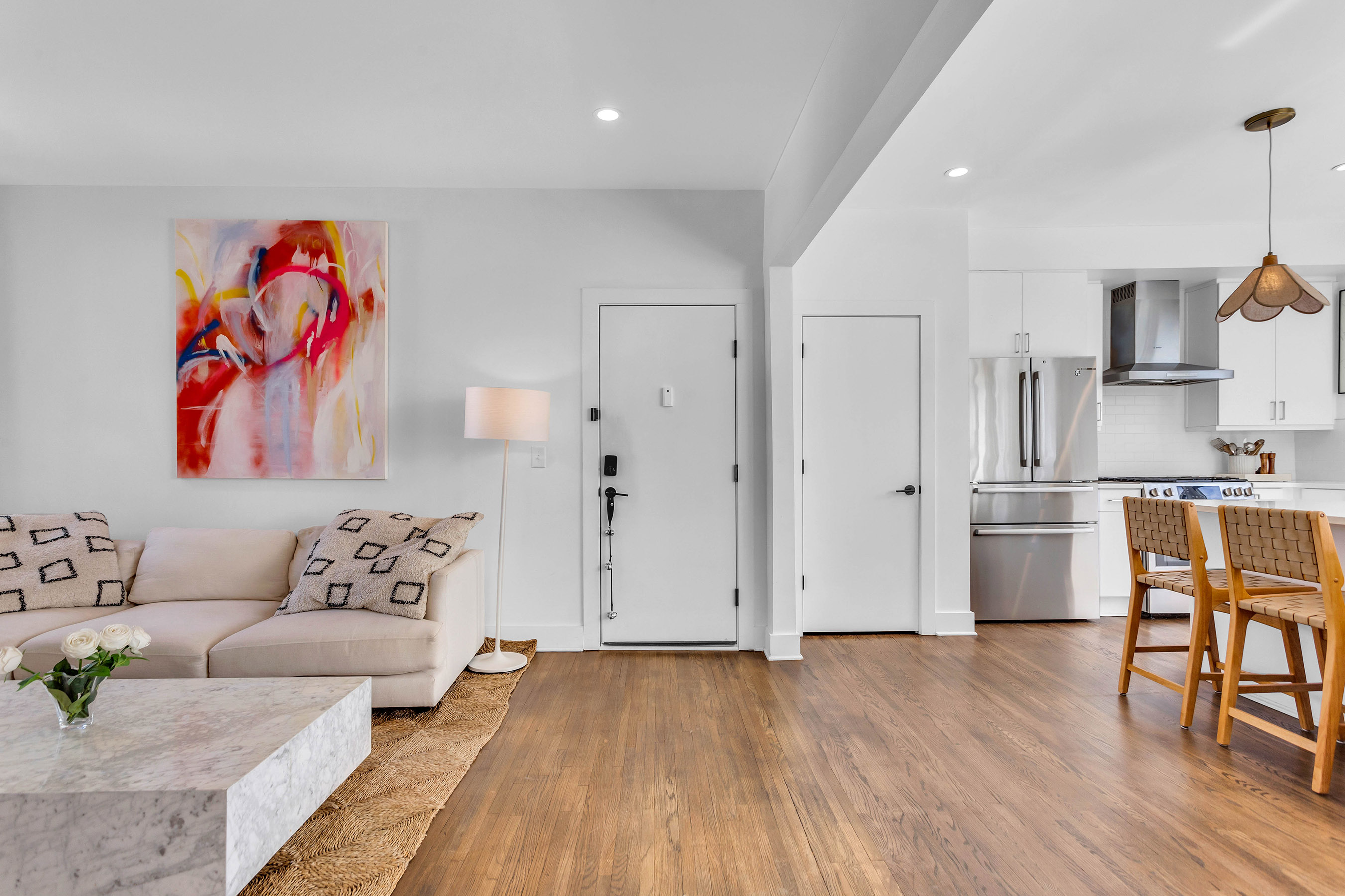 Stylish South Buckhead Top Floor Rental with Upscale Features and Prime Location. Available for Lease June 12th, this well-appointed two bedroom, two bath residence offers a distinctive blend of comfort, design, and functionality in one of Atlanta's most desirable neighborhoods. Located on a quiet, dead-end street in South Buckhead, the home combines a peaceful atmosphere with close proximity to shopping, dining, and the Beltline. The interior showcases a modern open layout with sleek hardwood flooring throughout. The living and dining areas connect effortlessly to a chef-friendly kitchen complete with quartz countertops, stainless steel appliances, a gas range, and a custom tile backsplash. A convenient pantry offers additional storage without compromising style. One bedroom has been thoughtfully customized into a spacious office, ideal for remote work and daily living. The primary suite includes a beautifully updated bathroom and ample closet space. Both bathrooms feature premium finishes and contemporary fixtures. Natural light fills this corner unit, and a private screened-in porch offers a serene spot to relax with views of the landscaped courtyard. Additional highlights include in-unit laundry, unique lighting accents, and two reserved parking spaces, one covered and one uncovered - an uncommon convenience in the city. Outside, residents can enjoy a shared courtyard perfect for outdoor dining, socializing, or spending time with pets. The building offers easy guest parking and quick access to major local attractions while maintaining a residential feel. Easy move-in ready for June 12th with option of being furnished or unfurnished. Enjoy the comfort and convenience in one of Atlanta's most vibrant areas.
