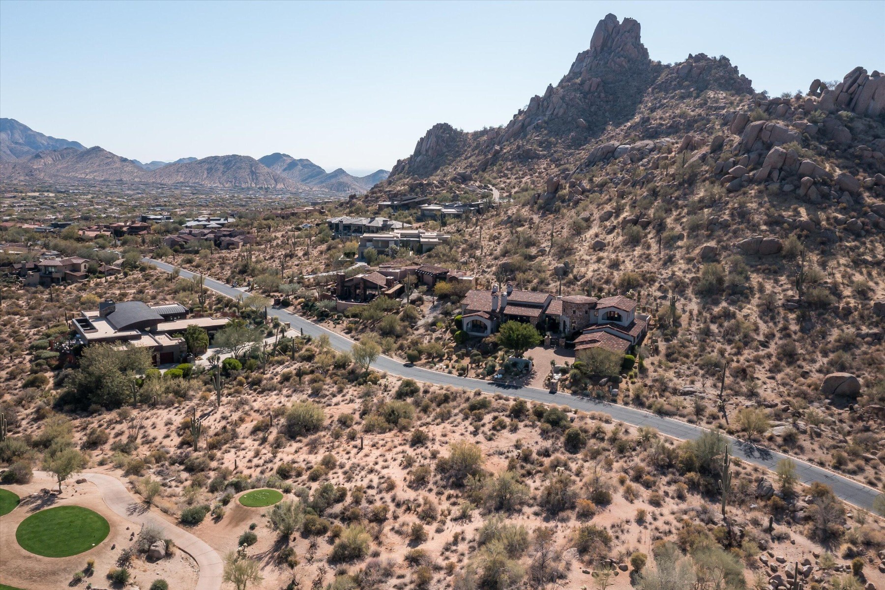 One of the last remaining golf course lots within Estancia, this.93 ac lot (with a generous building envelope of 19,389 SqFt) on the loth hole of the renowned Tom Fazio designed golf course offers a rare opportunity to build your dream home on one of the only remaining golf course lots in one of the most coveted communities in the country. Architectural plans by Drewett Works are included and showcase a modern, yet timeless design, tailored to blend seamlessly with the natural surroundings while offering luxury and sophistication. This quiet cul-de-sac, this site offers stunning views of the golf course, up close views of Pinnacle Peak and surrounding boulder outcroppings, picturesque views of the Four Peaks, and Troon Mountain creating an unparalleled living experience.