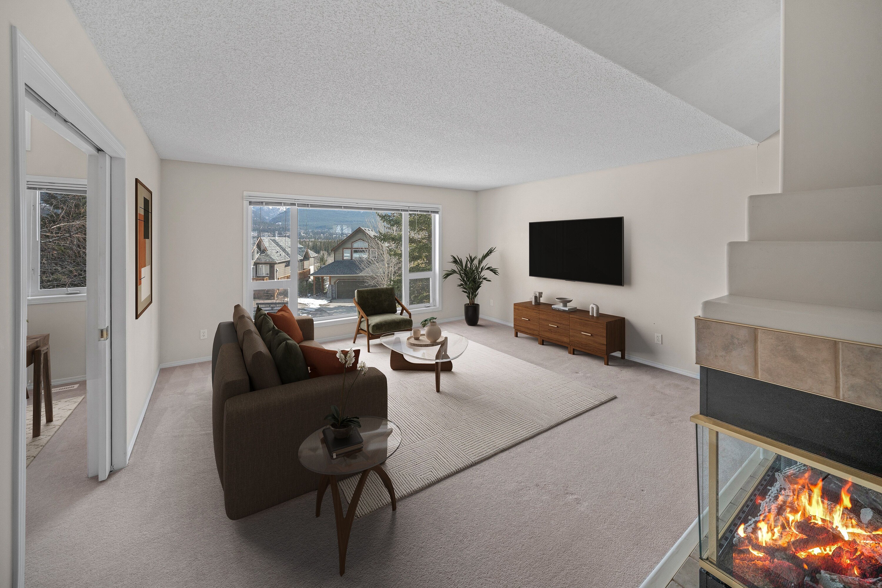 Welcome to 136 Morris, a charming half-duplex in Canmore that showcases timeless character in a beautiful mountain setting. Offering 2,194 sq ft of living space across two levels, this 3-bedroom, 3-bathroom home provides both comfort and functionality. The main living area is warm and inviting, featuring a 3-sided gas fireplace that adds ambiance and definition to the space. Expansive windows flood the home with natural light and frame truly spectacular mountain views, including Grotto Mountain, Lady Macdonald, and the Fairholme Range—creating a stunning backdrop for everyday living. The spacious primary bedroom offers a peaceful retreat, complete with a private ensuite featuring a relaxing soaker tub. Two additional bedrooms and bathrooms provide ample space for family, guests, or a home office. Recent updates include a newly built deck in 2024—perfect for enjoying morning coffee or evening sunsets while taking in the breathtaking alpine scenery. An attached double garage adds convenience and extra storage for all your mountain gear. Located in a desirable Canmore neighbourhood, this home offers easy access to scenic walking and biking trails, parks, and the Bow River, while still being just minutes from downtown shops, cafes, and amenities. Whether you're seeking a full-time residence or a mountain getaway, this property delivers an exceptional lifestyle surrounded by nature. Experience the best of Canmore living at 136 Morris.