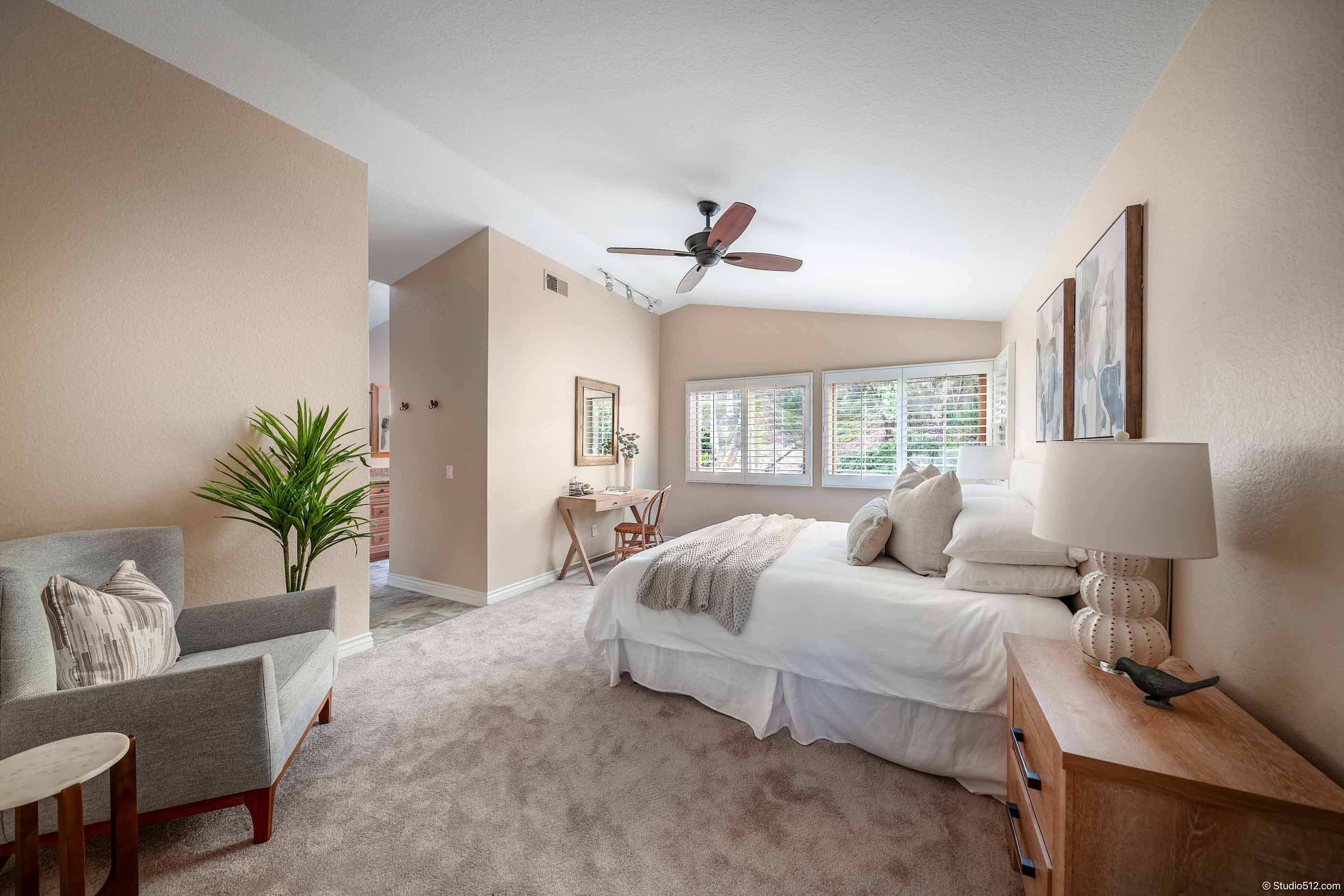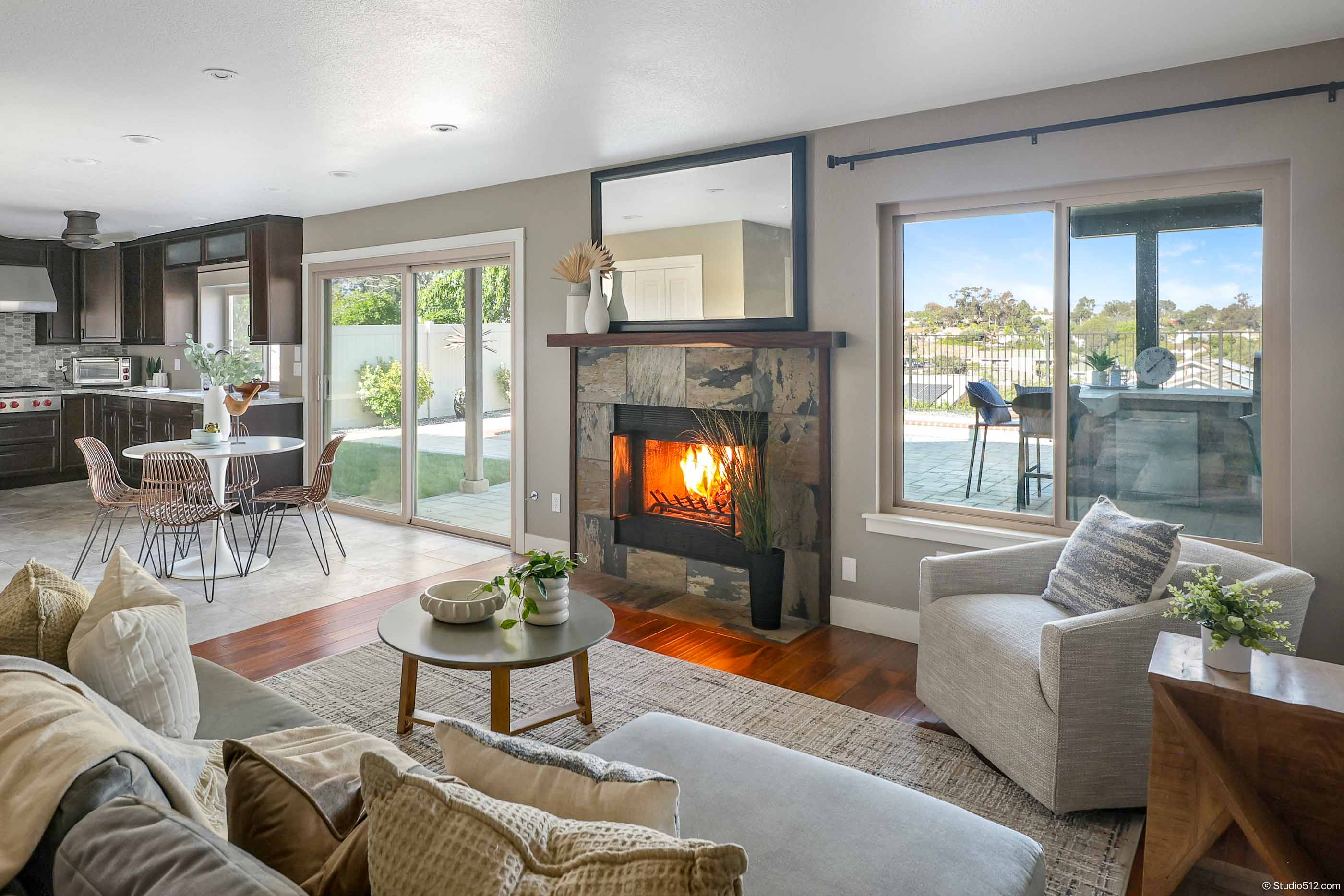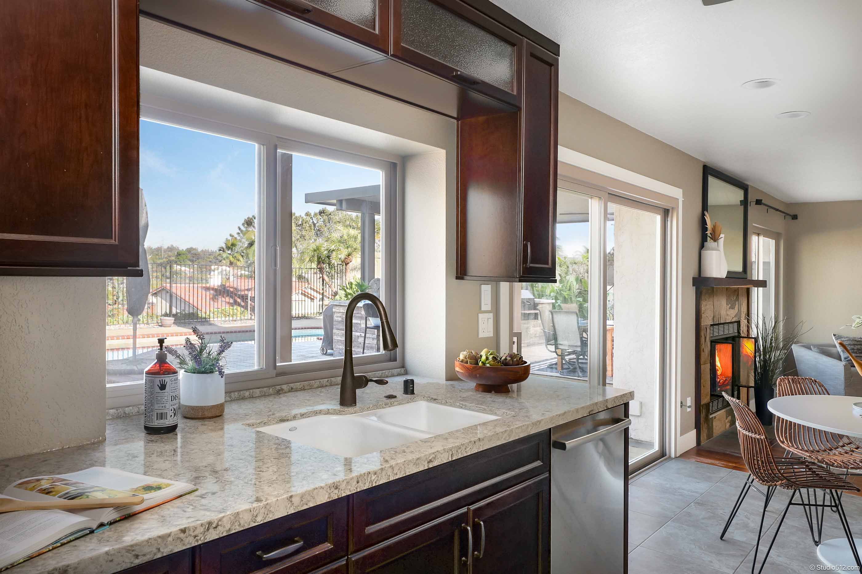 Step into a refined sense of comfort and privacy with this beautifully appointed two-story home, ideally situated in the heart of Encinitas, CA. Tucked away on a quiet cul-de-sac and set on a generous lot just under 10,000 square feet, this residence offers both space and serenity. Originally built in 1986 and thoughtfully expanded to 2,336 square feet, the home features four well-proportioned bedrooms and tastefully remodeled bathrooms, creating a flexible layout suited for both everyday living and hosting. With no neighbors in front and clear views to the east in the backyard, the setting feels peaceful and secluded. From the moment you enter, the home welcomes you with a sense of warmth and quality. At its center is a fully reimagined kitchen designed for both functionality and style. Outfitted with premium Wolf appliances including a gas range, oven, and microwave, along with a Sub-Zero refrigerator, this space is ideal for culinary enthusiasts. Quartz countertops, a designer backsplash, and custom Bellmont cabinetry complete the space with a clean, modern finish. The adjoining living area features engineered hardwood flooring and a slate tile fireplace, complemented by an Indonesian Rosewood mantle. A custom-built bar crafted from a Zinfandel barrel sourced from Powell Mountain Cellars adds a distinctive and inviting touch. Vaulted ceilings and Plantation shutters enhance the sense of openness while maintaining privacy. An additional downstairs bedroom can be used as an office or den with a full bath in the hall. The private primary suite offers a serene and thoughtfully designed retreat, enhanced by brand new carpet, tile flooring and an abundance of natural light. The spa inspired ensuite features dual vanity sinks, a spacious walk-in closet, and a separate soaking tub and shower, creating a perfect balance of comfort and functionality for everyday living. The secondary bedrooms are generously sized and enjoy soft east facing views, bringing in beautiful morning light. Each room is equipped with new carpet and ceiling fans with remote controls for added convenience. The guest bathroom is equally well appointed, featuring dual vanity sinks and a combination tub and shower with a sleek glass enclosure, providing both style and practicality for family and visitors. A spacious east facing bonus room opens to a private balcony finished with durable TREX decking, offering a peaceful setting to enjoy morning light and views of the backyard and pool. The outdoor space has been carefully upgraded to support both relaxation and entertaining. Features include new vinyl fencing, Belgard pavers, and a large covered Alumawood patio cover. The outdoor kitchen area is equipped with a Lynx grill, refrigerator, Yoder smoker, and granite countertops, making it ideal for gatherings. The pool and spa provide a refreshing retreat, supported by a newly installed Pentair Superflo VS pump in 2025. Additional improvements throughout the home include updated PEX plumbing, a new gas water heater, Milgard windows for improved energy efficiency, and a high-performance skylight in the primary bedroom with remote operation. A whole house fan offers an efficient way to keep the upstairs cool and comfortable. With a two-car garage offering ample storage and a location just minutes from Encinitas beaches, dining, award winning schools and community amenities, this home presents a rare opportunity to enjoy comfort, privacy, and coastal convenience in one of North County’s most sought-after areas.