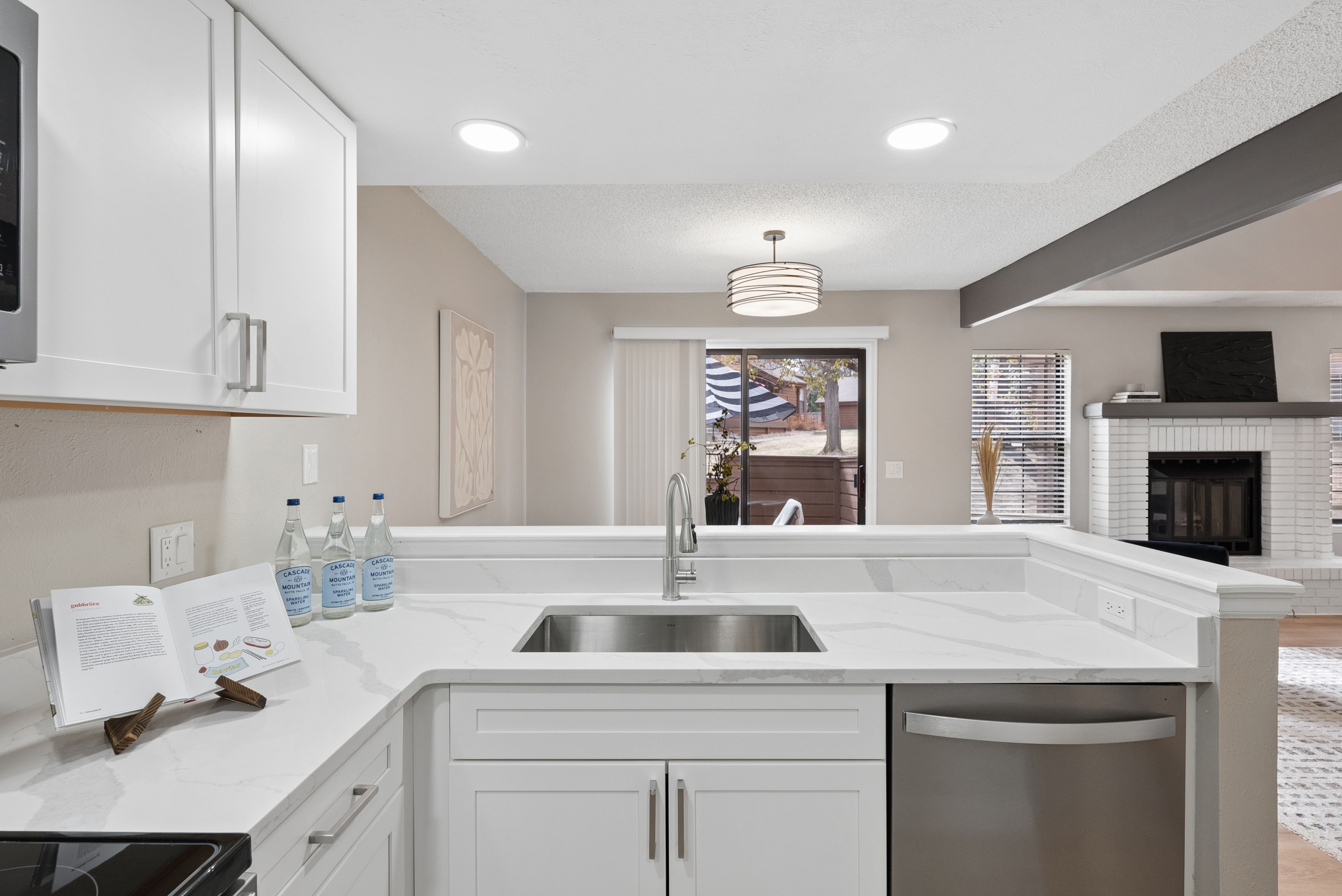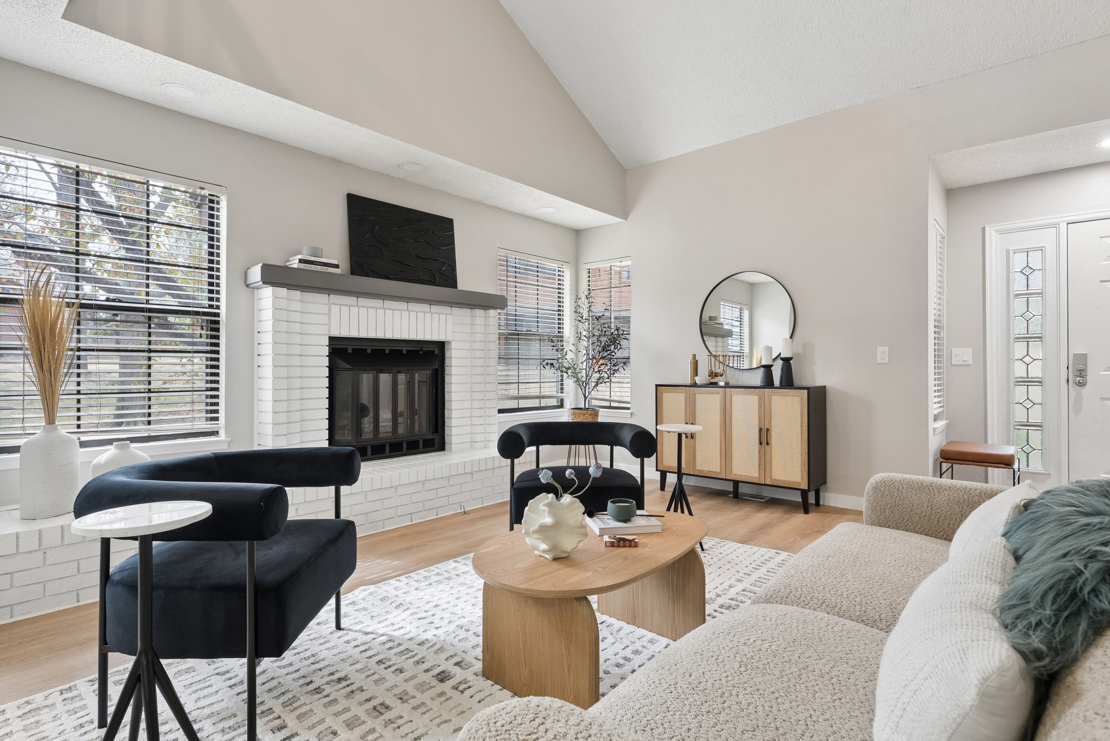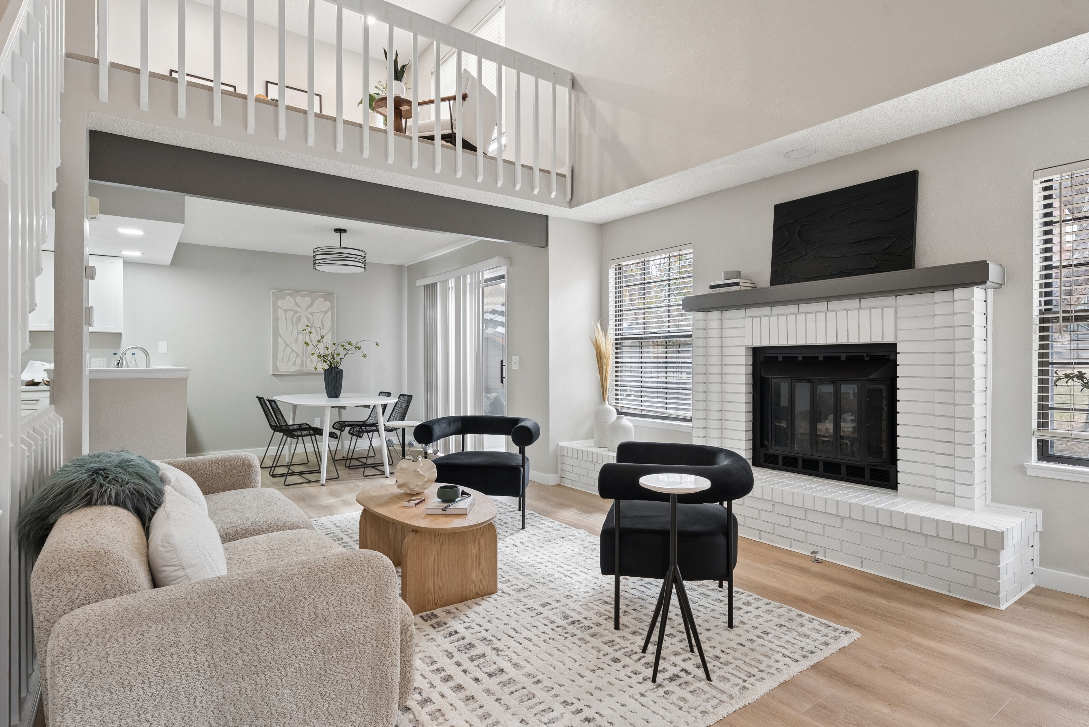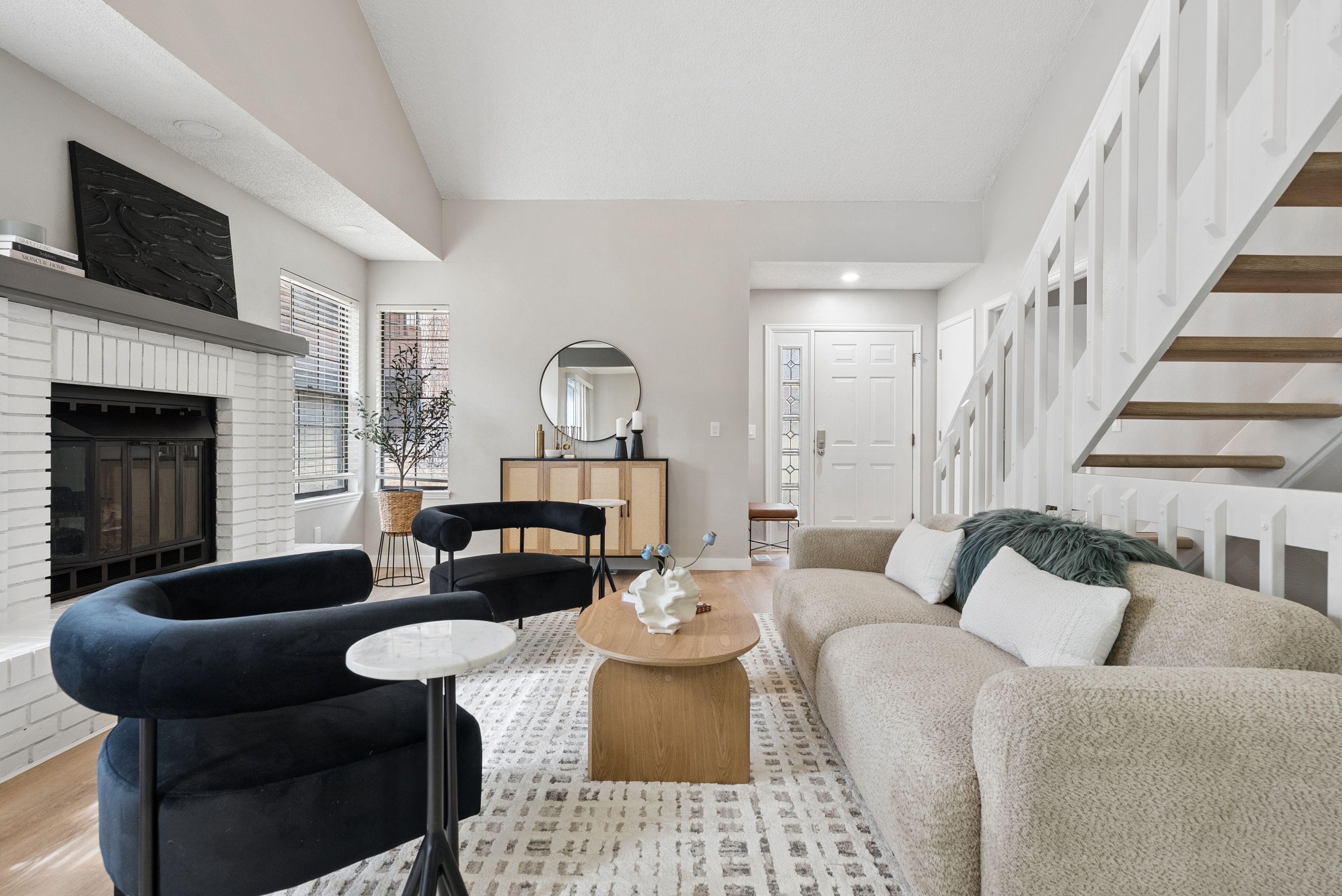 Freshly remodeled and completely move-in ready, this Arvada townhome in the desirable Sequoia community stands out for its thoughtful updates and incredibly versatile layout. As a corner unit with two private patio spaces and abundant natural light, it offers a flexible and functional floorplan that adapts to a variety of life's chapters. Step inside to soaring ceilings and brand-new flooring that runs seamlessly throughout the entire home. The main living space is anchored by a classic brick (gas) fireplace and flows easily into a proper dining area and the fully updated kitchen. The kitchen shines with new quartz countertops, an undermount sink, crisp white cabinetry, and all-new stainless appliances, clean, timeless, and ready to go. A spacious flexible main-floor room, with double-door entry and dual closets, works beautifully as a spacious office or a highly desirable main-floor primary suite, complete with an adjacent 3/4 bath. Upstairs, a second primary suite offers generous closet space plus a bonus in room vanity and sink area, connected to a beautifully updated full bath. The loft adds even more versatility, ideal for a home office, playroom, or library, and includes a closet for those considering a future fourth bedroom conversion. The newly, permitted finished basement expands the living space with a conforming third bedroom featuring a custom closet. A large, finished flex room flex room is adjacent to the basement bedroom and would be perfect for a gym, media space or a dream roommate situation. A large unfinished section of the basement (213 sq ft) provides ample storage, laundry space, and a clear path to add a third bathroom for maximum livability. Newer furnace and Central AC (2021), a detached one-car garage (plus an additional parking permit for surface spots) and a well ran HOA complete the package of this move in ready Arvada townhome!