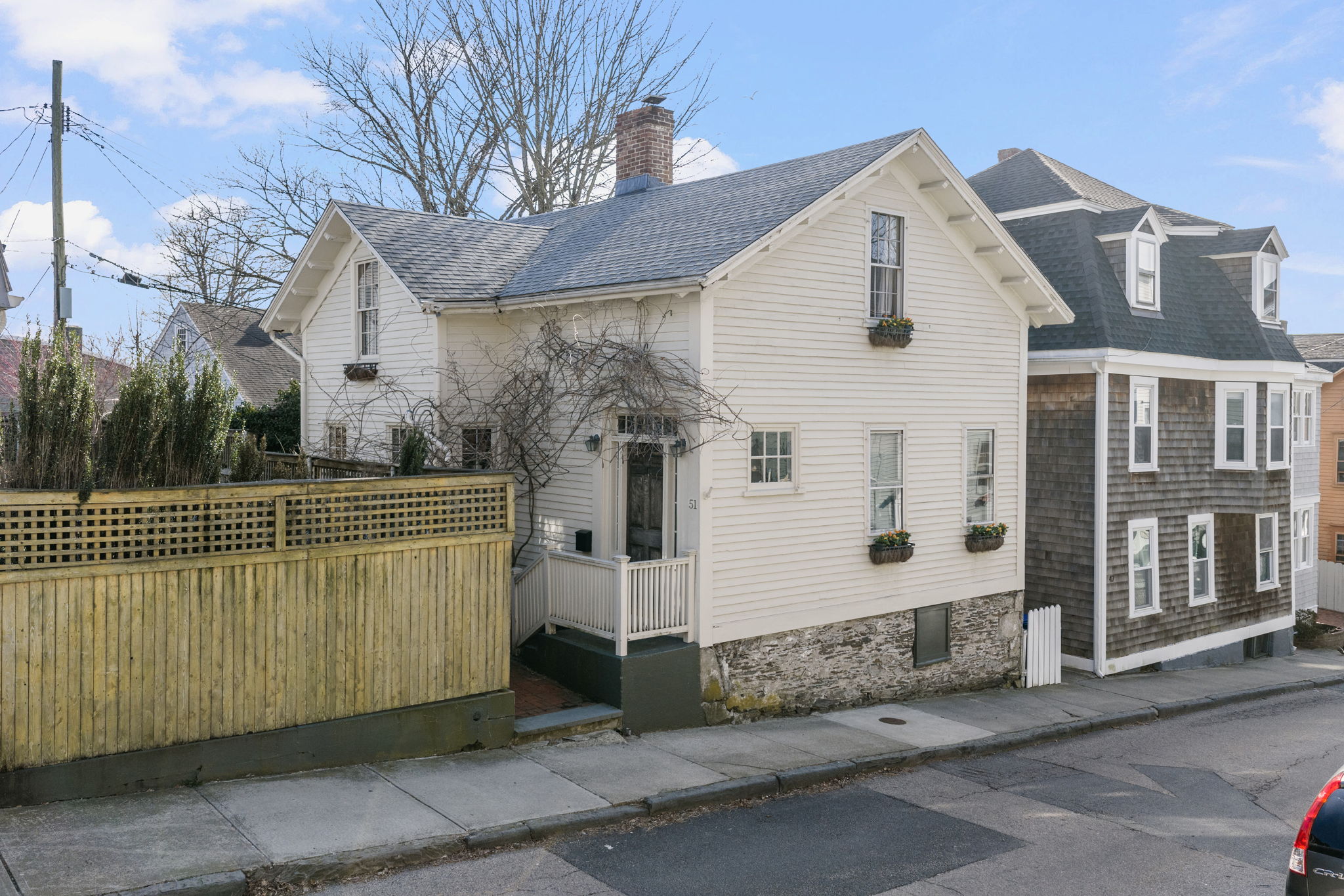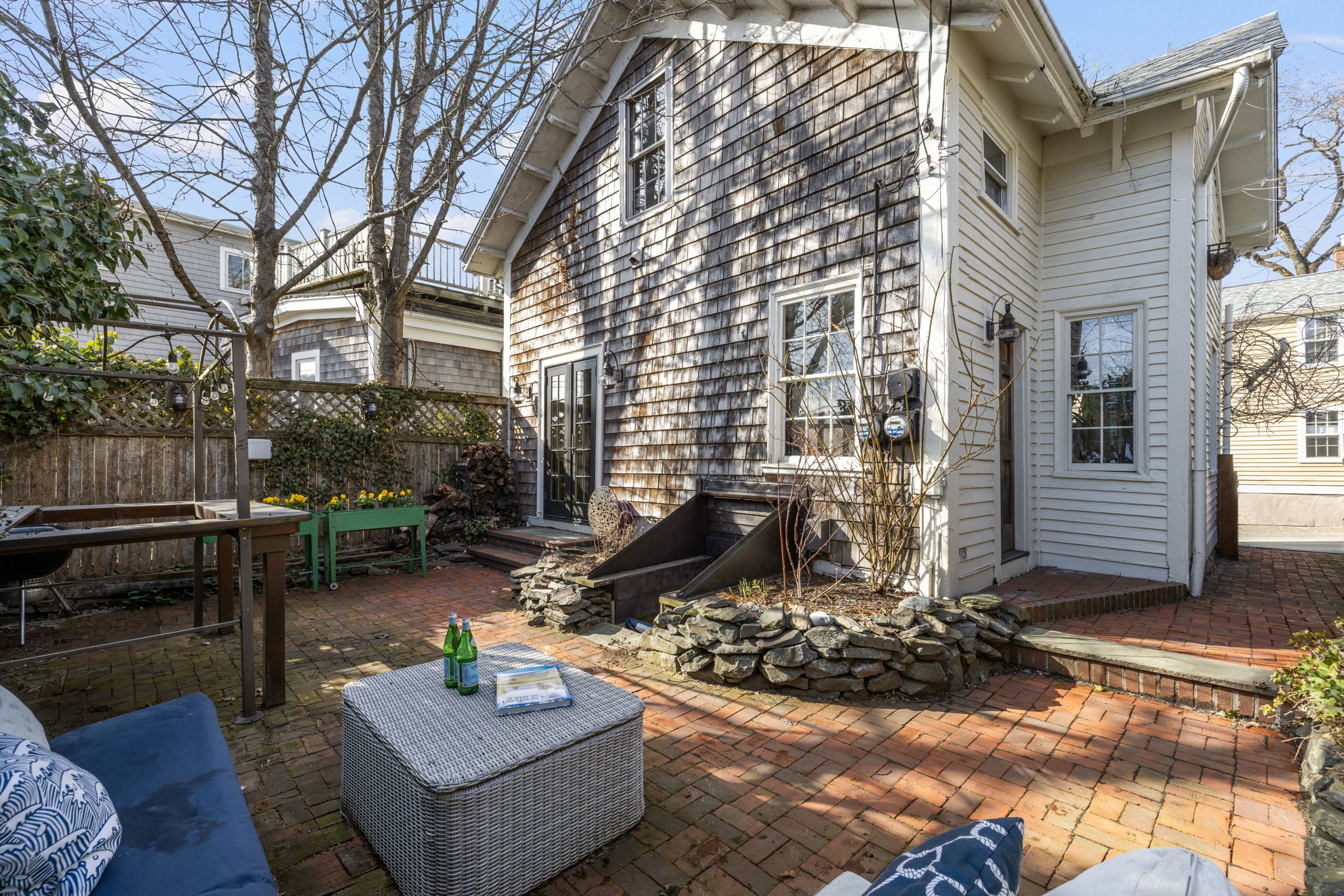 The Clifton House at 51 William Street is located on Historic Hill, midway between Bellevue Avenue and Newport Harbor. Unique luxuries and everyday conveniences are right at your door – cafes, restaurants, gourmet market, farmer’s market, Tennis Hall of Fame, Newport Harbor, Redwood and Public Libraries, Art Museum and Aquidneck Park and Playground. The Clifton House is currently used as 2 one-bedroom apartments but would serve equally well as a 3-bedroom single family. A large brick patio is a private oasis, perfect for enjoying the sun, gardening, and hosting friends and family for dining al fresco! Up a few steps, the charming entry door opens to the first floor measuring 756 square feet, with windows in every direction. The beautiful open layout starts with the entry foyer and staircase into a large living room and oversized kitchen with French doors opening out onto the back patio. The bedroom has handsome built-in closeting, while the oversized bathroom features in-unit laundry. The second floor is a beautiful atelier apartment, with sprawling living/dining/kitchen, bedroom fit for a king-size bed, generous walk-in closet, and lovely bathroom with claw-foot tub. A full cellar offers ample storage for bikes and boards. First floor unit leased through November 2026. If you want to be in the center of the action, yet tucked away with privacy and lovely outdoor space, The Clifton House could be for you!
