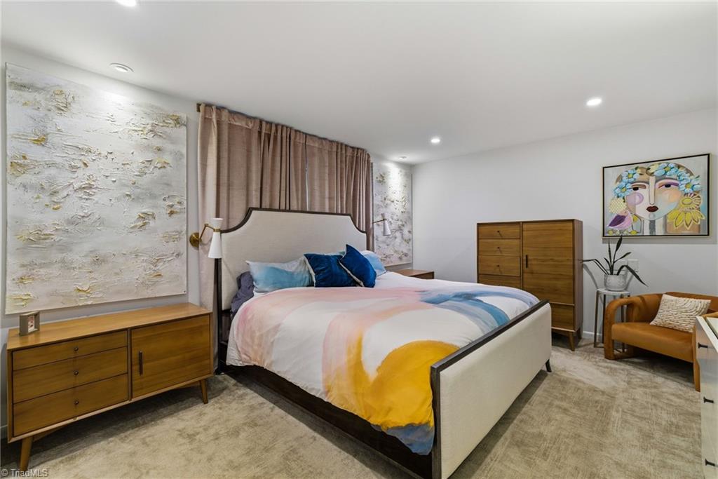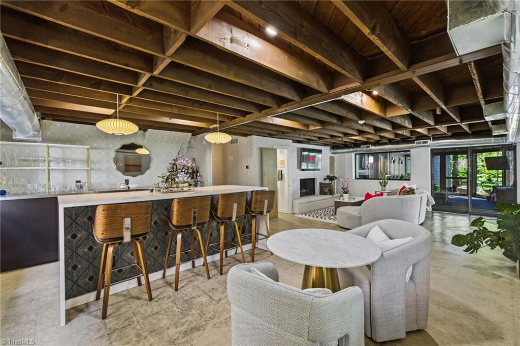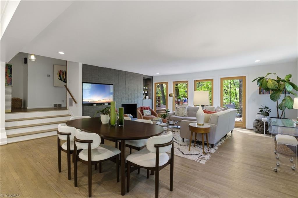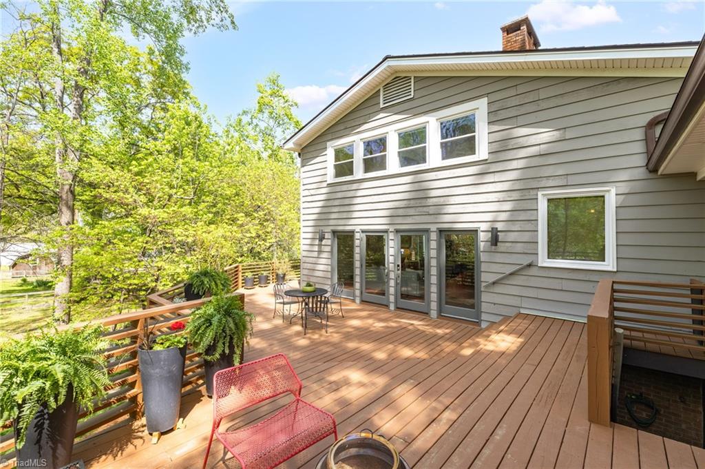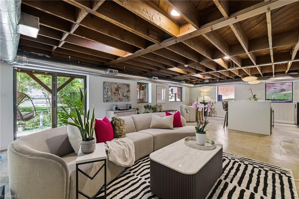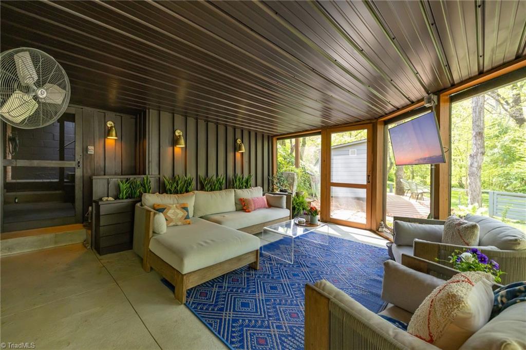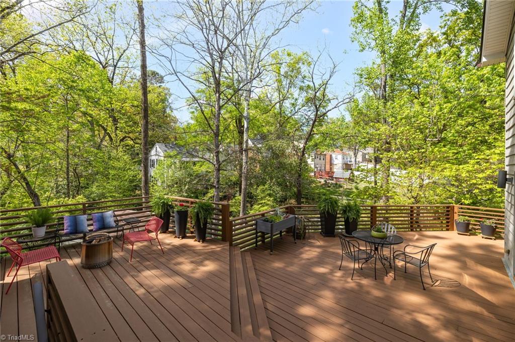 Rare multi-level mid-century modern home w/thoughtful upgrades by Frye Build+Design & Comer Shuford in Sunset Hills. Designed by Helen & Warren Ashby w/renowned architect Ed Loewenstein & originally built by John Hiatt, this home offers distinct living & entertaining areas across all levels. Main level includes primary bedroom, open living & kitchen space, half bath & wrap-around deck. Upper level includes 2 bedrooms w/2 full baths, one w/ ensuite bathroom & office space. Lower-level features rec room, bar w/double beverage refrigerator, sink, powder room & screened-in porch access. Two fireplaces w/gas logs. Other features - outdoor shower, fenced yard, gas line for grill, outdoor lighting, detached shed w/electricity & breaker box wired for electric car. Floor plan available. Seller is a licensed real estate broker in NC & is affiliated w/ BHHS Yost & Little Realty. Listing agent is related to Seller. Buyer to verify tax info: Tax value 2026 assessment, tax rate & tax amount 2025.