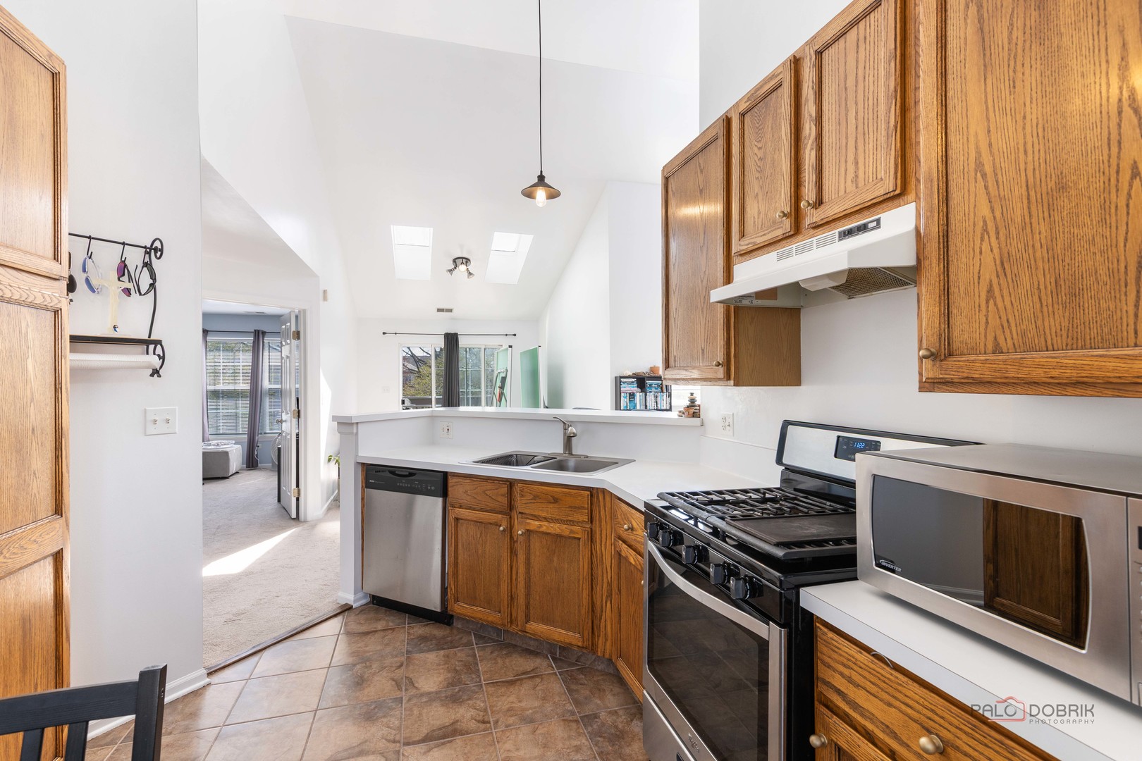 Tucked within the Briar Pointe community, this bright 2-bedroom, 2-bath townhome offers a layout that feels open, welcoming, and ready for its next chapter. Vaulted ceilings and expansive windows fill the main living space with natural light, creating an inviting setting for everyday living and easy entertaining. Sliding doors lead to a private deck overlooking the pond, where peaceful water views offer a quiet backdrop for morning coffee, grilling with friends, or unwinding at the end of the day. The kitchen connects comfortably with the main living and dining areas, creating a layout that feels natural for both everyday living and gatherings. The primary suite, located in a separate wing of the home includes an on-suite bath and generous walk-in closet, while the second bedroom easily adapts depending on your needs. With a private entrance and attached, extra long 1-car garage, experience the ease of townhome living in this welcoming Schaumburg community.