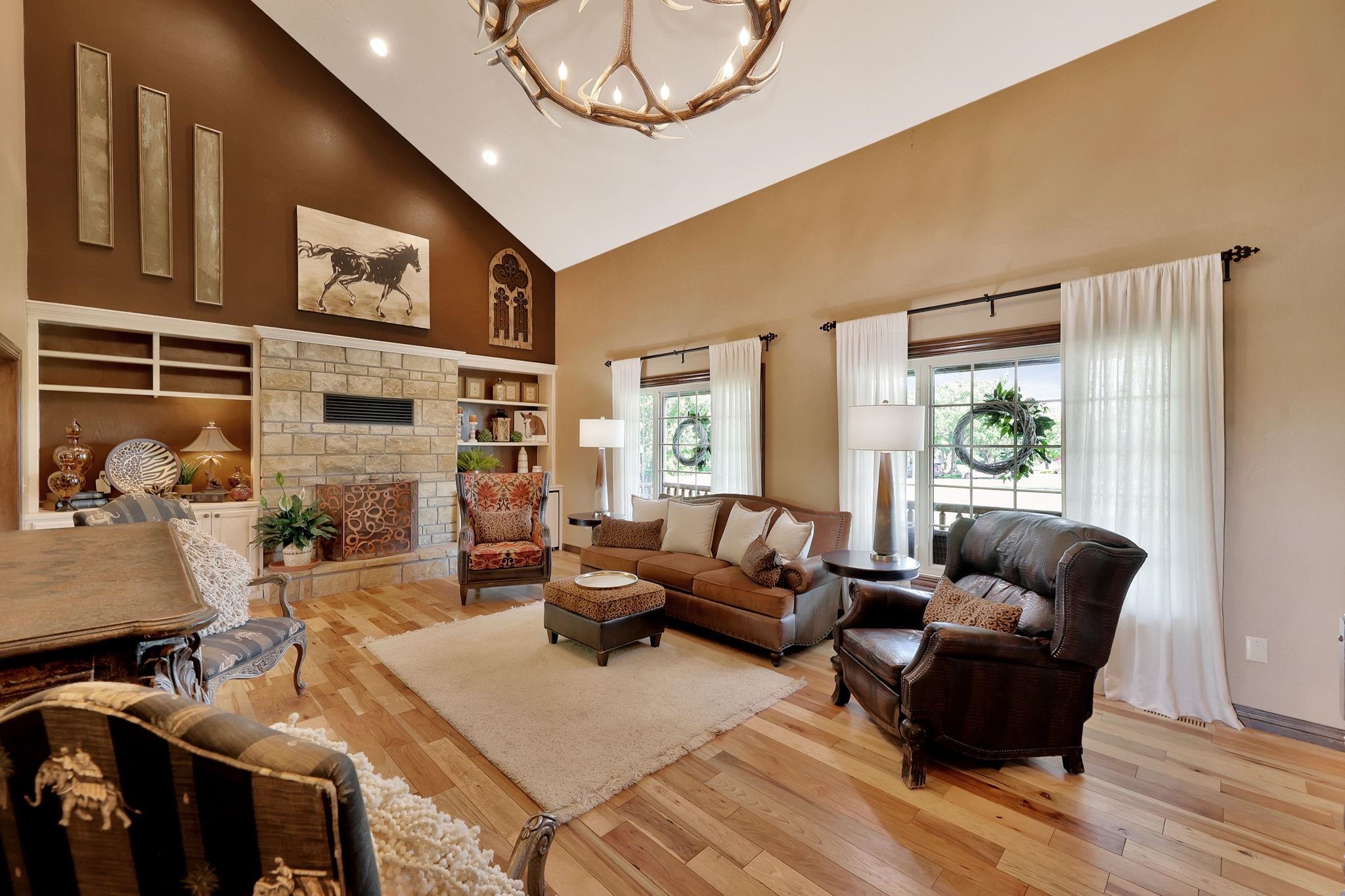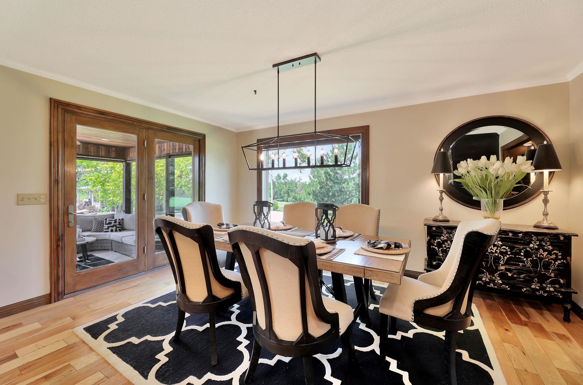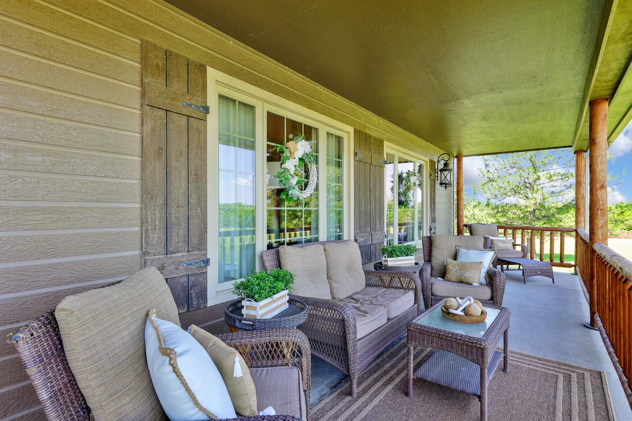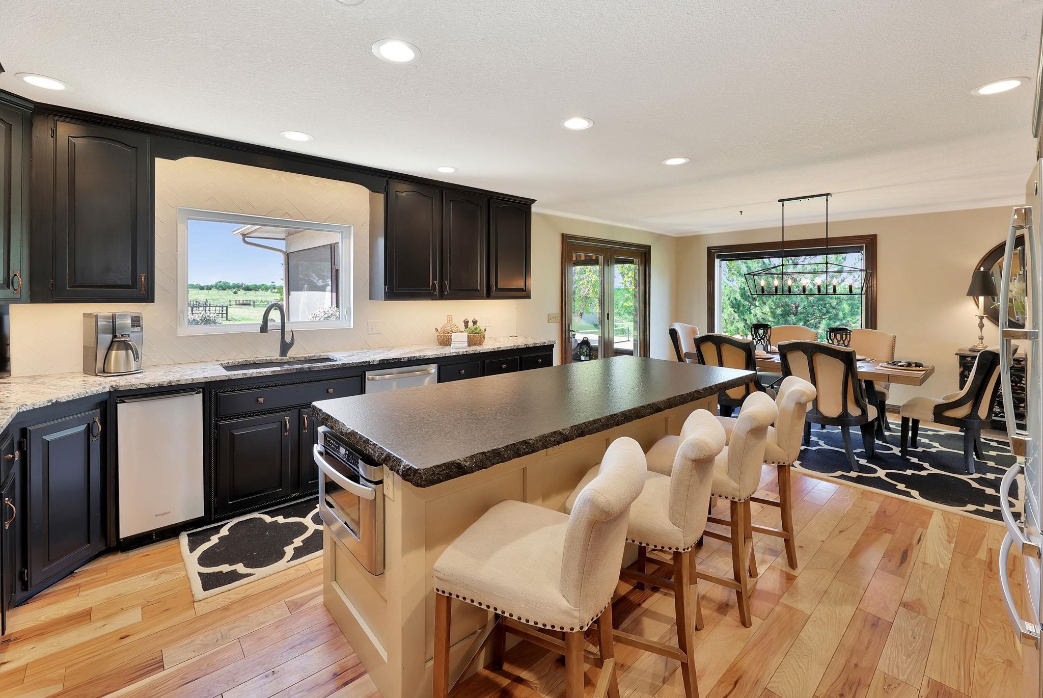 This offering is an exceptional country property meticulously renovated. Nestled in the sought after Santa Fe lake area, it is just a 10 minute drive to goods and services in Andover. While it presents with the usual country type amenities such as barn, outbuilding, riding arena, etc., it also provides that luxurious resort feel, with its saltwater pool and large wraparound sunning area, with large deck and pickle ball court. You can be an avid participant, or you can be a cozy spectator from the custom crafted screened porch with car siding interior and ceiling, which is directly accessible from the chef style kitchen with an enormous island for prep, eating, school projects or charcuterie bar. The dining area is ample and has a panoramic view of the countryside. The new hickory floors throughout the main level create a lodge feel with the soaring fireplace and high ceilings. The main floor bath opens conveniently to the pool and deck, which provides a nicely appointed drying off or dressing area for family and guests. The front porch just beckons you to have a sit and a sweet tea and wait for someone to drive by and wave, but that might take a while. The upstairs is uniquely private with the balcony overlooking the great room and beds and baths spread out with lots of closet space in the main hall. The owners' suite comes with the hickory floors and newly remodeled bath. The other bedrooms have lots of light and wonderful views of the surrounding serene acreage. If you are just clamoring for a home with space outside to spread out or if you have always wanted a horse or two, this is earthly heaven and someone else has done all of the work for you!
