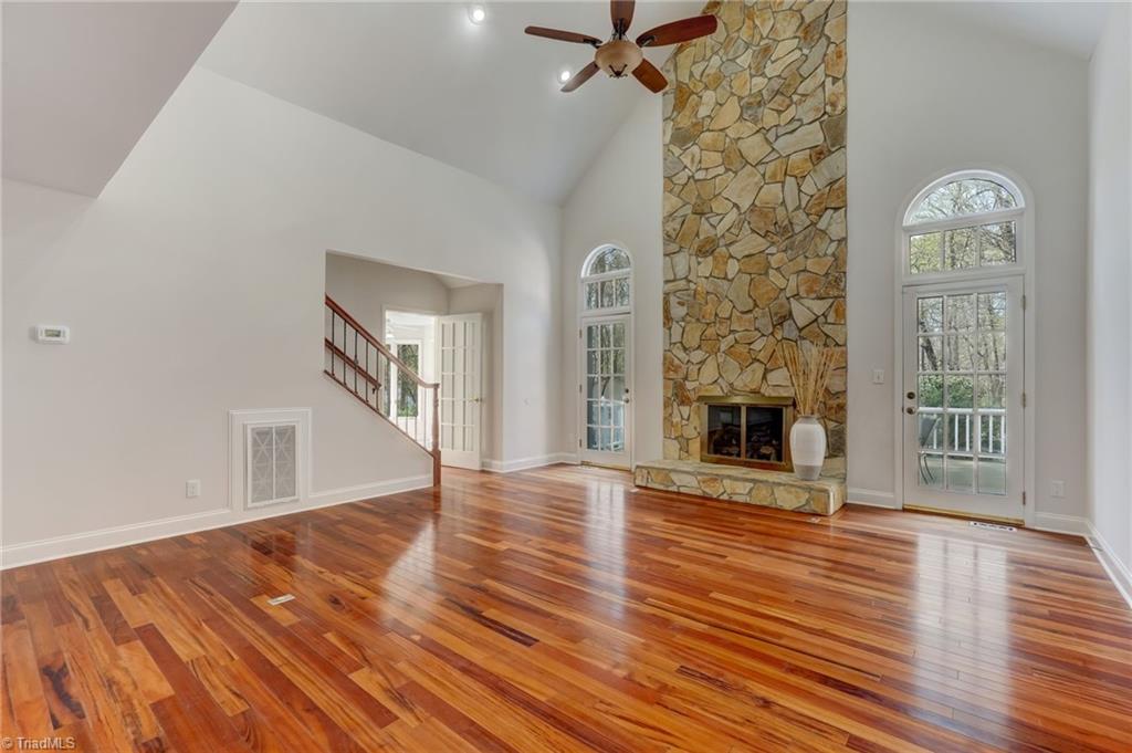 A beautiful corner lot on just over an acre sets the stage for this well-kept home in sought after Tamannary Forest. The wraparound porch and mature landscaping create a welcoming first impression. Inside, you are greeted by beautiful wood floors and fresh interior paint. Vaulted ceilings and a floor-to-ceiling stone fireplace define the great room, opening to the spacious back deck overlooking the large fenced in lot. The kitchen boasts functionality with an abundance of cabinet space, granite countertops, stainless appliances, brand-new gas stove, two dishwashers and bar seating. The breakfast area is lined with windows, and the sunroom overlooks the scenic backyard. The main-level primary includes an ensuite bath with double sinks and spacious closets. Upstairs features a loft and two additional bedrooms. Two-car garage with a bonus room above offers flexible space! Convenient to highways, shopping, dining, parks, Lake Townsend and Lake Jeanette!