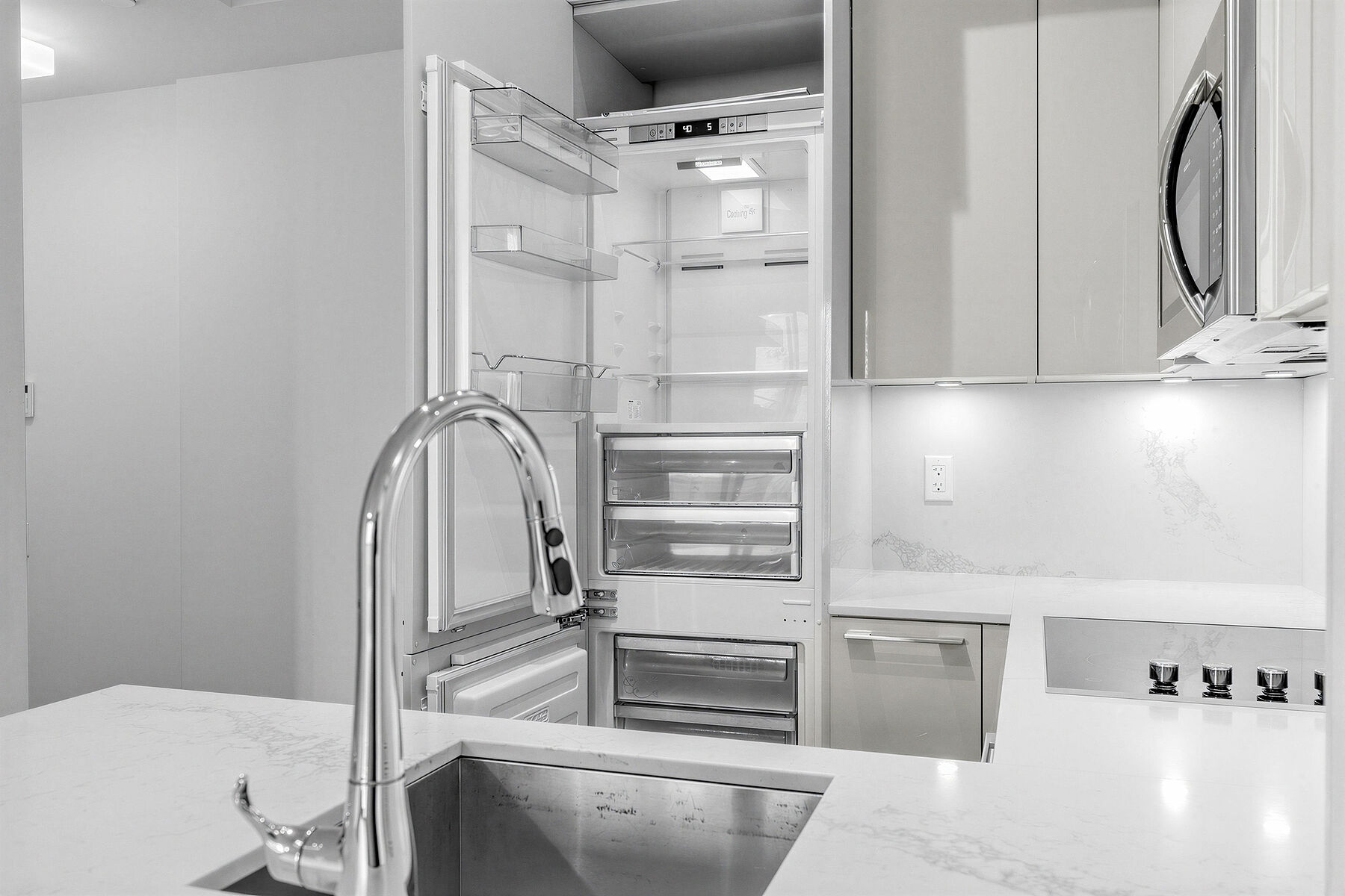 Modern luxury meets unbeatable convenience in this bright east-facing suite at The Gloucester on Yonge. Featuring a functional open-concept layout with floor-to-ceiling windows, this sun-filled unit offers a sleek modern kitchen with integrated appliances and a well-designed living space. Thoughtfully upgraded with nearly 25,000 dollars in premium finishes, the kitchen showcases quartz countertops paired with a striking bookmatched Caesarstone quartz backsplash, upgraded lacquer cabinetry with enhanced hardware, and extended upper cabinets reaching eight feet for a seamless built-in look. The bathroom is equally refined with porcelain tile shower walls and flooring, complemented by a sleek glass shower enclosure. Added cabinet lighting enhances both functionality and ambiance. Enjoy exceptional building amenities including an outdoor pool, fitness centre, theatre room, and more. Direct access to Wellesley subway, and steps away from Yorkville, U of T, Toronto Metropolitan University, top restaurants, shops, and parks. Vacant, sparkling clean, and move-in ready, this is an exceptional opportunity for refined downtown living.