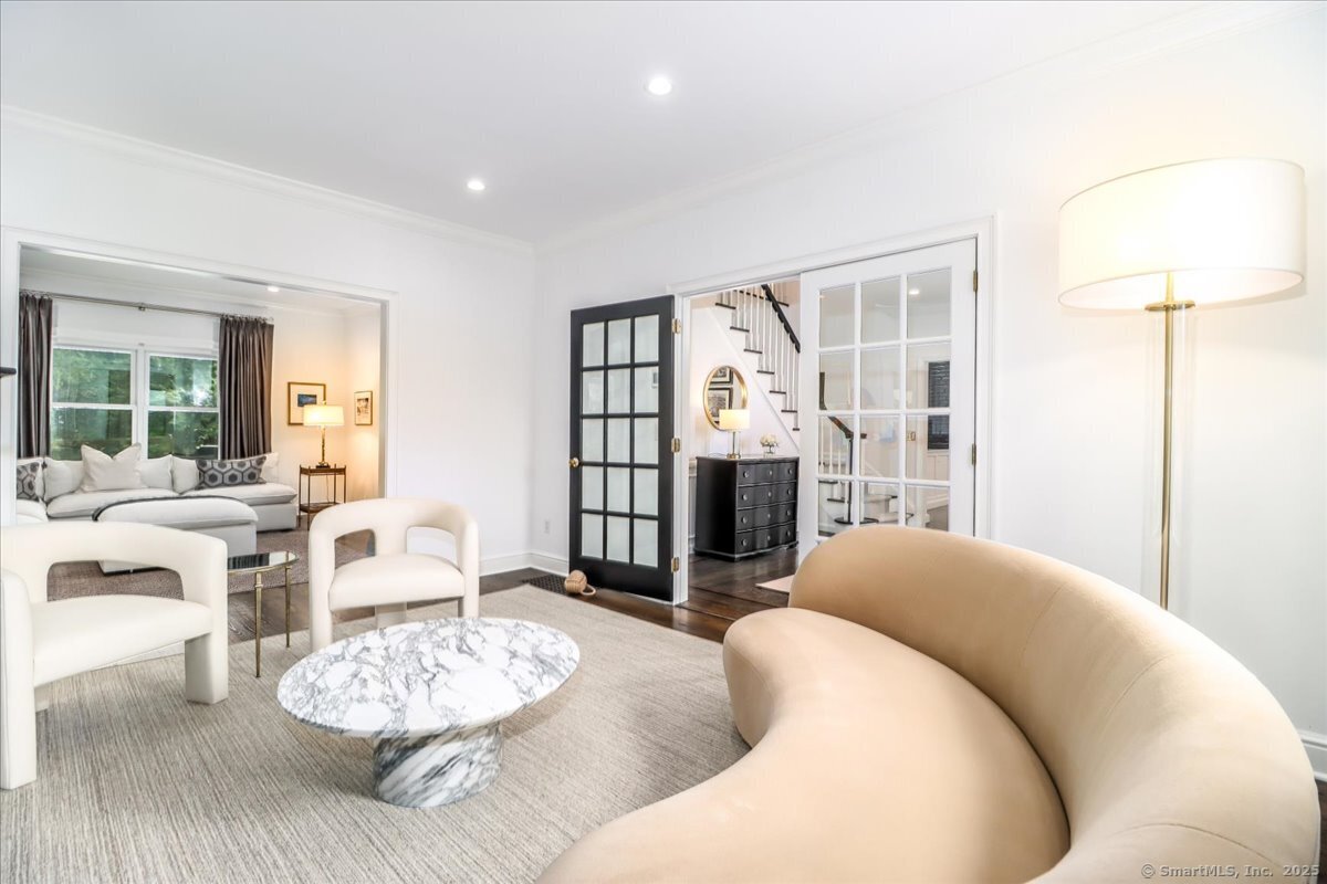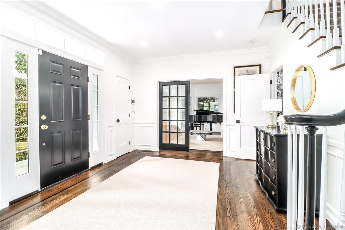 Welcome to 13 Old Castle Drive, a stunning, fully reimagined Colonial set on 1+ level acre lot and nestled on a peaceful cul-de-sac in one of Newtown's most sought-after neighborhoods with scenic views of the Borough. Thoughtfully renovated over the past three years, this elegant 4-bedroom, 2.5-bath residence combines timeless architecture with upscale modern living across 4,300+ square feet of beautifully finished space. Step inside to find refinished hardwood floors flowing throughout, fresh interior paint, and designer lighting that elevates each room. Remodeled gourmet, eat-in kitchen-with top-of-the-line Viking appliances, Quartz countertops, an expansive 10'x4' center island, walk-in butler's pantry with sink and beverage fridge. A double-sided gas fireplace connects the kitchen to the dramatic vaulted-ceiling family room, which features double sliding glass doors that open to new patio and decking. Main level also includes an oversized foyer with French doors leading to a music room or office, den space, inviting formal Dining Room along with a stylishly updated powder room. Upstairs, the primary suite boasts a new custom walk-in closet, full bath with spa-like ambiance. Renovated hall bathroom serves the additional 3 bedrooms with style and function. New Andersen windows and French doors on the main level, and Harvey replacement windows upstairs. Finished lower level with a home gym, media room, designer laundry with barn door, and mudroom and generous storage.