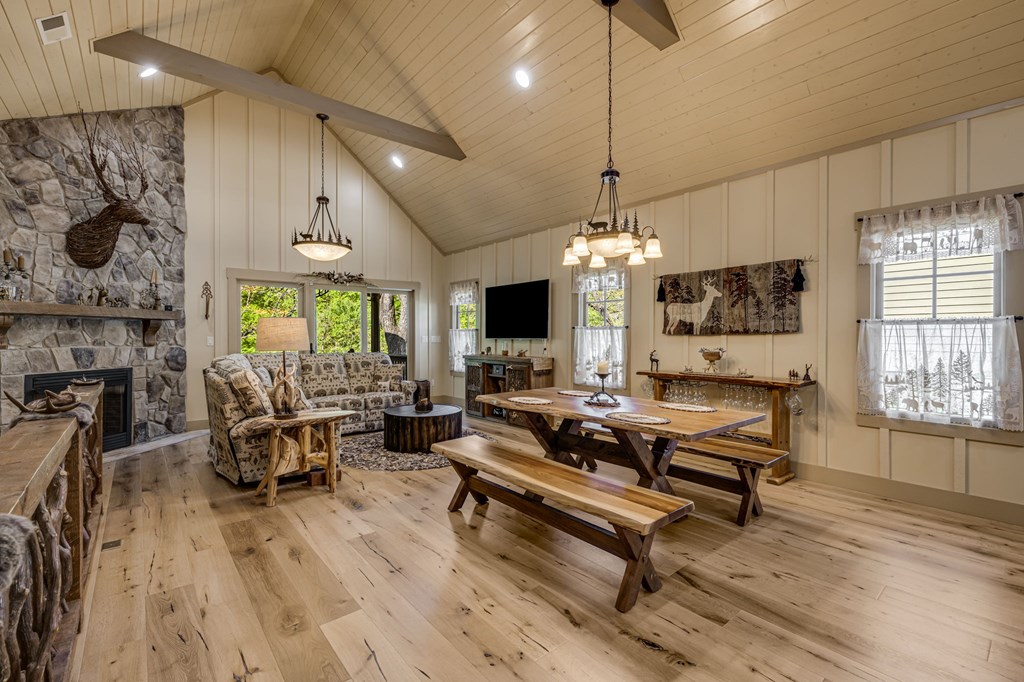 Welcome to your dream riverfront escape - where impeccable craftsmanship, high-end finishes, and breathtaking surroundings create an unforgettable living experience. This luxury home features 100% Viking appliances (including a beverage center), Golden Thunder granite countertops, custom cabinetry, solid walnut kitchen table, Kohler comfort-height fixtures, Moen faucets, and high-end lighting throughout. Enjoy hickory hardwood floors, a gas fireplace, Lazy Boy power sectional, screened porch, Trex decking, flagstone walkways, firepit, and a peaceful koi pond. Built on stone piers with paved year-round access, the large garage parks 4+ vehicles. Additional highlights: Electrolux washer/dryer, tankless water heater, fiber optic internet, city water, public sewer with a WiFi-monitored holding tank, heavy-duty outdoor furniture, cypress shutters, multiple grill areas, and a community pavilion. Sold fully furnished and turnkey. Riverfront luxury at its finest! Please visit this homes website for more pics, video and information: https://36-chimney-stone-way.cribflyer.com/