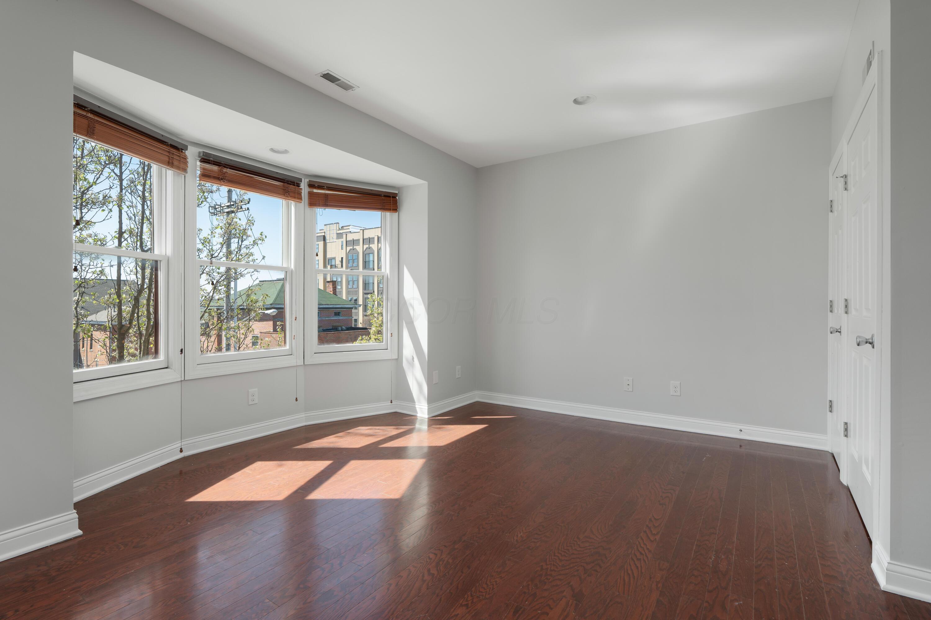 Downtown Columbus - Affordable and Location! Enjoy this sunlit top floor condominum in the King-Lincoln district. Hardwood floors and expansive windows makes this spacious one bedroom unit with private outdoor patio a true gem. Large walk-in closet. Updated appliances new refrigerator and microwave - freshly painted and move-in ready! Washer & Dryer hookups located inside unit. Private gated parking spot included. Easy access to restaurants and entertainment- book your showing today!