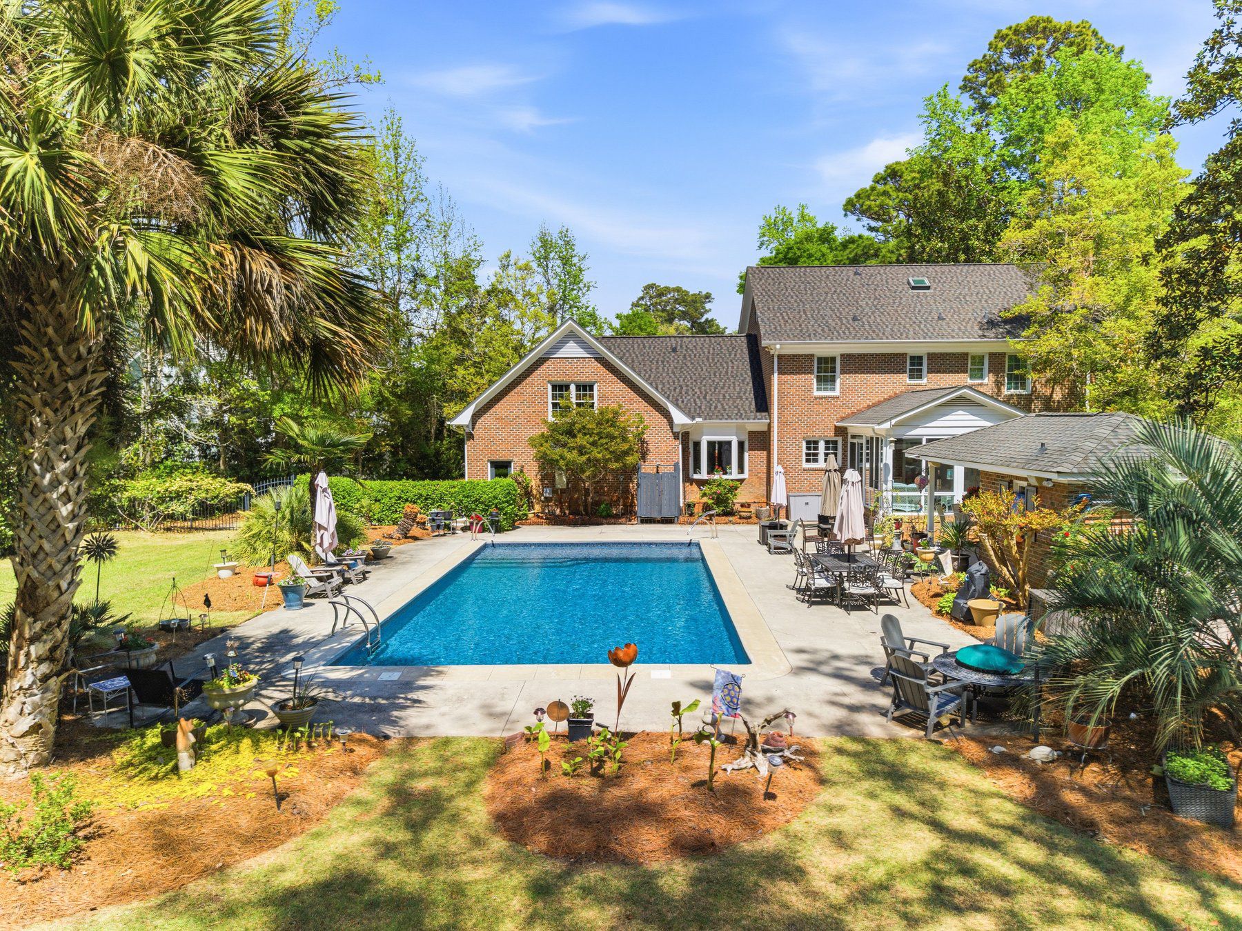 Outdoors, enjoy your own private retreat featuring a 40' x 20' saltwater pool with a new salt system and pump, a separate pool bath, outdoor shower, and a 16 x 10 storage shed - ready for long Wilmington summers.