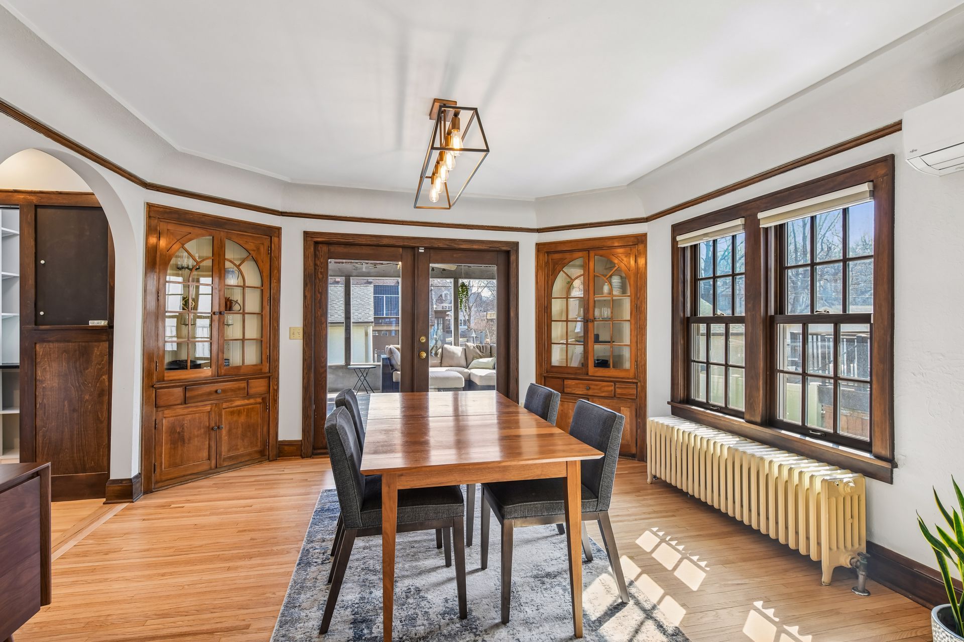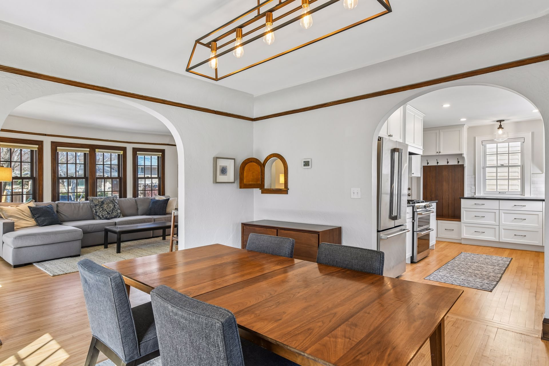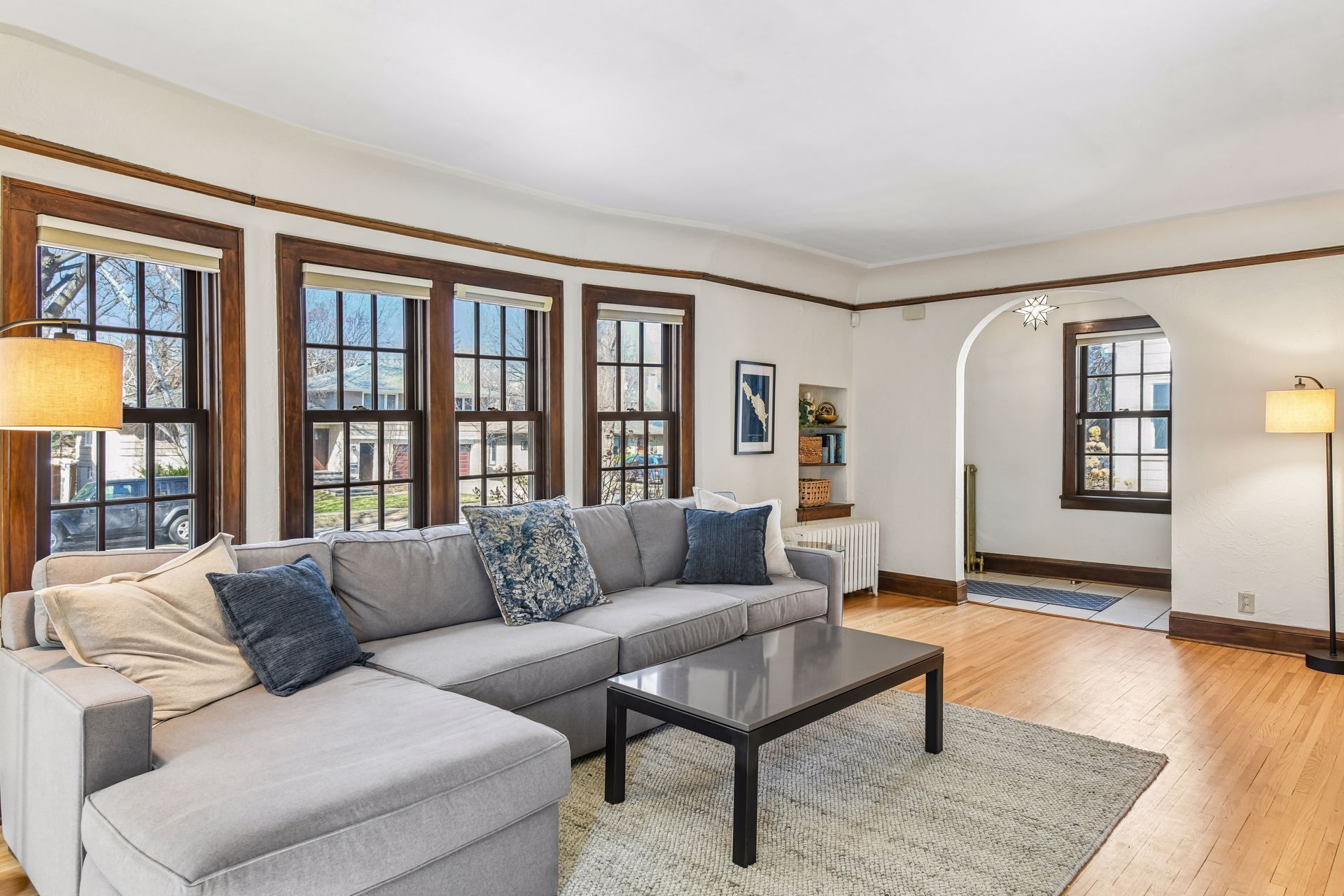 Charmingly renovated 4BR/ 3BA tudor in the heart of Linden Hills. The primary level is highlighted by newly refinished hardwood floors and beautifully crafted natural woodwork. The expansive living room benefits from ample natural light and features a wood-burning fireplace. Striking archways connect to the formal dining area, which is enhanced by original built-ins and provides access to the screened porch. Kitchen renovation completed in 2021 with tile backsplash, walk-in pantry, ample cabinet space and convenient access to the main floor half bath. Three generous sized bedrooms on the upper level with balcony access. Additional bedroom, bathroom and storage on the third floor. Finished lower level with family room, built-in storage, dry bar area, and finished laundry room. New boiler installed 2026. The backyard features a screened porch and a rear deck, complemented by ample green space ideal for hosting gatherings. Steps to Bde Maka Ska and about 1 mile to Lake Harriet Bandshell and downtown Linden Hills. Walkability to Trader Joe’s, Mill Valley Kitchen, and Hazelwood. Move-in ready!