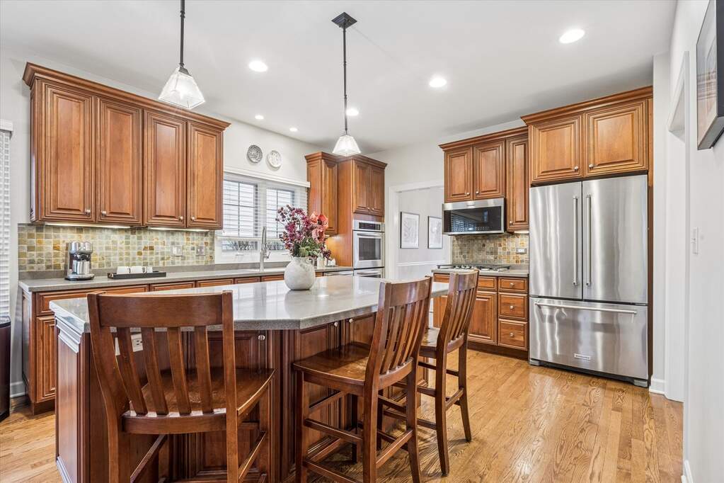 Beautifully maintained and thoughtfully designed, this home built in 2000, combines timeless style with comfortable, everyday living in an exceptional La Grange location. The sun filled first floor offers a gracious living room and dining room, along with a spacious kitchen featuring a large center island with seating and a separate eating area. The kitchen opens seamlessly to the inviting family room, creating the perfect space for gathering and entertaining. An updated mudroom with custom cubbies and convenient first-floor laundry adds both style and functionality. The second level features a generous primary suite, a private en-suite bedroom, and two additional bedrooms served by a hall bath. The finished basement offers even more living space with a large recreation room, wet bar, full bath, and a versatile flex room ideal for a home office or guest room, along with a separate workroom and abundant storage. Outside, enjoy beautifully landscaped grounds, a two-car garage, and a lovely patio accessible from both the family room and mudroom, perfect for outdoor dining and relaxing. Ideally located just steps from schools and parks in sought-after La Grange, this home offers the perfect blend of space, functionality, and location.