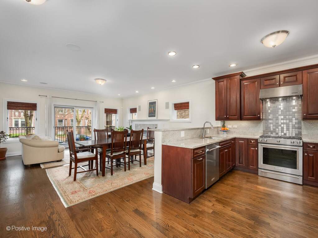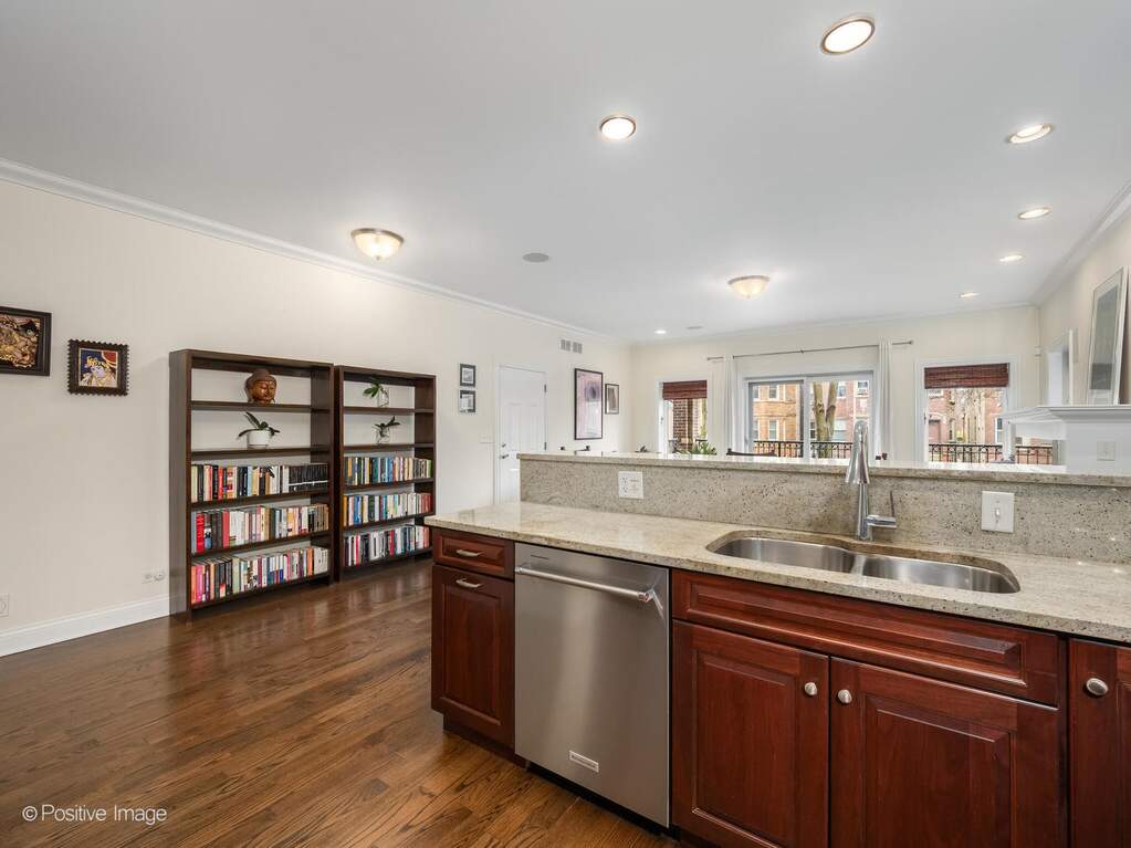 Rarely available VERY WIDE, 2500 SF 3-bedroom, 3-bathroom duplex-down with private yard, sun-filled front deck, and two garage parking spaces, located in the highly sought-after LINCOLN SQUARE. This spacious home features two bedrooms and two bathrooms on the main level and one bedroom and one bath on the lower level, providing an ideal layout for both everyday living and entertaining. The main level showcases hardwood flooring throughout and a chef-inspired kitchen complete with breakfast bar seating, natural stone countertops, NEWER stainless steel appliances. The primary suite includes a generous walk-in closet and a spa-like bath with dual vanity and steam shower. The lower level impresses with soaring ceilings throughout and HEATED FLOORS! A versatile recreation room featuring bar AREA and office nook, along with a third bedroom and full bath-perfect for guests or additional living space. A SPACIOUS laundry room WITH CUSTOM SHELVING, extra storage room, and convenient rear entry complete the lower level. Additional highlights include surround sound, gas fireplace, security system, and abundant custom closet and storage solutions throughout the home. Ideally situated in Lincoln Square, a neighborhood known for its unique blend of historic charm and vibrant energy, with beloved restaurants, cafes, neighborhood bars, markets, grocery stores, and public transit all just moments away.