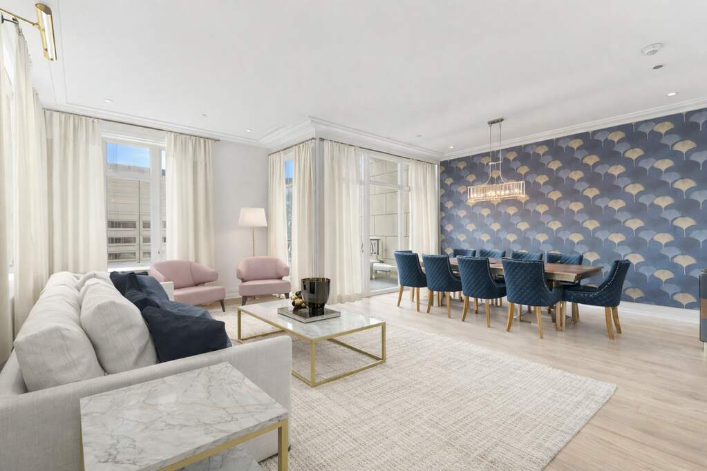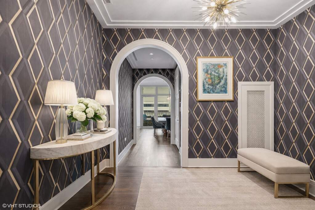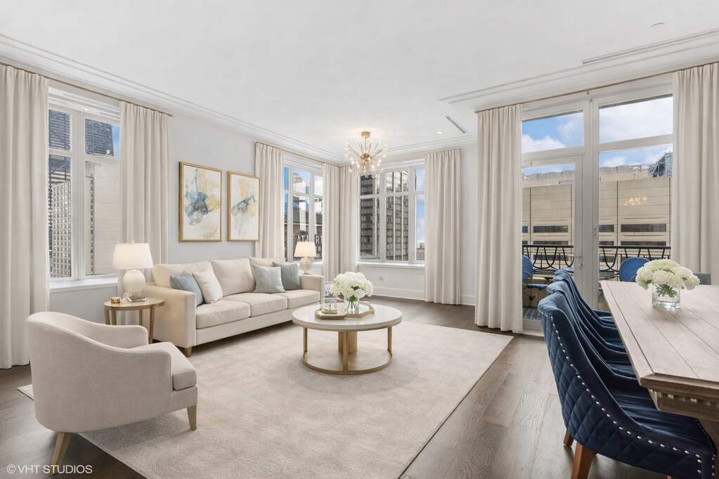Experience refined luxury living at The Ritz-Carlton Residences in this beautifully appointed 3-bedroom, 2.1 bath home spanning an expansive, light-filled layout. Perfectly capturing both sunrise and sunset, two private balconies showcase sweeping views of Lake Michigan and the downtown skyline. The residence features a DeGiulio chef's kitchen with marble countertops and backsplash, professional-grade Wolf, Sub-Zero, and Miele appliances. The adjacent living and dining spaces flow seamlessly, complemented by a separate formal dining room. The Spacious primary suite with custom-built walk-in closet and a spa-caliber bath finished with marble countertops, limestone flooring, Dornbracht fixtures, and a separate soaking tub and shower. A spacious guest suite offers its own en-suite bath, while the third bedroom-currently styled as a den, adds flexibility to suit your lifestyle. Throughout the home, timeless craftsmanship takes center stage with custom millwork, arched doorways, rich crown molding, soaring 10' ceilings, and wide-plank hardwood floors. Additional conveniences include in-unit laundry, access to concierge laundry service, valet parking, and dedicated storage. As a resident, enjoy unparalleled access to The Landmark Club, The Ritz-Carlton's private amenity floor-featuring a Gary Lee-designed salon, private dining room and cocktail bar, fitness center, billiards lounge with wine storage, terrace, steam room, spa relaxation areas, and private theater. White-glove concierge, butler, and beverage services complete the full-service, five-star experience.