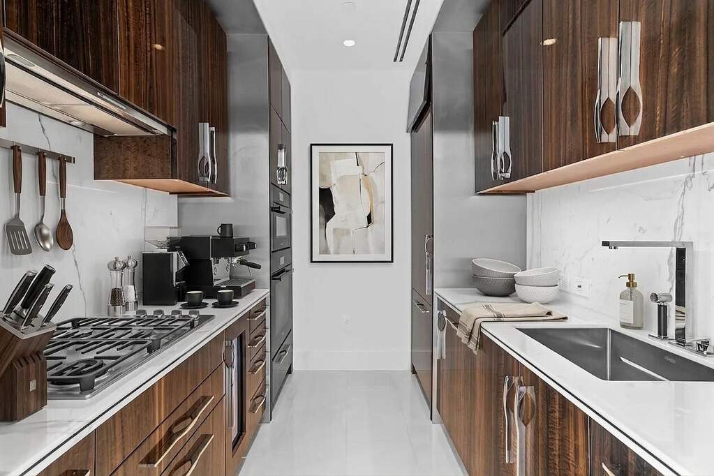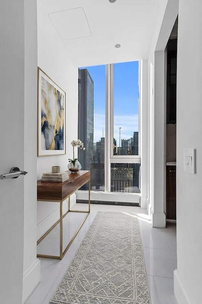 Redefining the New York City skyline, Central Park Tower stands as a testament to unprecedented luxury. Rising an astounding 1,550 feet above the heart of Billionaires' Row, the world's tallest residential landmark offers a lifestyle that literally transcends the clouds. Experience luxury living at its finest in this contemporary, high-rise condo in Central Park Tower located at 217 W 57th St, Manhattan, NY. This exquisite and spacious 1-bedroom, 1.5-bathroom residence spans 1,508 square feet and boasts architectural elements such as high ceilings, and floor-to-ceiling windows that provide stunning city and Hudson River views. This corner unit One Bedroom unit is the largest One Bedroom floor plan in the building, even larger than some other 2 bedroom units in the same building. The residence has been designed to maximize views and light. Facing South and West, it gets abundant natural sunlight during the day even on cloudy days, and the night views are amazing. Custom stained chevron plank solid wood flooring throughout the home. The spacious living room has the potential to be divided into a convertible 2 bedroom unit. (see alternate floor plan). The chef's kitchen has cabinetry by Smallbone of Devizes. It has been custom-designed and crafted from the finest natural materials, lacquered, and hand-polished to achieve a magnificent luster. It is equipped with top-of-the-line stainless steel appliances, marble countertops, and a wine cooler, making it a culinary delight. The strikingly appointed bathroom is finished with the finest imported stones, custom millwork, and premium fittings and fixtures. The en-suite bathroom features a double sink, a separate shower, a Toto Neorest toilet, and a soaking tub for ultimate relaxation. There is radiant heat underneath the marble floor. The luxurious powder room has a custom floating glass vanity with metal trim. Semiprecious White Onyx Agate walls and floors with metal inlay and countertop. It features a Toto Aquia toilet as well as a custom Lalique pendant light. An incomparable lifestyle is assured by the tower's Central Park Club, with its dazzling array of amenities. Spread across three double-height floors, each space provides a unique experience complemented by five-star service. The signature feature of the Central Park Club is its 100th floor, the city's highest private ballroom, dining room, wine bar, and cigar lounge. Located on the 14th floor is the Club's terrace, with an outdoor 60-foot pool, sun deck, and cabanas. State-of-the-art fitness and wellness spaces include an indoor saltwater pool, spa with steam room and sauna, and a regulation squash court. Leisure spaces include a private movie theater, a business center, and multiple areas for hosting intimate gatherings. The Central Park Club offers an uplifting escape into a world where one's every whim can be indulged. SERVICES AND AMENITIES INCLUDE: White-glove 24-hour Doorman and Central Park Club Concierge. Private bar and dining room Grand ballroom for private events and functions Cigar and wine lounges Full-service kitchen 63' Indoor swimming pool State-of-the-art fitness and wellness center Cardio and weight training areas Flexible multipurpose training studio Digital cycling studio Spa treatment room Men's and women's locker rooms with showers, steam rooms and saunas 60' Outdoor swimming pool Terrace with sun deck and cabanas featuring poolside food and beverage service "The Terrace Green" social courtyard Children's playground Gas grill cooking stations Outdoor film screening Outdoor Bar Residents' lounge with billiards Children's playroom Conference room and business center Private screening and function room Package delivery, refrigerated storage, dry cleaning valet, and complimentary bicycle storage Some photos are virtually staged. The floor plan is from the original offering plan or condo book. All showings need to be scheduled 48 hours in advance.