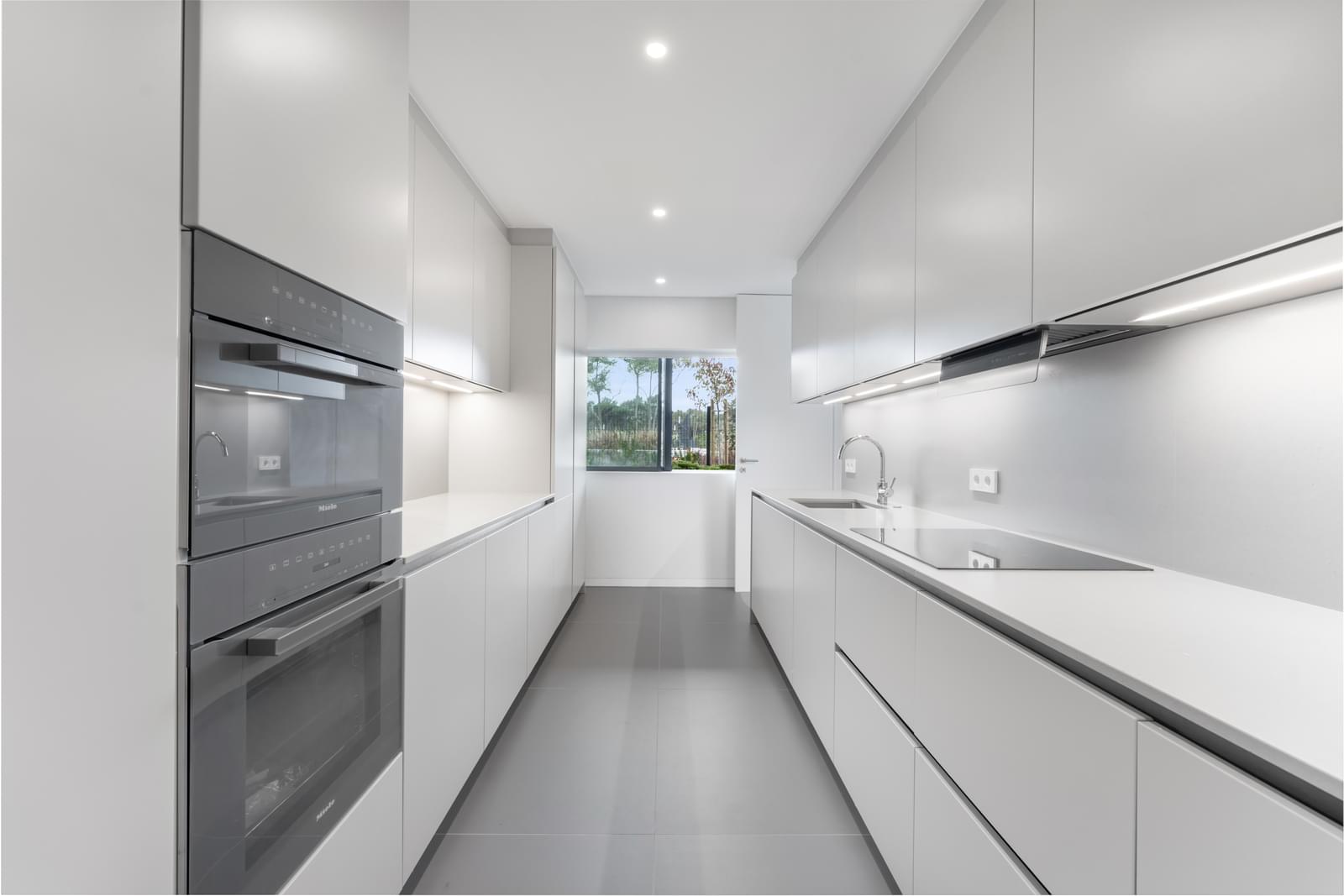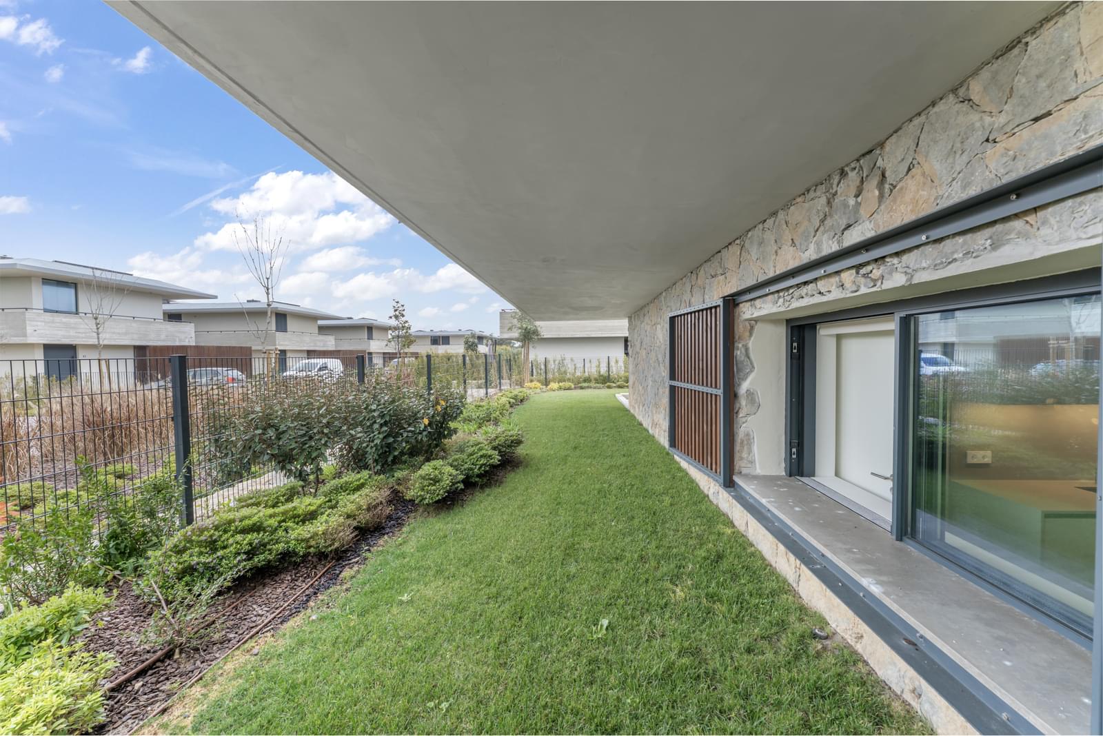 Sandwoods is located next to Quinta da Marinha and Guincho Beach, just a few minutes from the centre of the town of Cascais.It is a private gated condominium set within 88,000 sqm of land, comprising 39 villas and 6 apartments. The villas are available in T3 and T4 layouts and feature private gardens, decks and swimming pools. The apartments are part of a charming rehabilitation of an existing property, available in T1 to T4 layouts, and benefit from shared gardens and a swimming pool.This 2-bedroom apartment offers 154 sqm of gross private area and a private garden of 186 sqm, ideal for enjoying outdoor leisure moments.The apartment features a spacious living room with large windows providing direct access to the exterior. The modern, fully equipped kitchen includes high-end Miele appliances and benefits from a separate laundry area.The private area comprises two generous en-suite bedrooms, with the master suite featuring a comfortable walk-in closet.The property also includes two outdoor parking spaces, one of which is prepared for electric vehicle charging (pre-installation for a wallbox).The apartment is equipped with a climate control system and forced ventilation, allowing air circulation between the exterior and interior, as well as pre-installation for air conditioning, ensuring thermal comfort throughout the year.An integrated home automation system allows intuitive control of lighting, climate control and electric "blackout" curtains, promoting energy efficiency and maximum comfort.The private garden, with exterior lighting and an automatic irrigation system, provides an exclusive space to relax, entertain guests or simply enjoy the surrounding tranquillity.The apartments share a large swimming pool, for the exclusive use of apartment residents.A truly special property, designed for those seeking exclusivity, quality of life and close contact with nature, without compromising on comfort and sophistication.